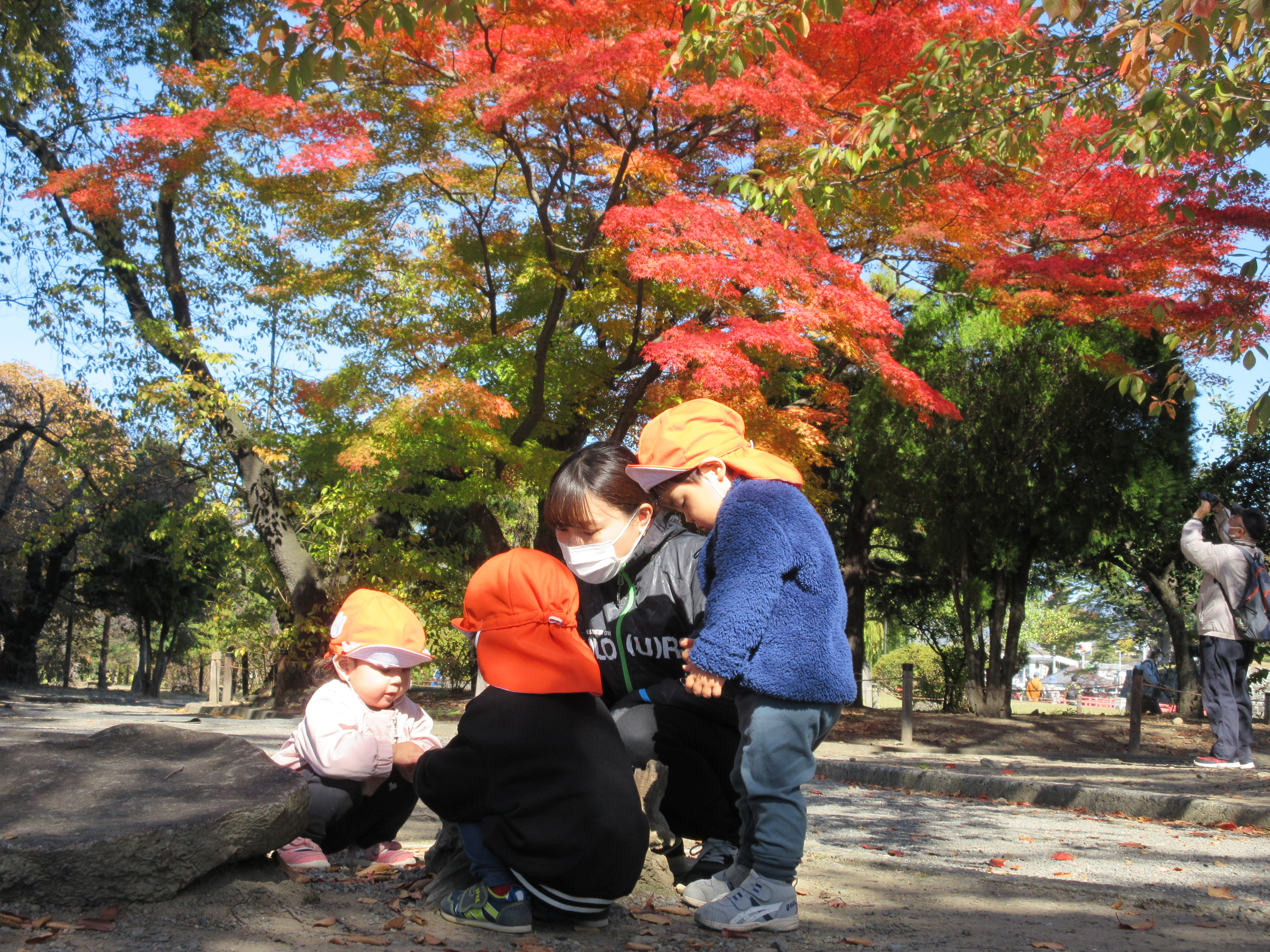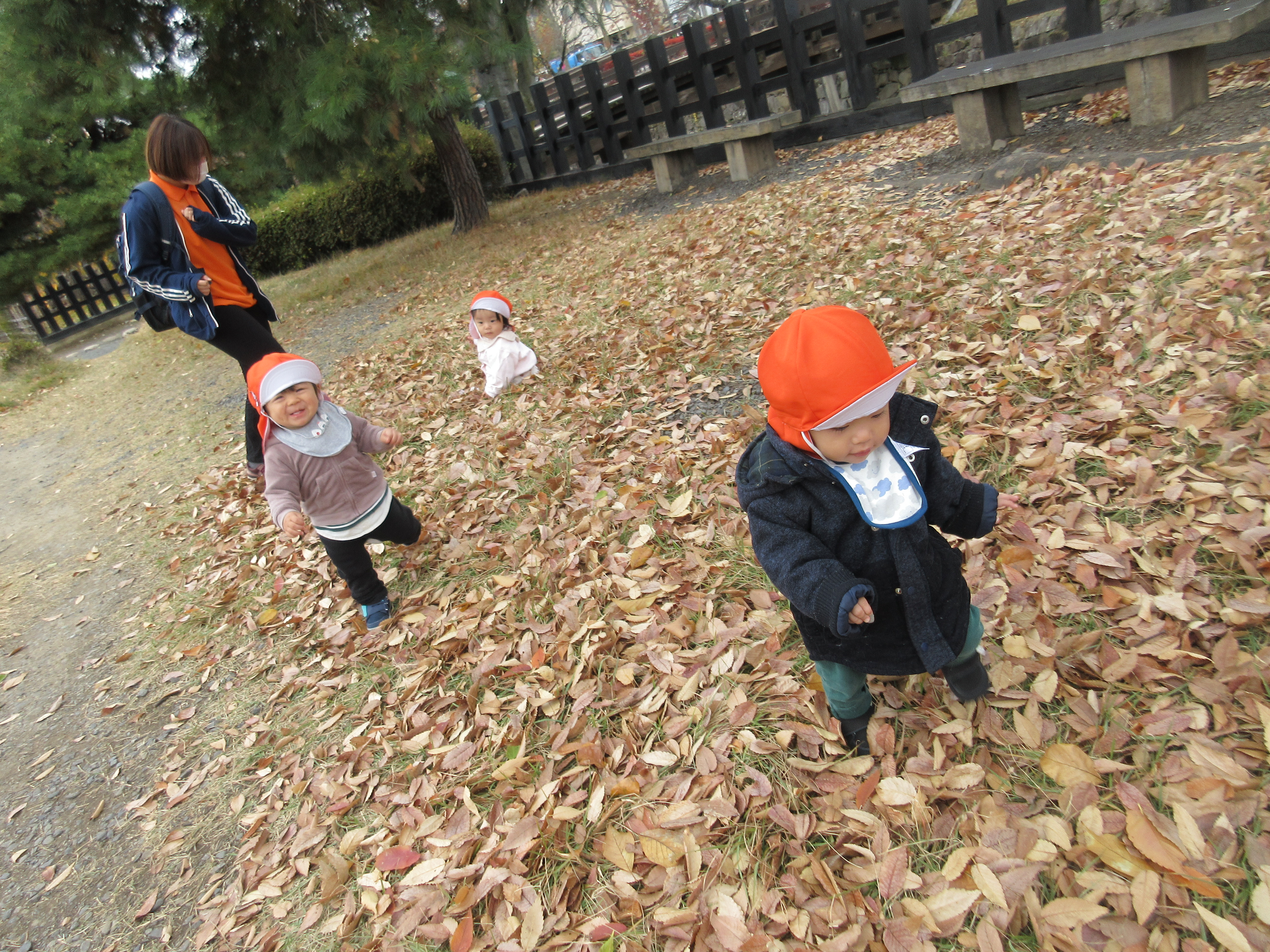 落ち葉の上を歩いてカサカサ音が聞こえてくるのを楽しみました![]()