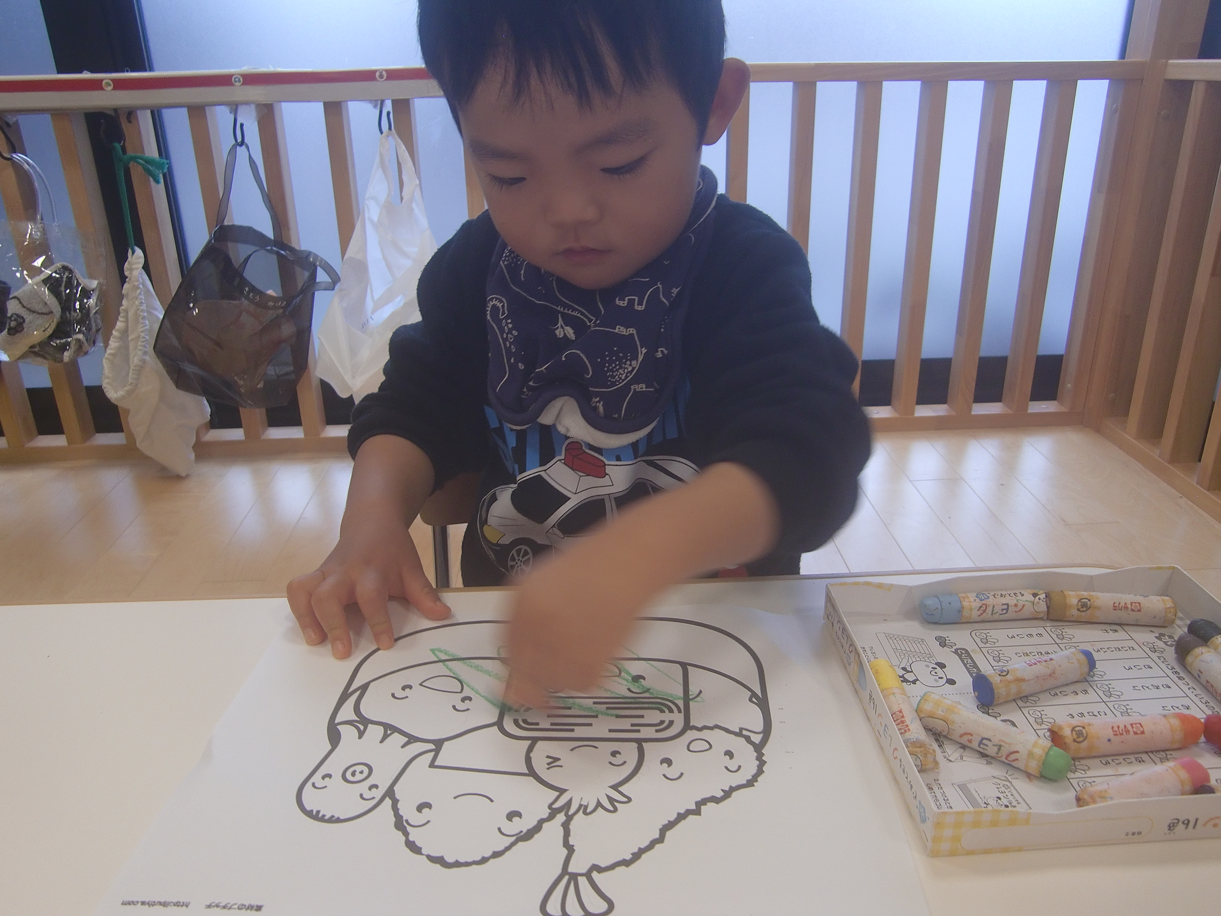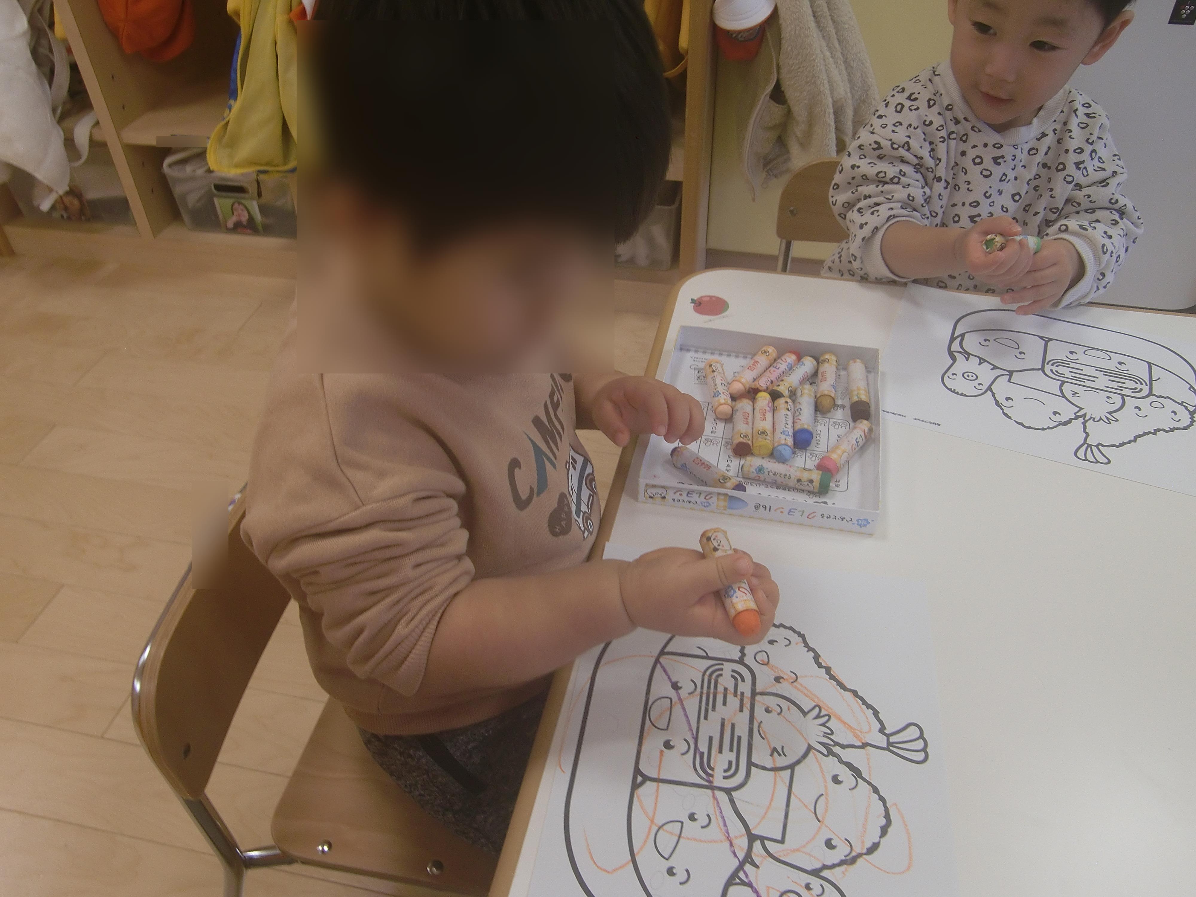 普段はクーピーを使っているのですが、今回はクレヨンを使ってみました。