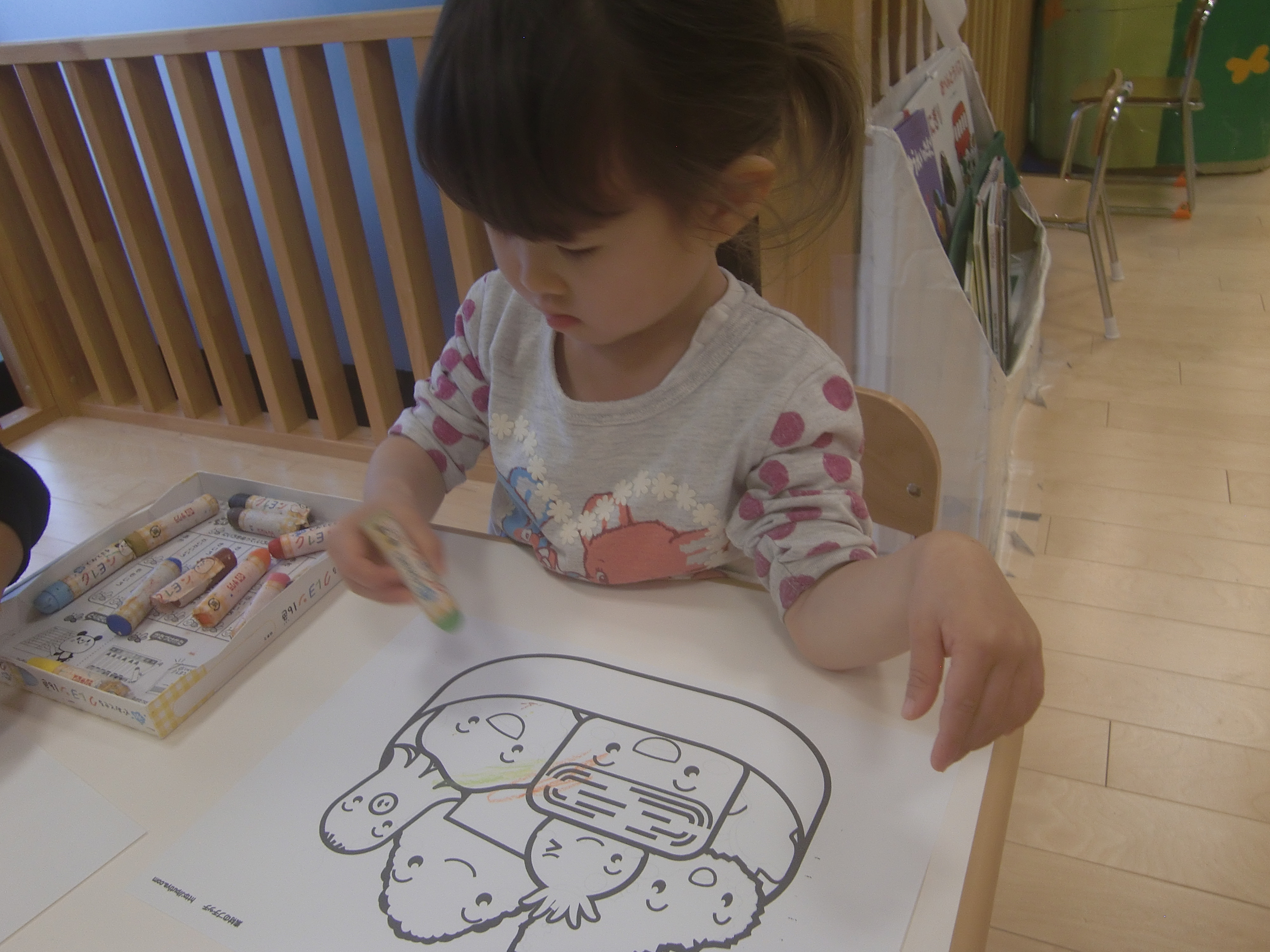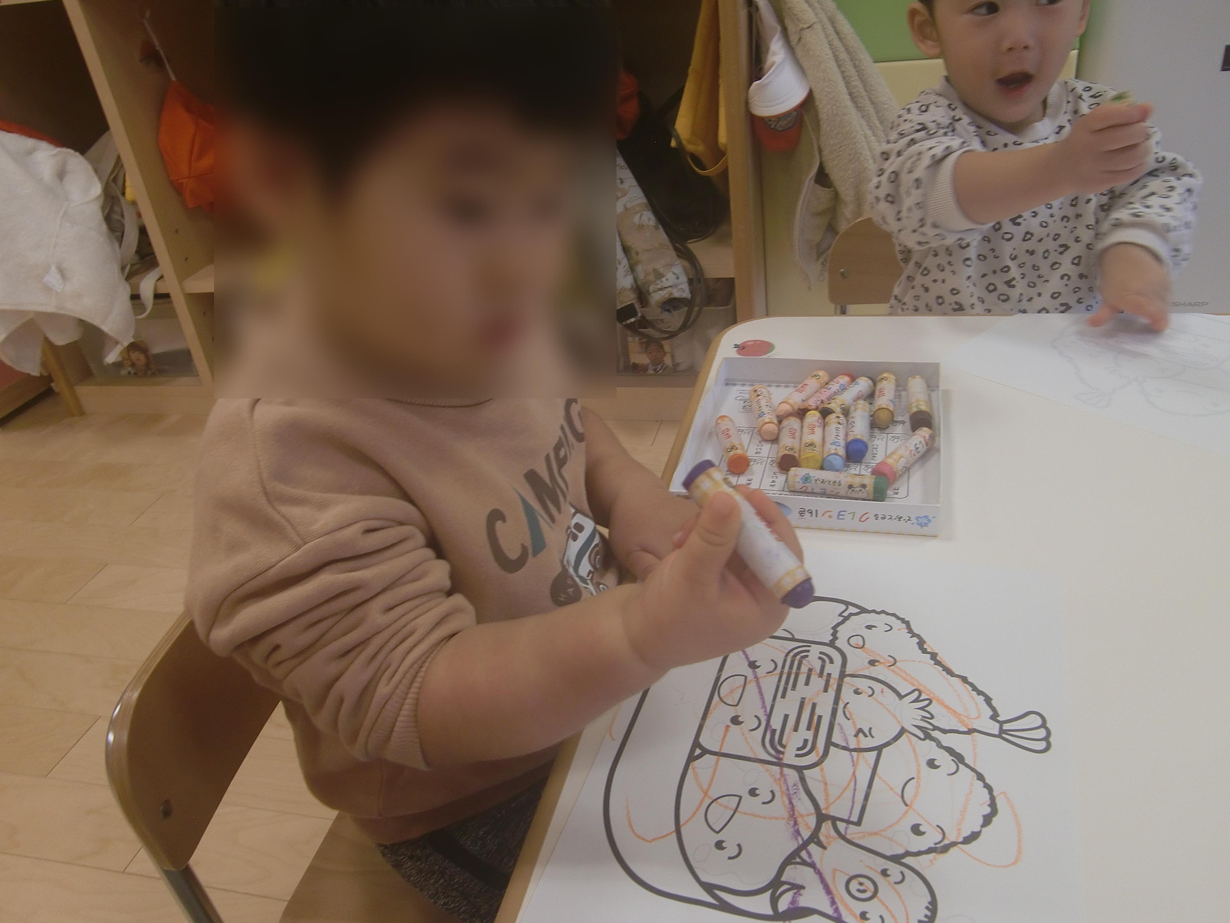 1つのクレヨンの箱を2人で1つずつ使いました![]()