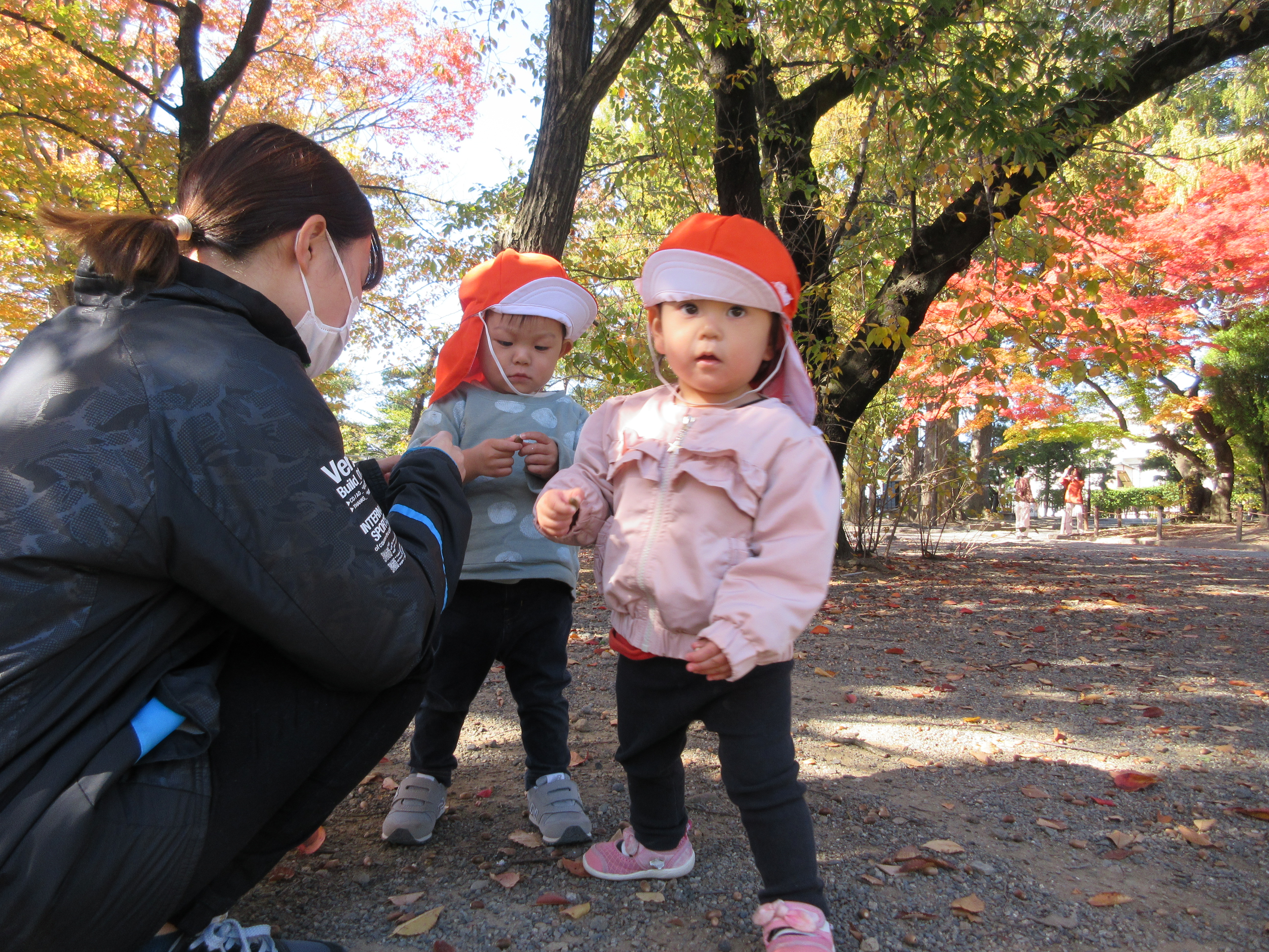 ドングリもすっかり茶色になり、落ち葉もたくさんあったので子どもたちも喜んで手に取ってみていました。