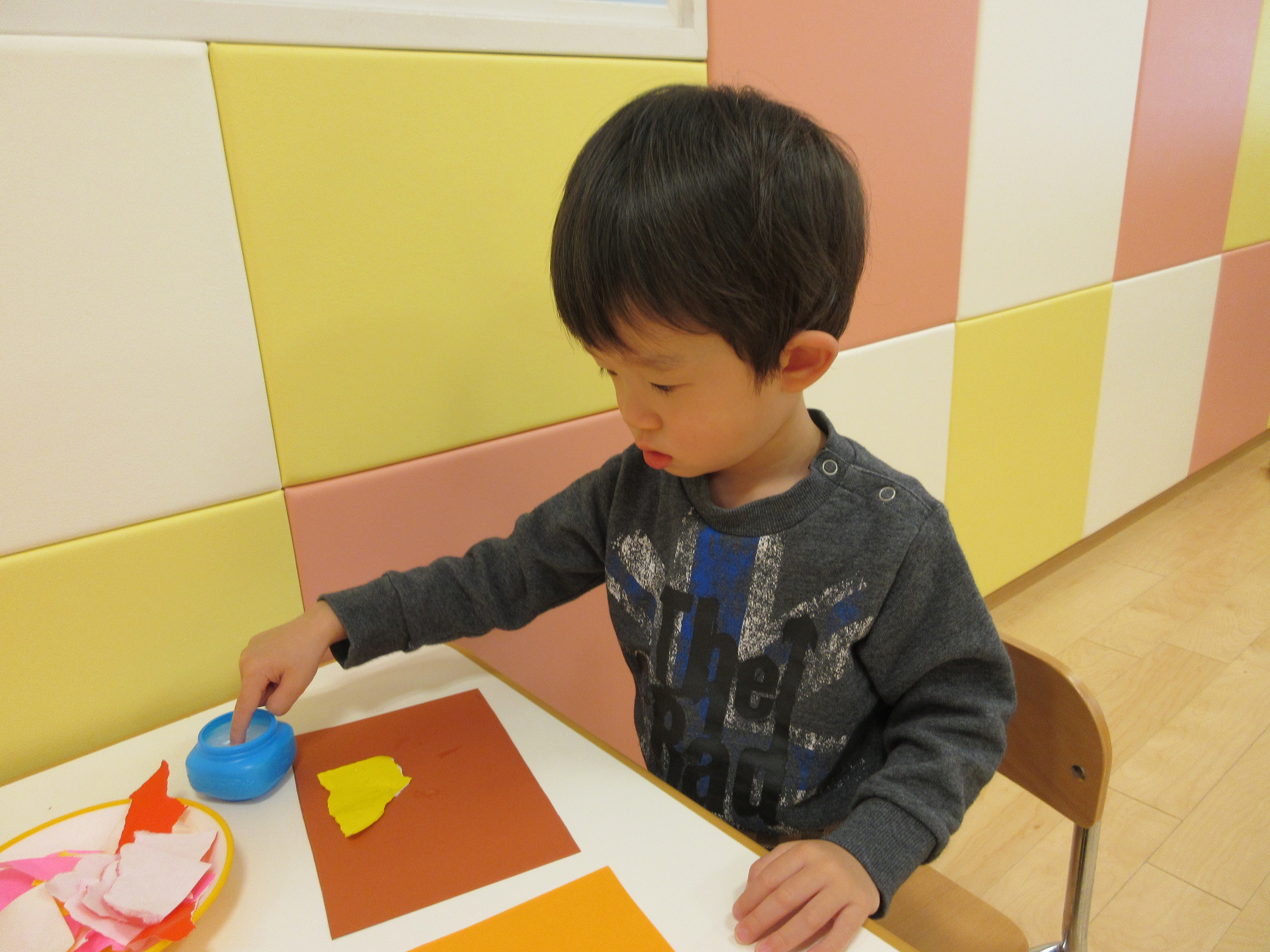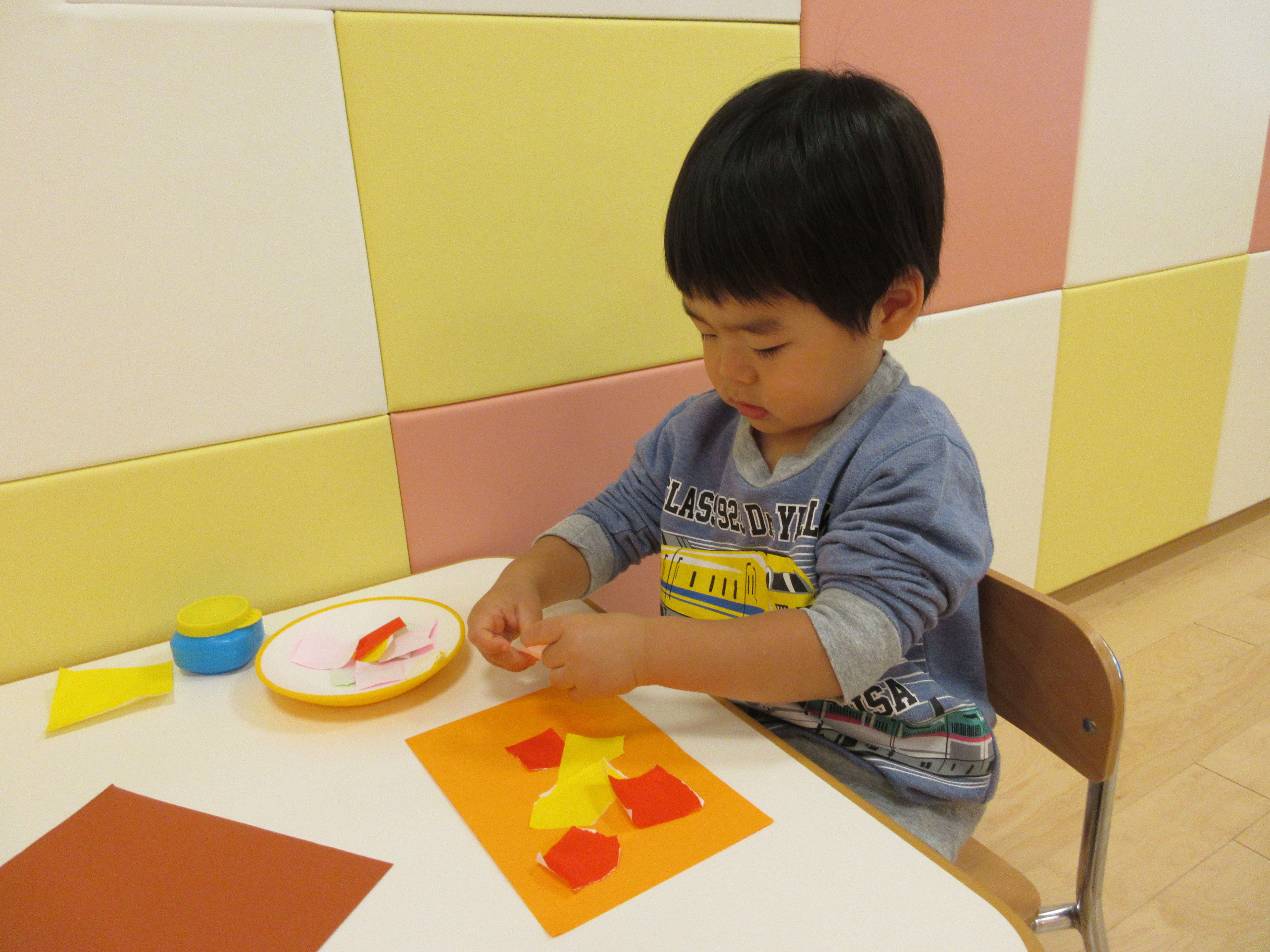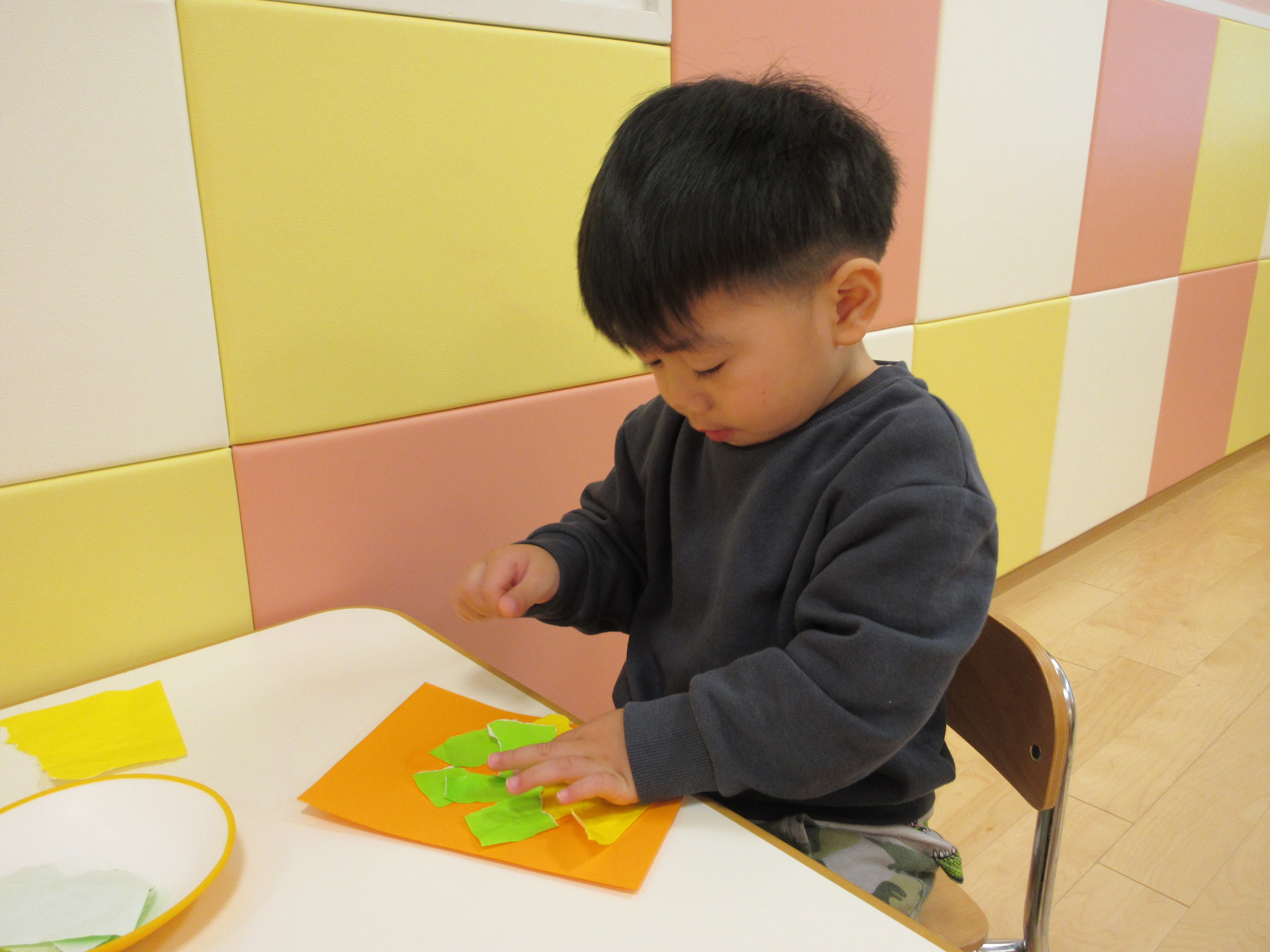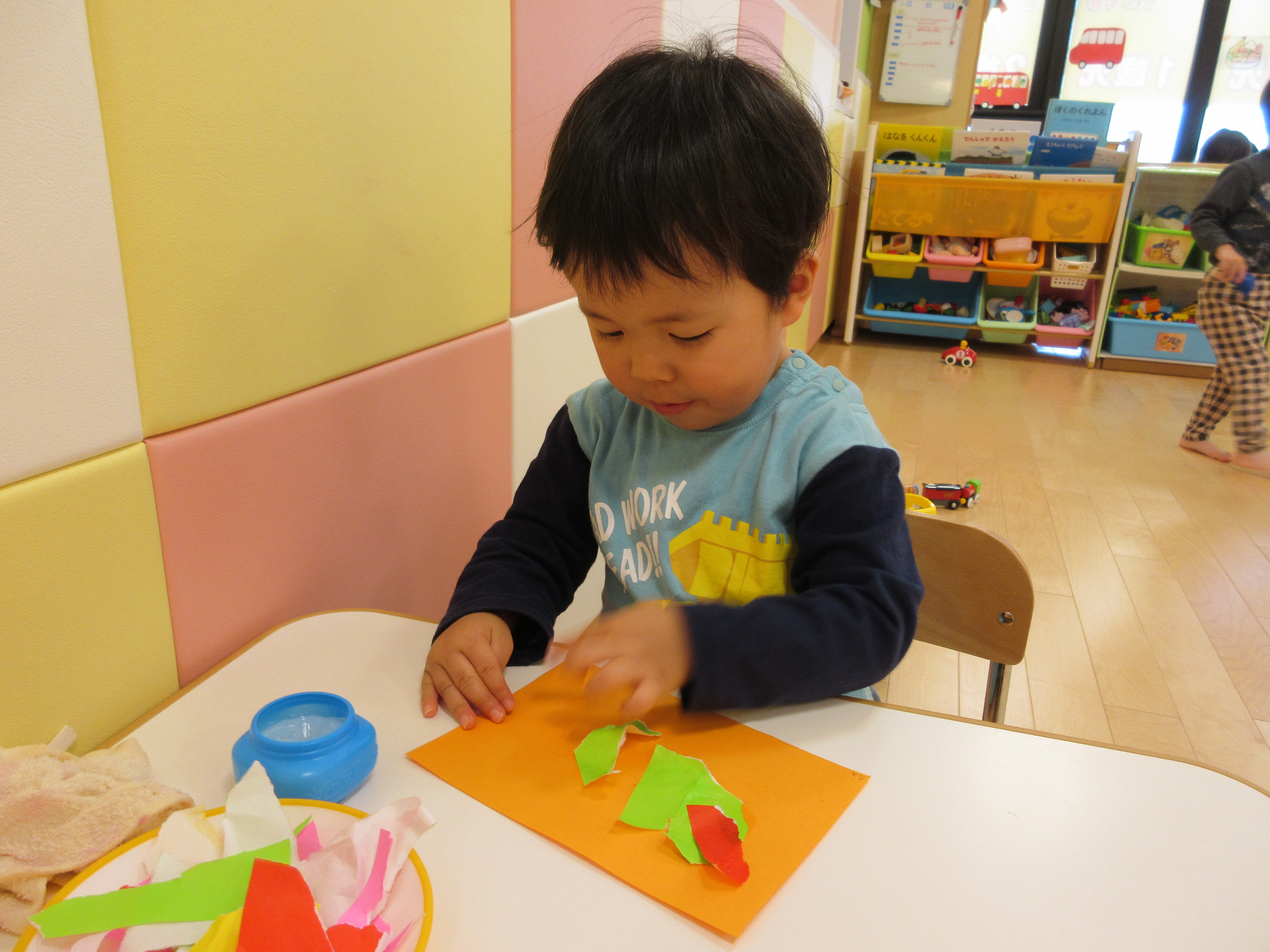 折り紙をびりびり破るのも、のりを使うのも初めてです。