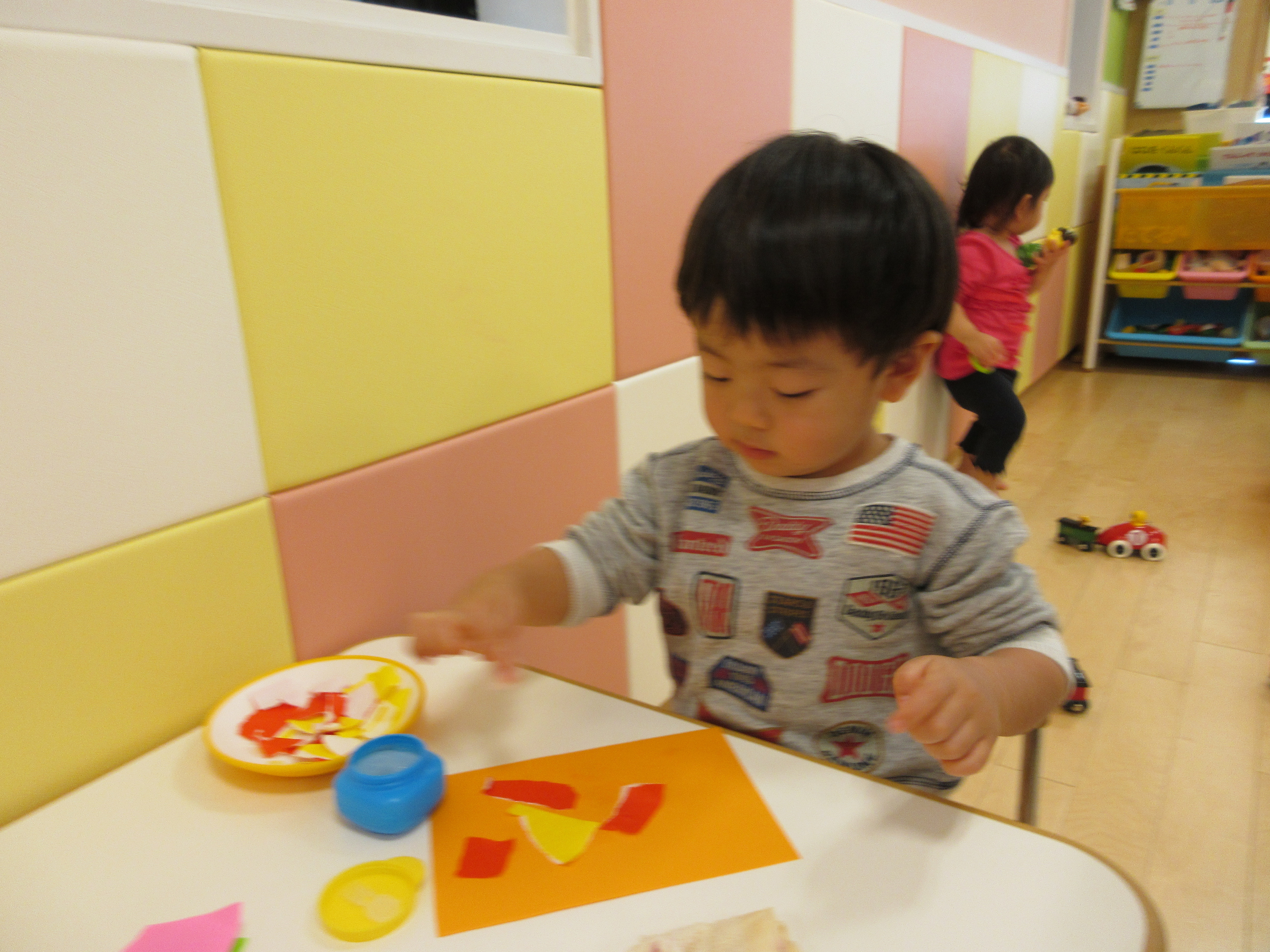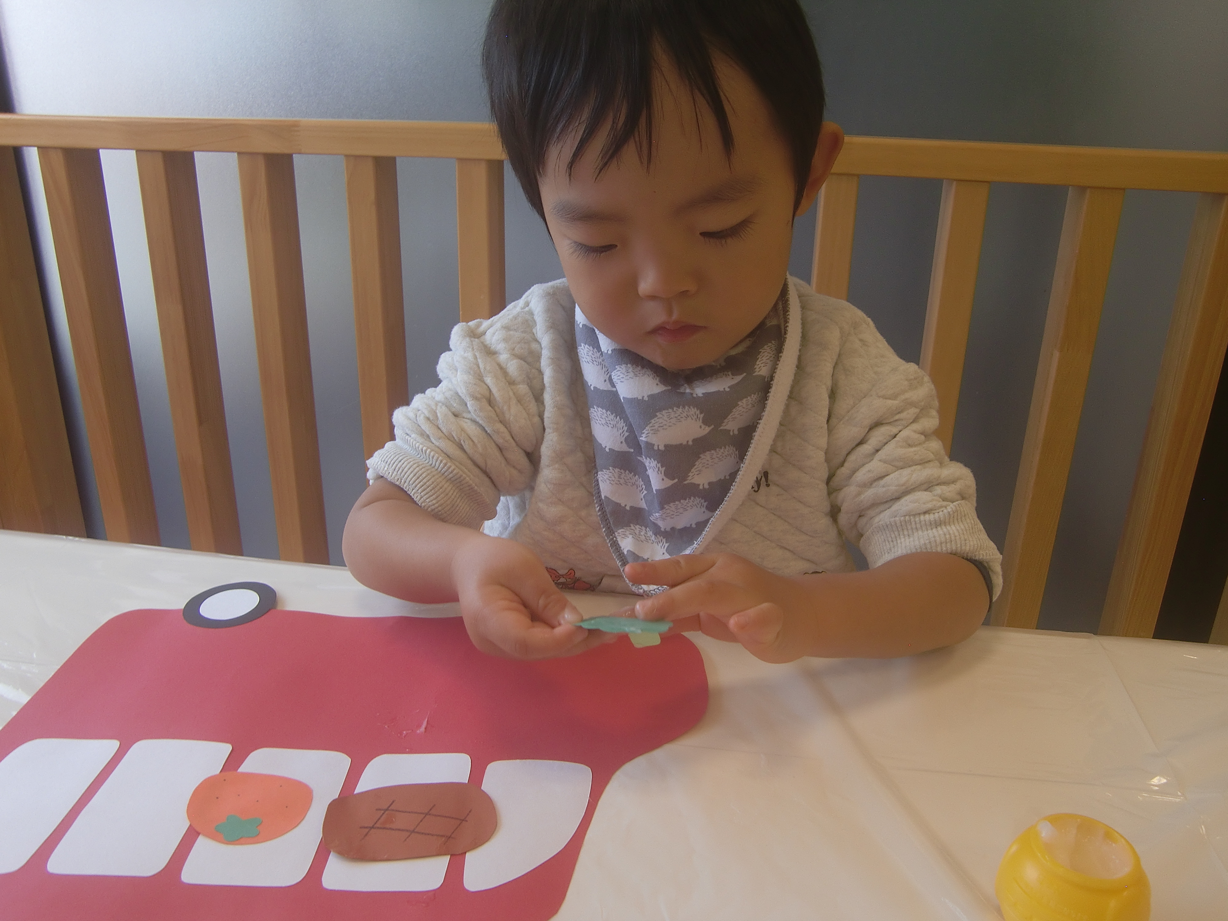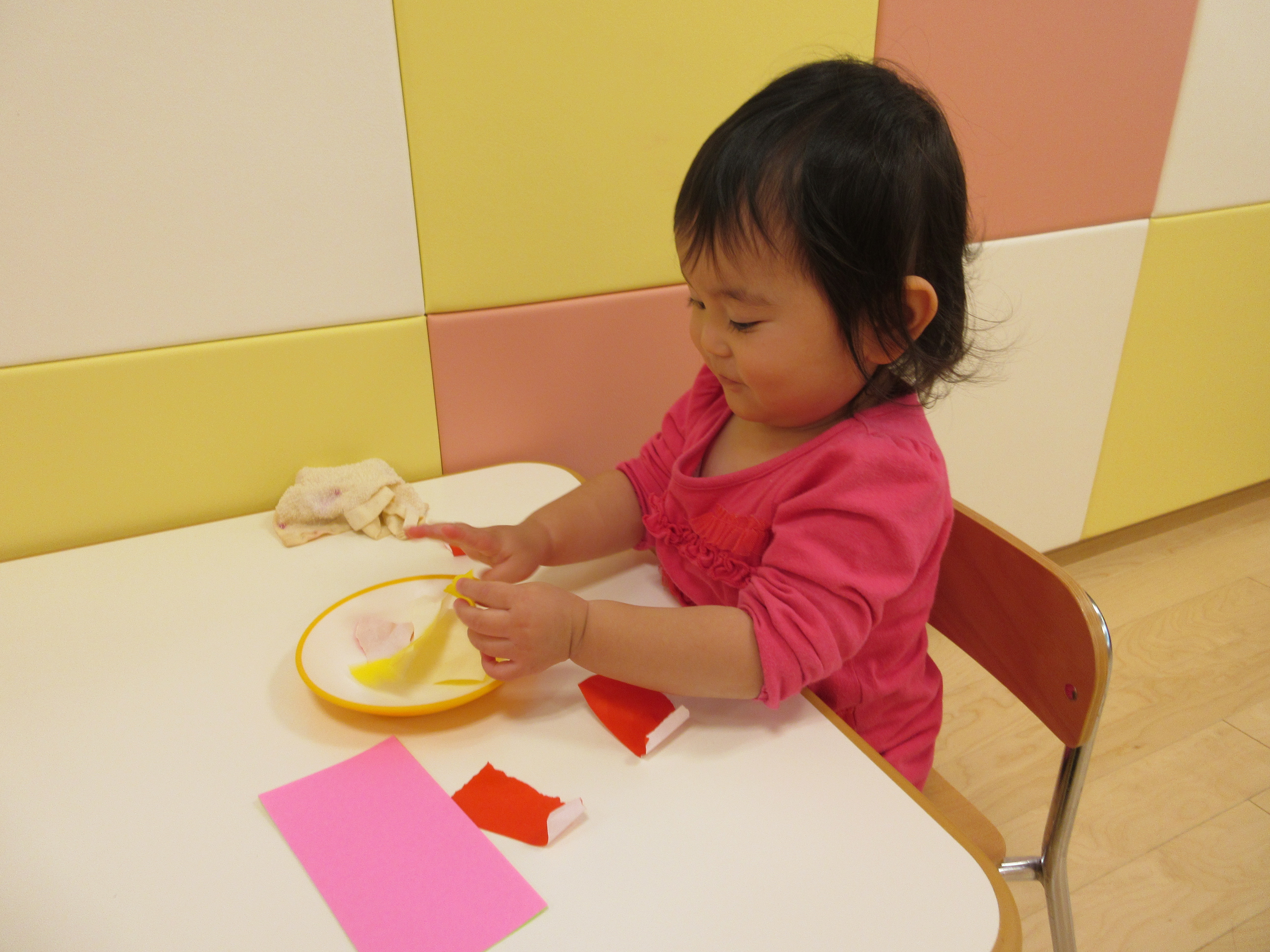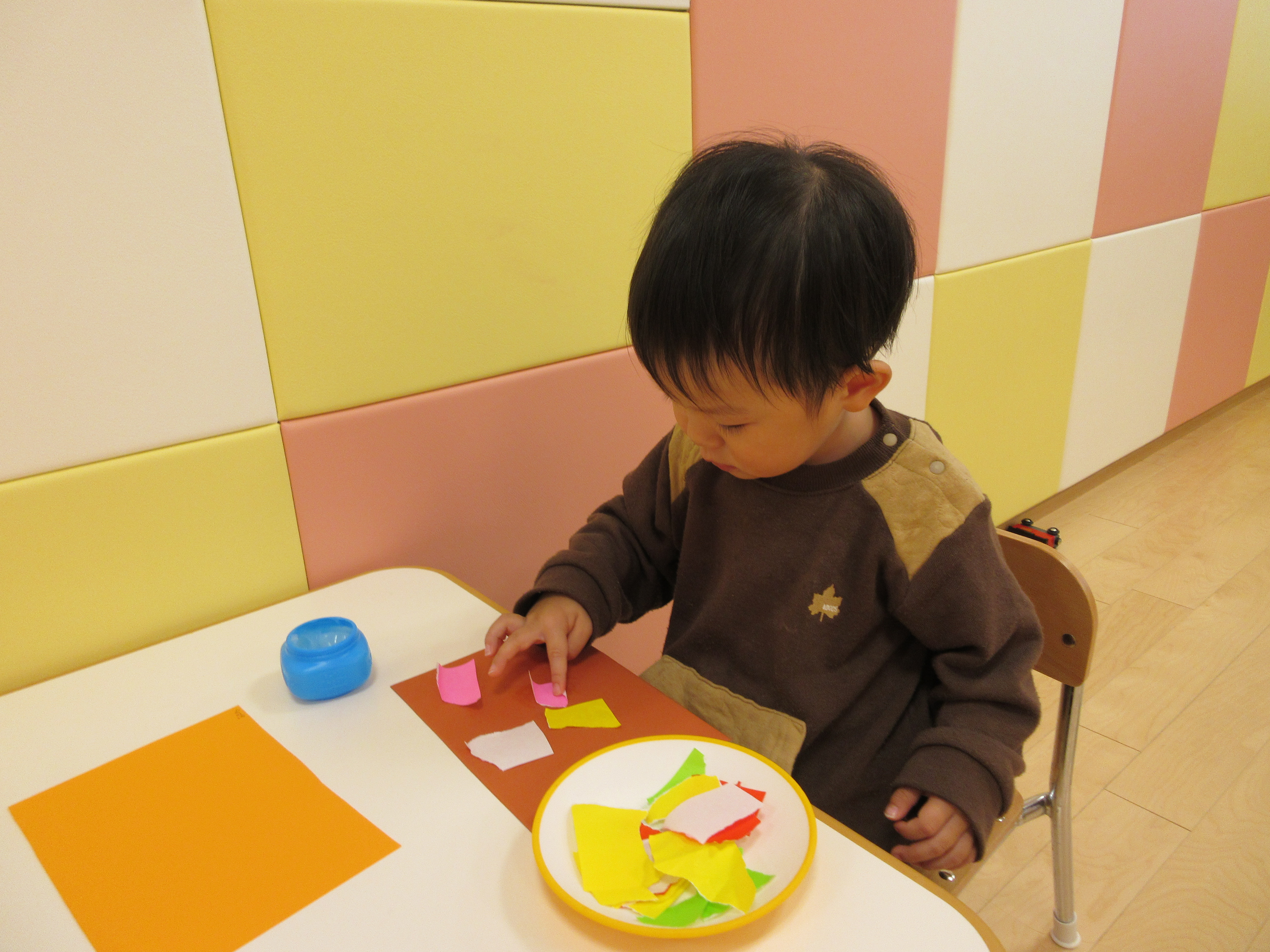 折り紙をびりびり破るのも、のりを使うのも初めてです。
