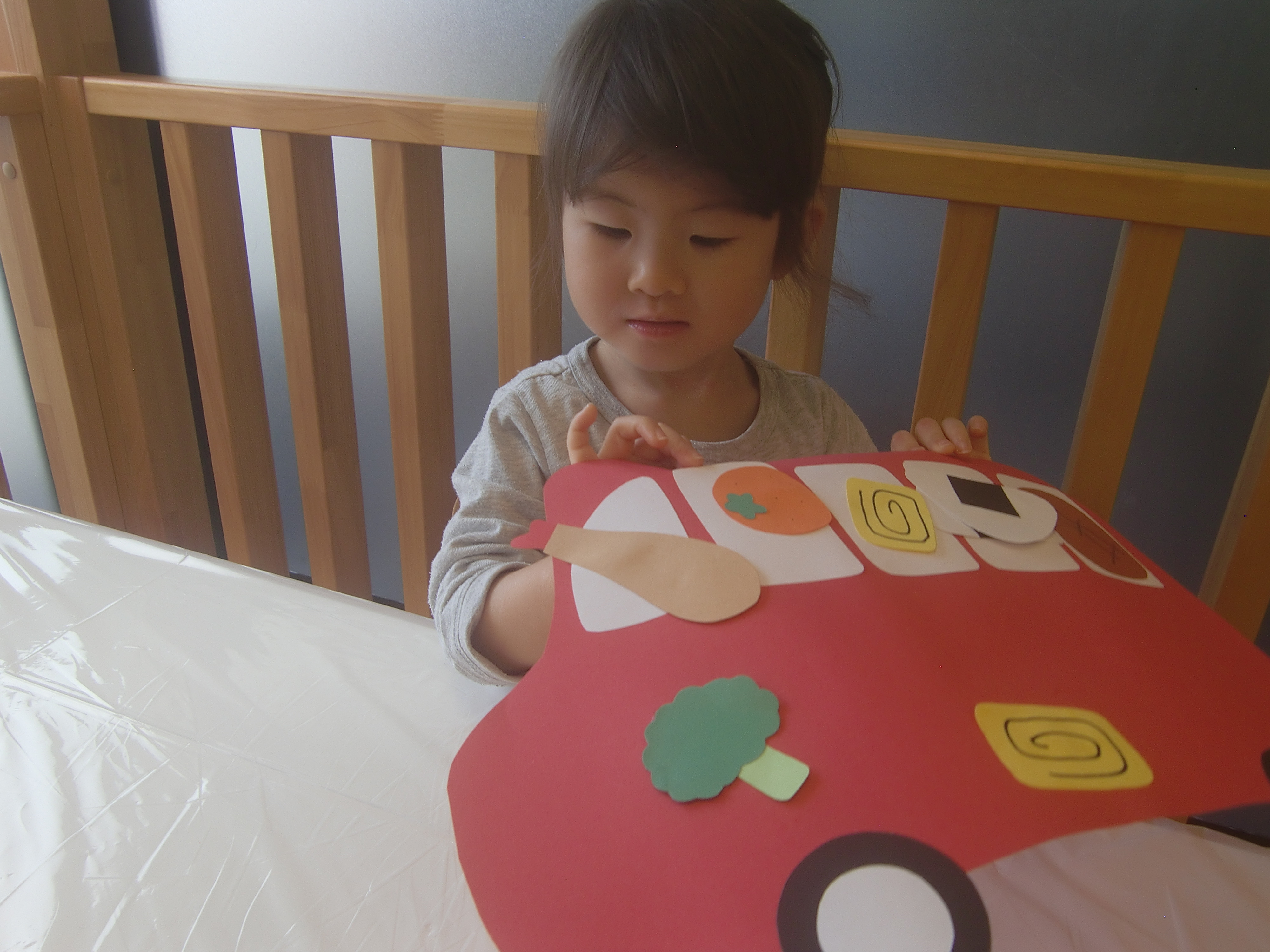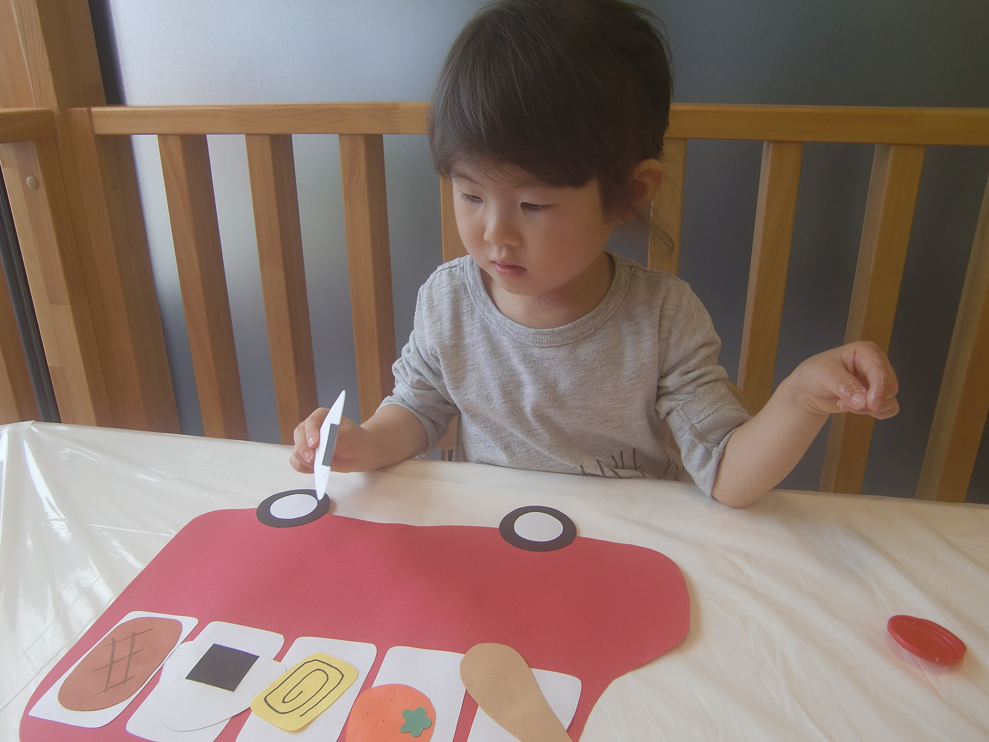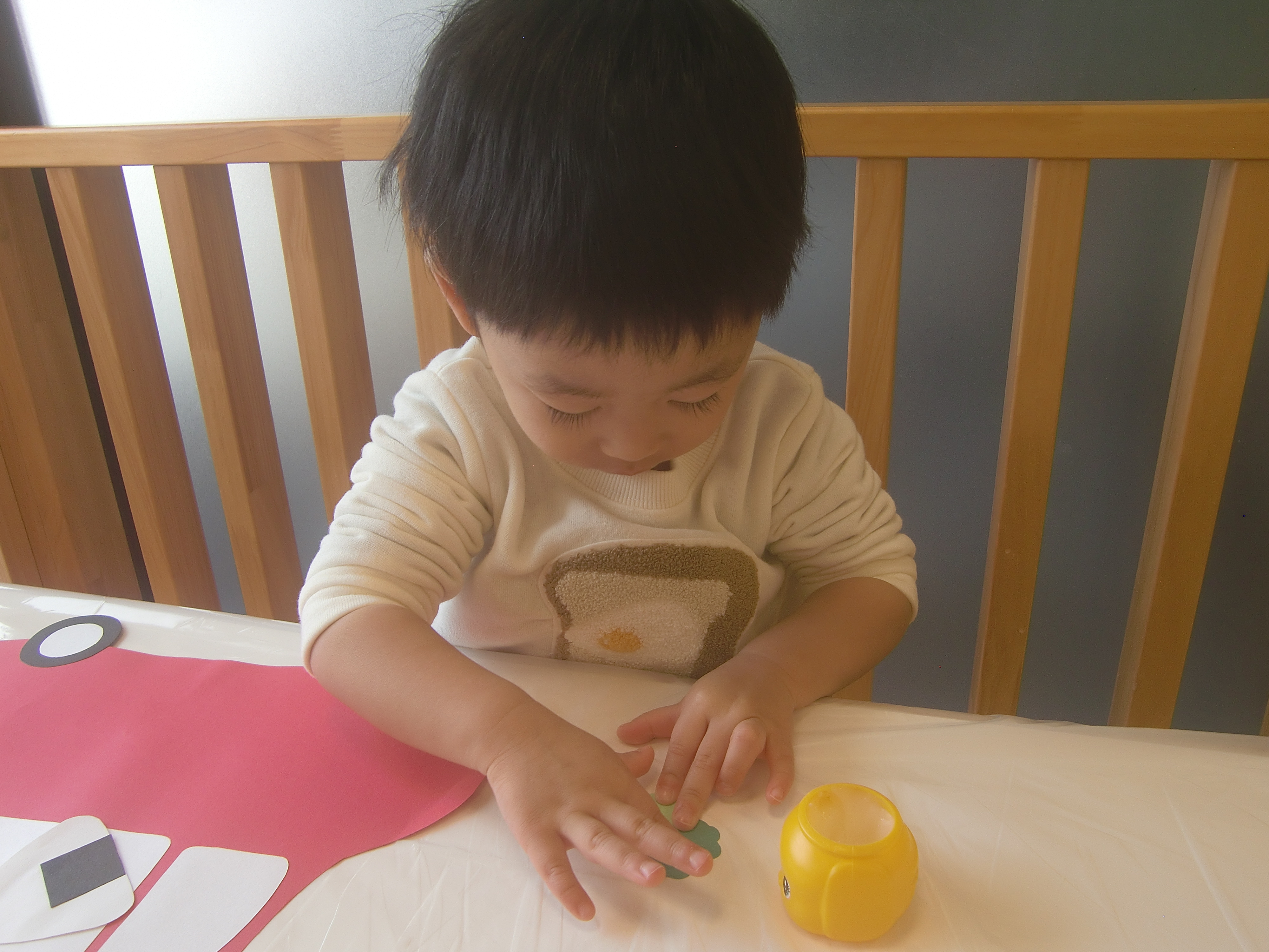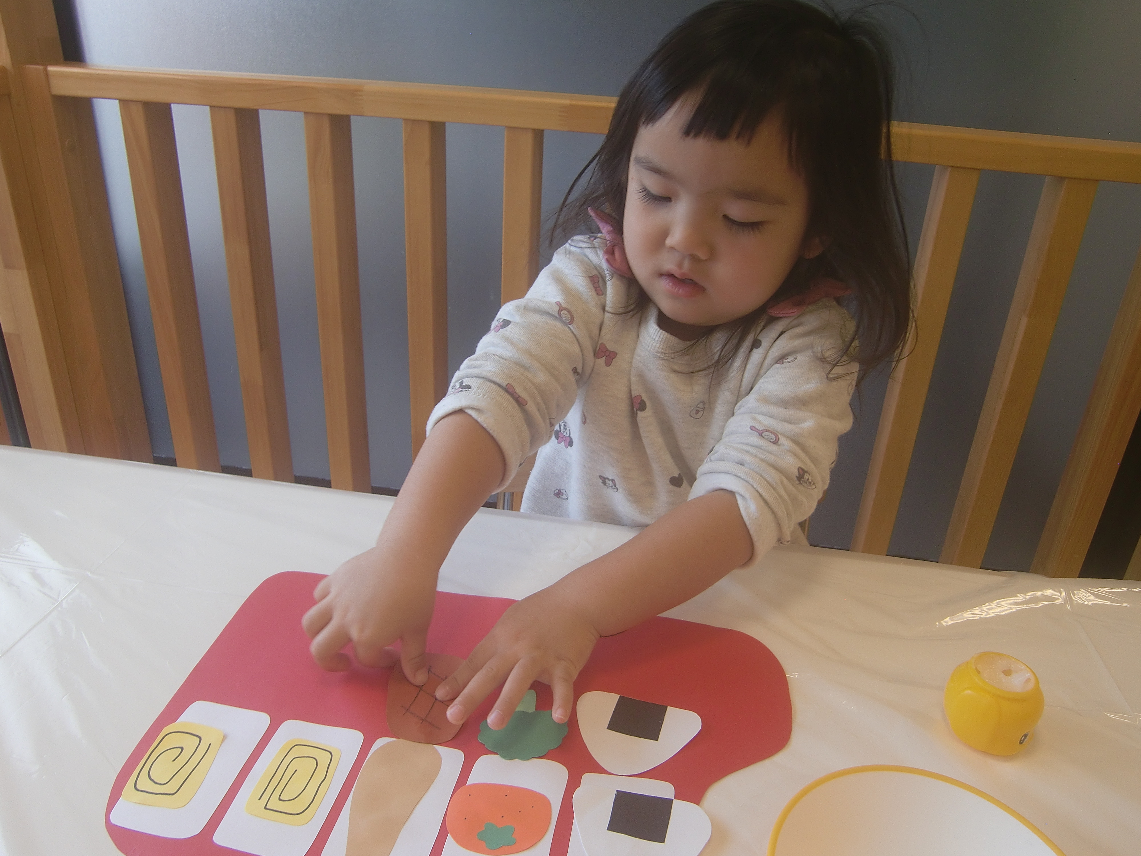 折り紙をびりびり破るのも、のりを使うのも初めてです。
