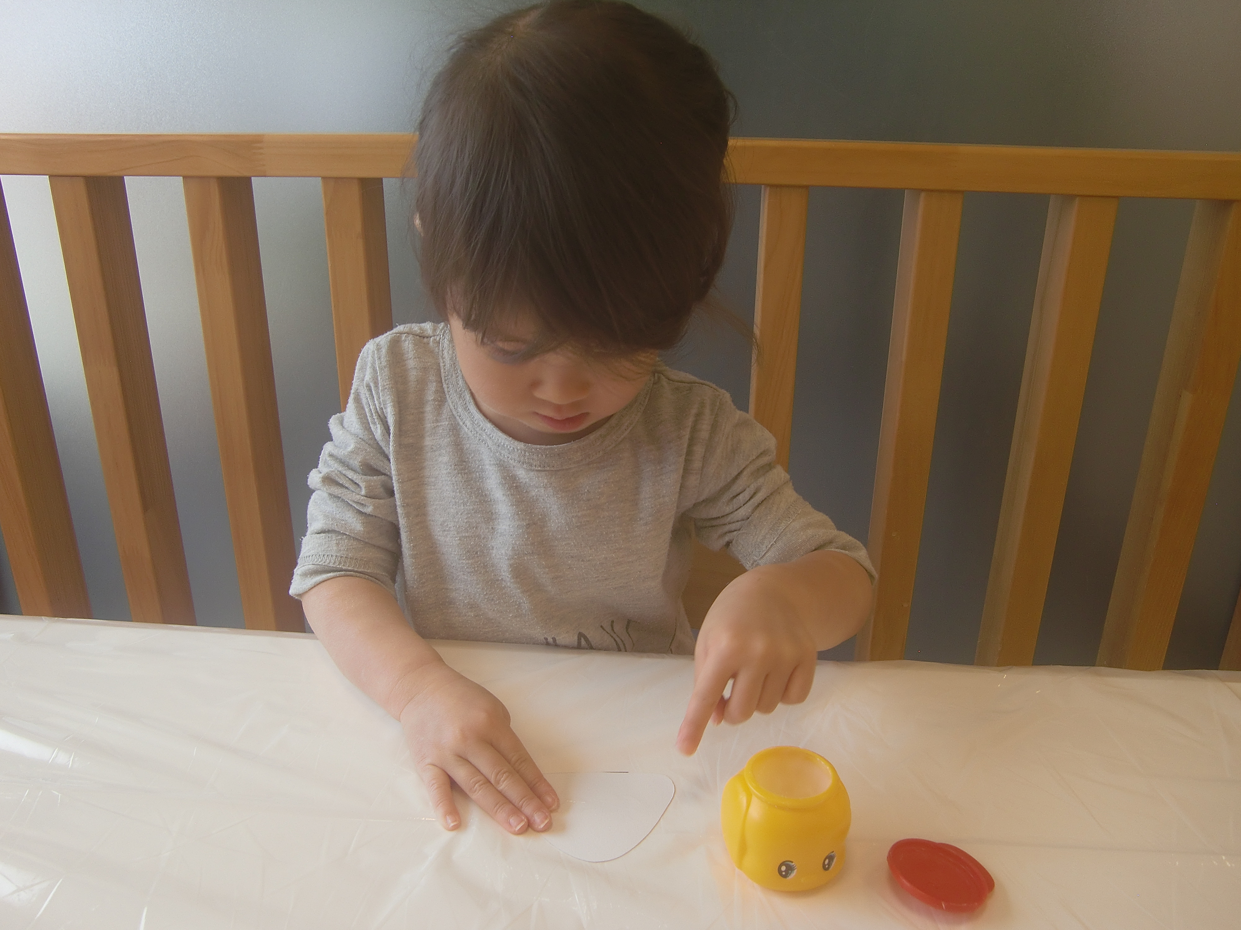 指先でチョンとつけてみるとじっとのりを見つめていました。
