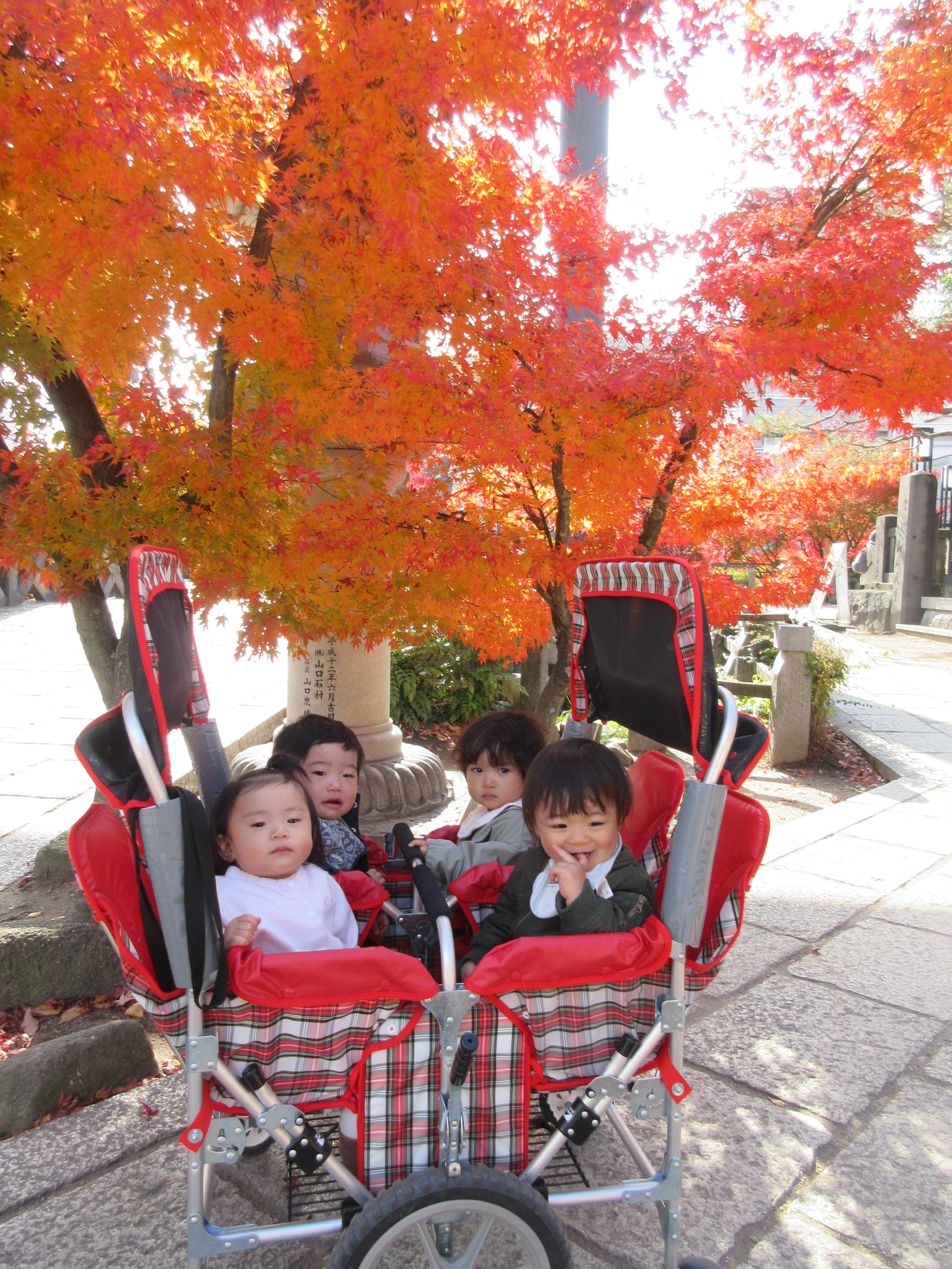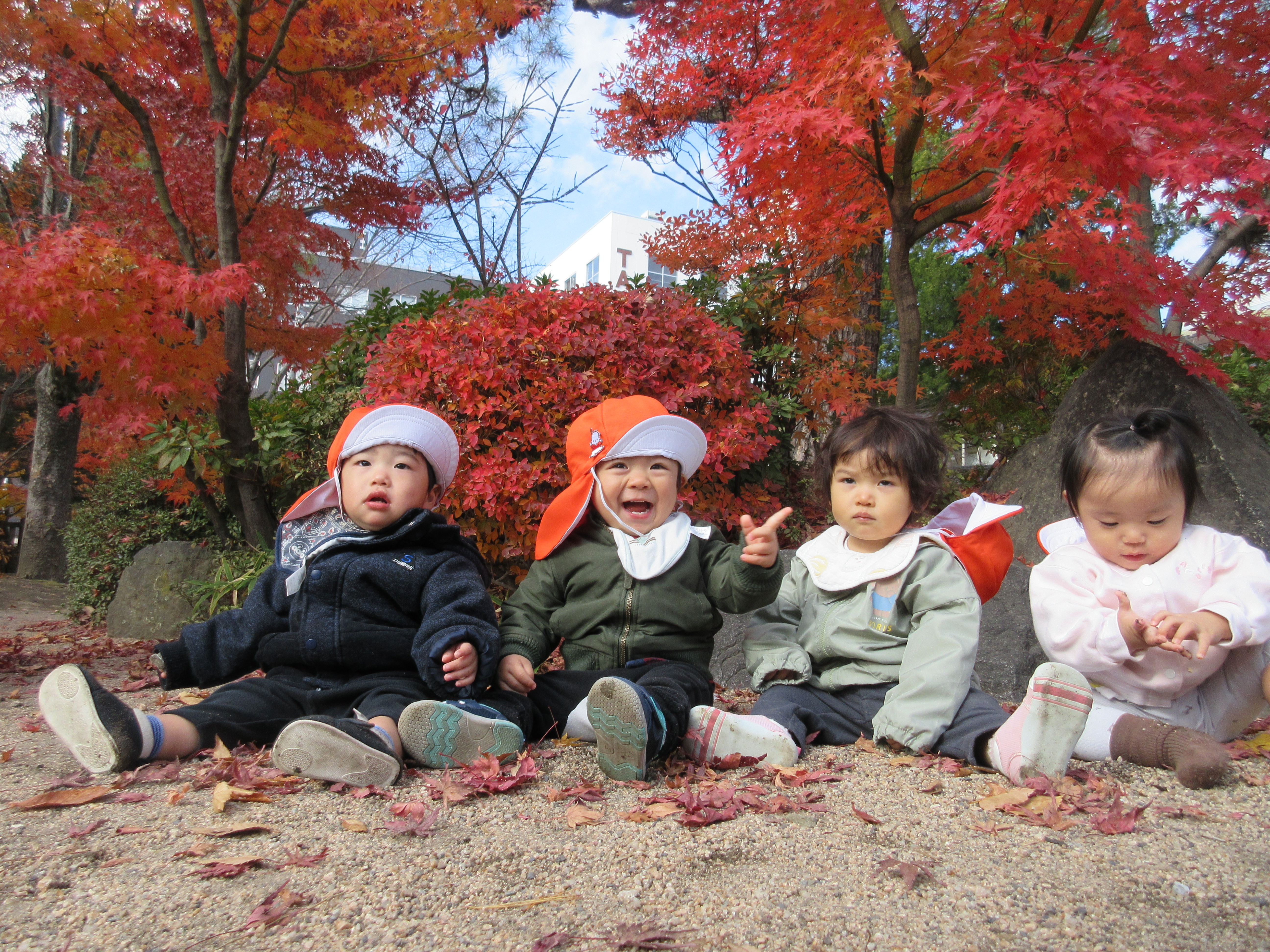 四柱神社の紅葉の前で写真を撮ったり、やきいもごっこをして過ごしました![]()