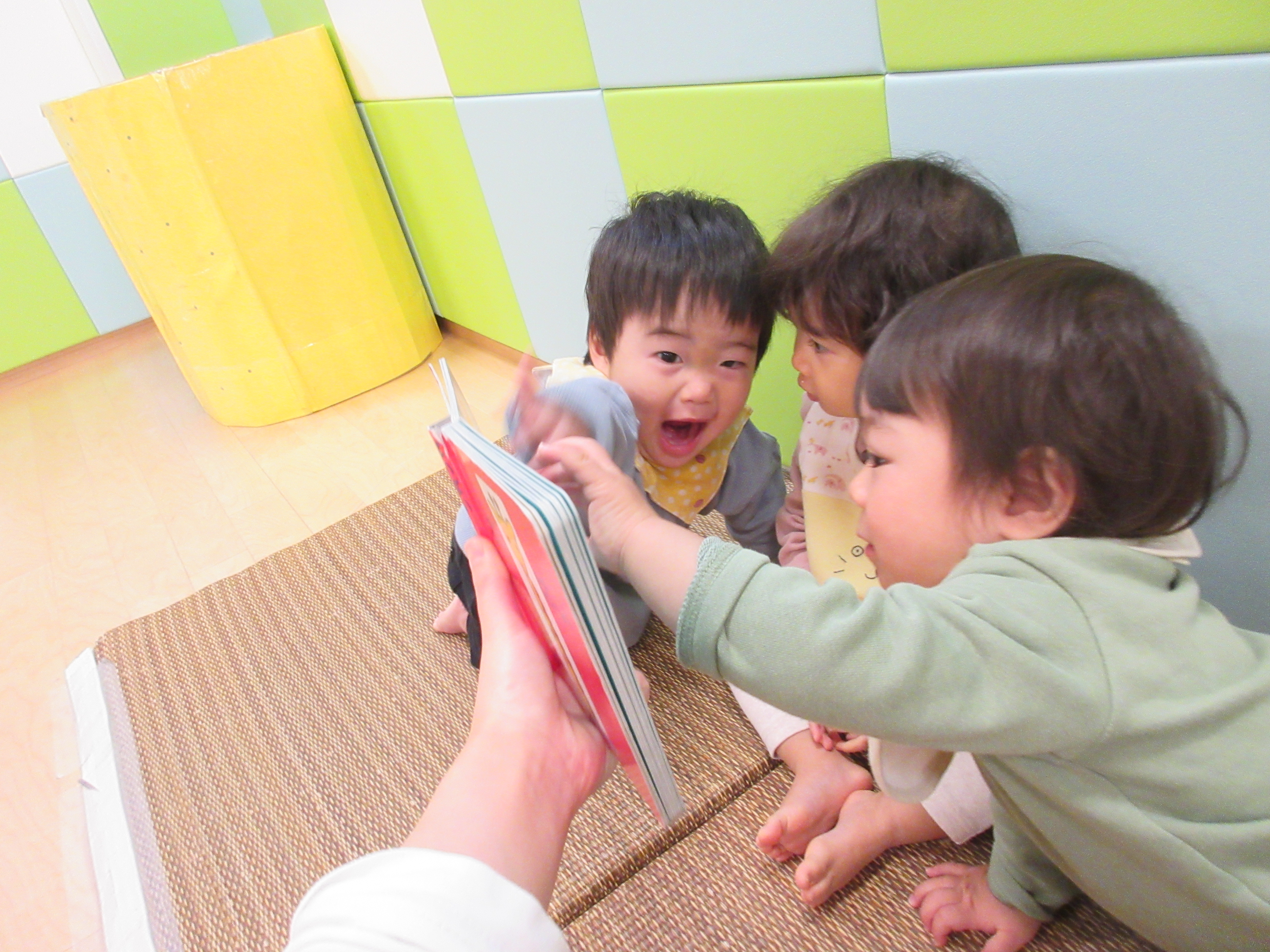 みんなで絵本を指さしていました![]()