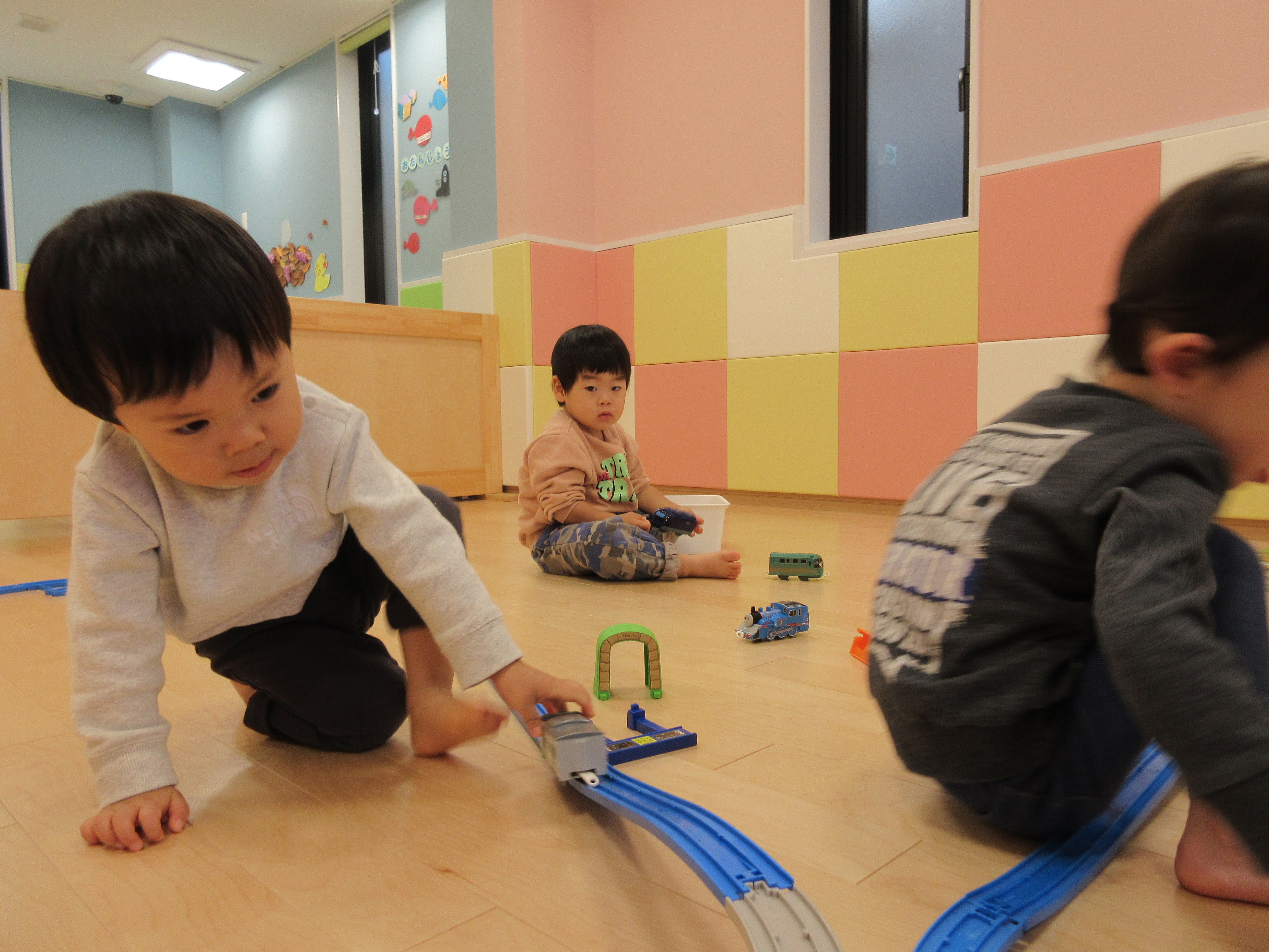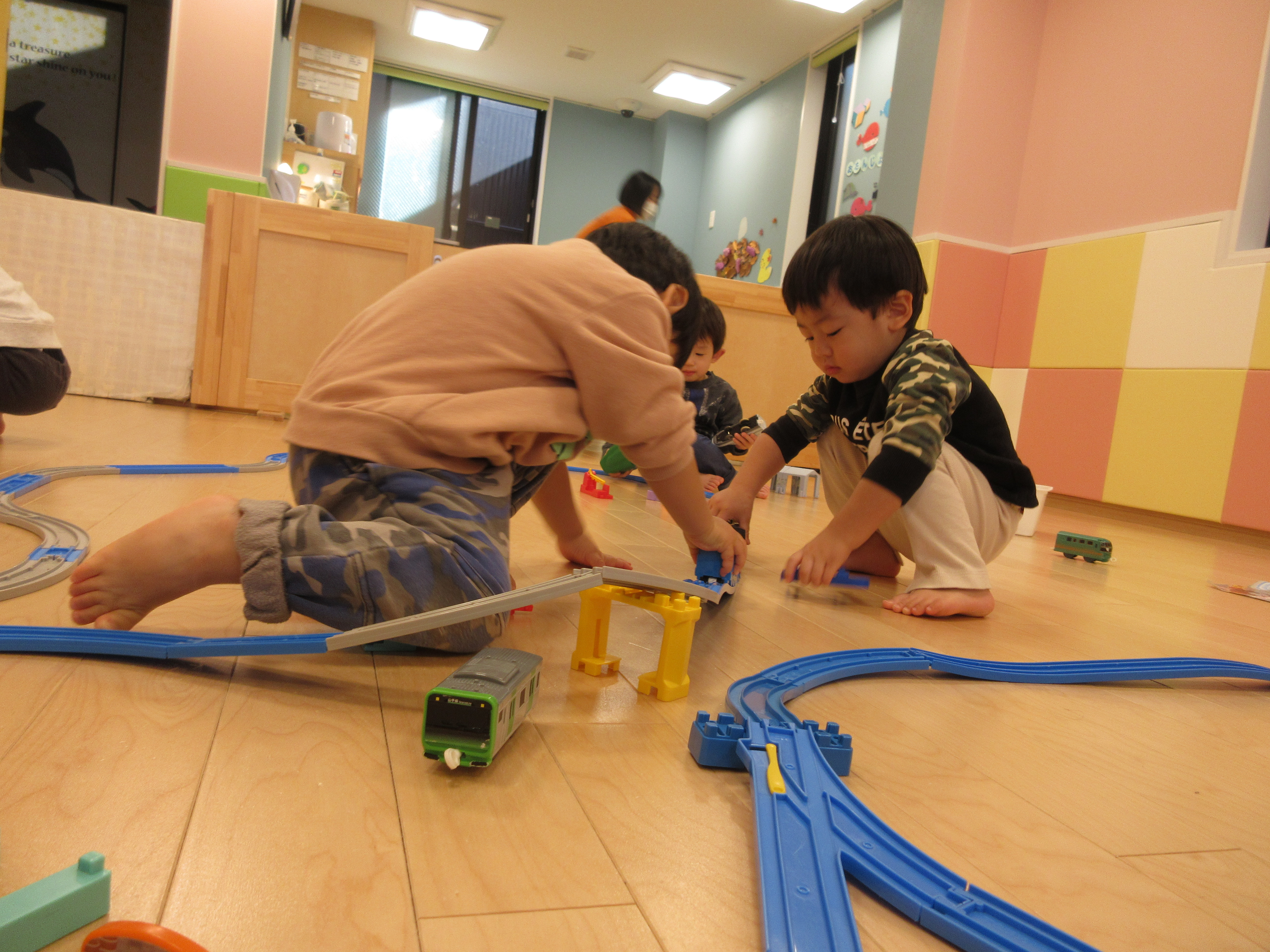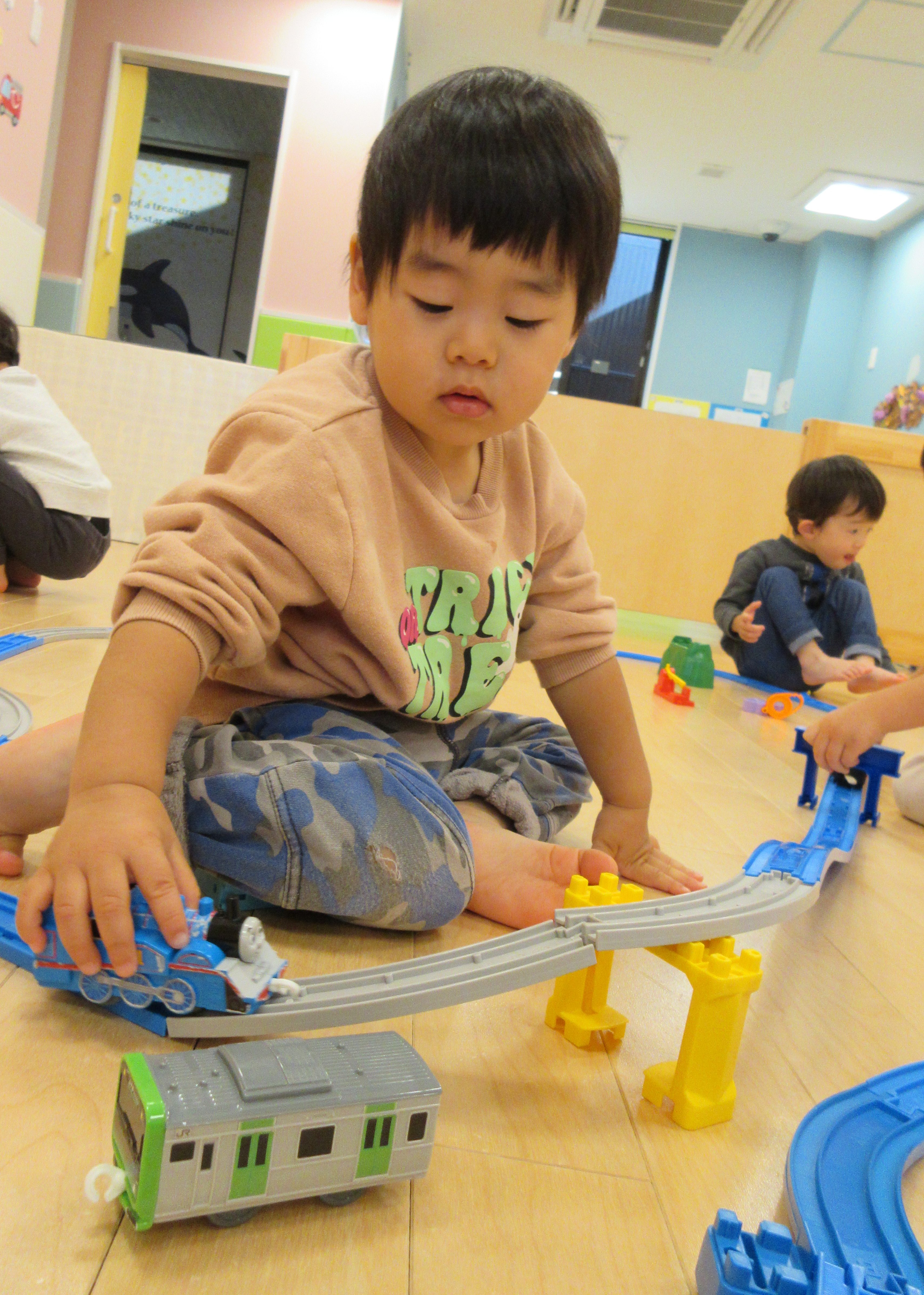 最初の頃はなかなか線路を繋げることができなかった子どもたちですが、今では子どもたち自身で考えて作ったり、作れない時は「つけれないよ~」「つけてー」と先生に話をしてくれる姿も見られ、成長を感じました![]()