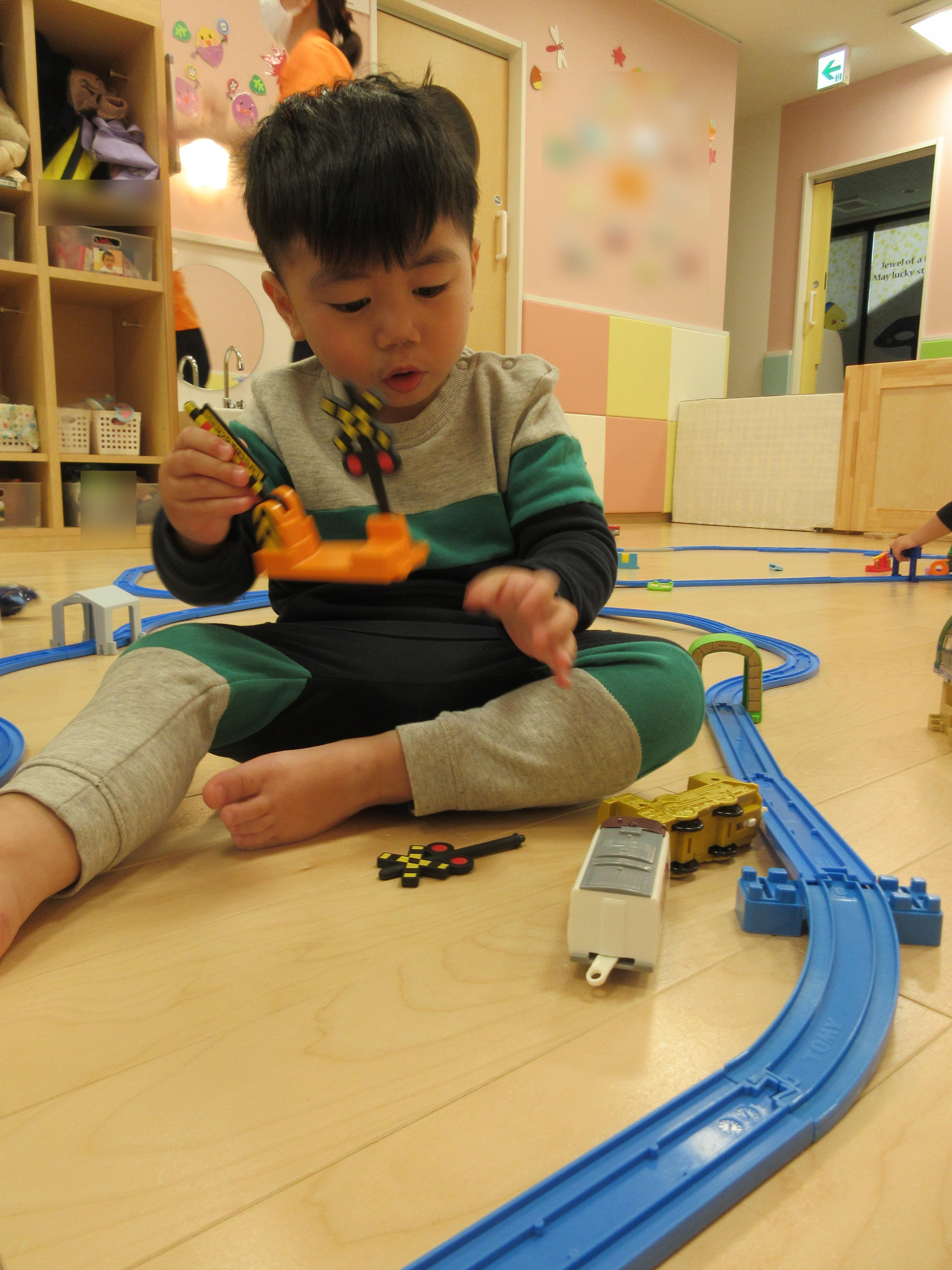どうやったら線路を繋げることができるのか、頑張って考えながら遊んでいました。