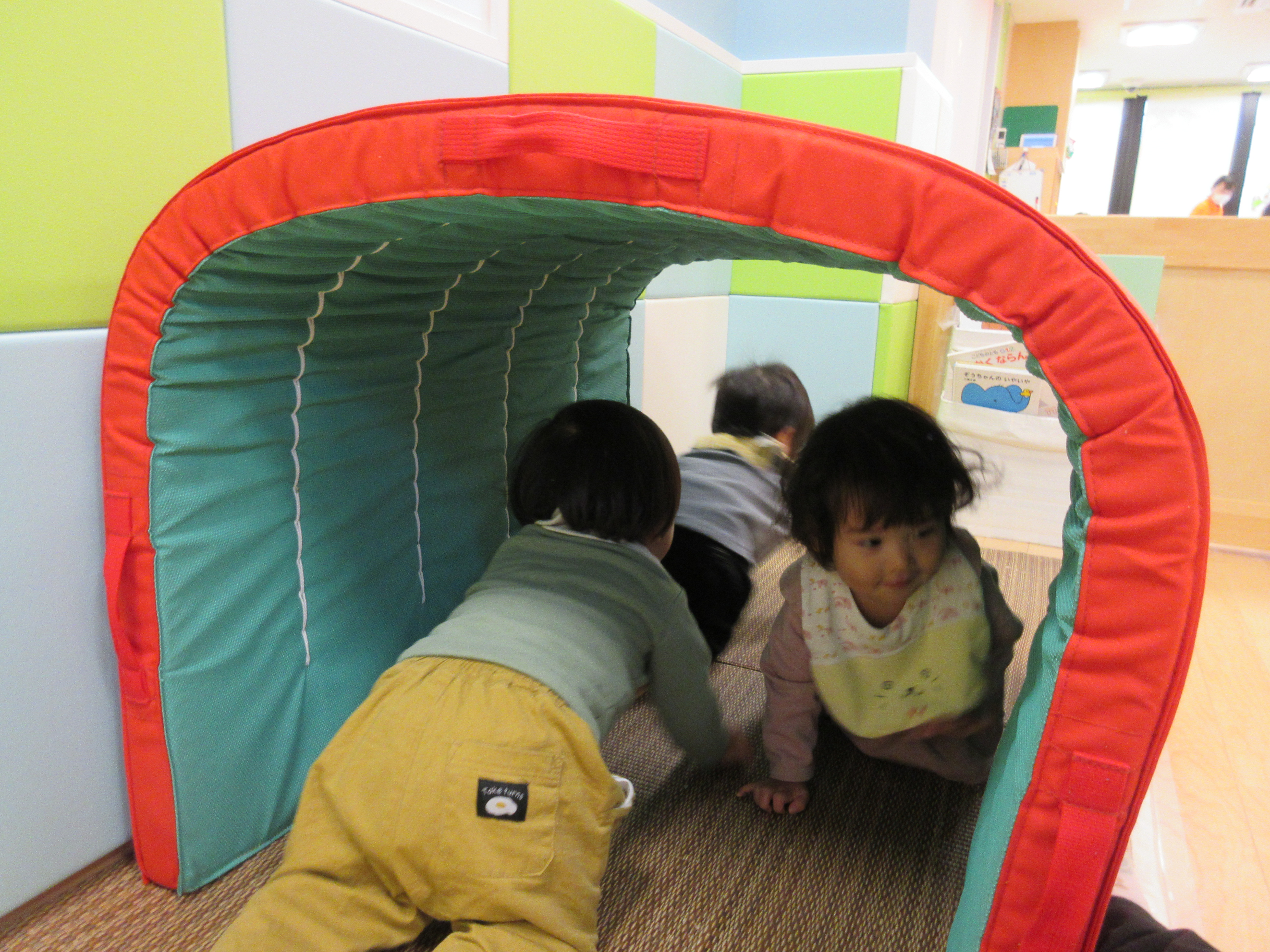 ⇩みんなでハイハイでトンネルの中を通ってみたり