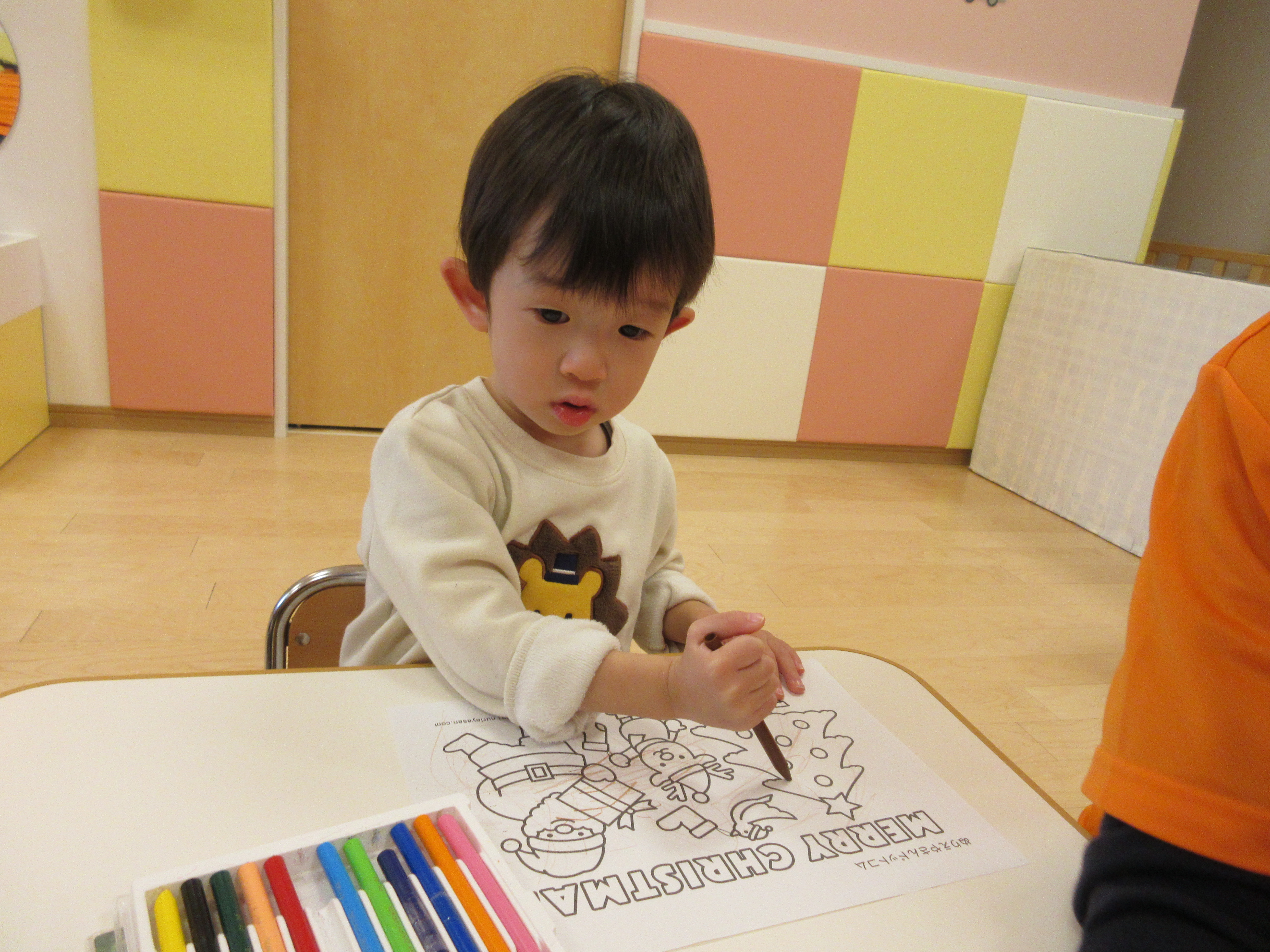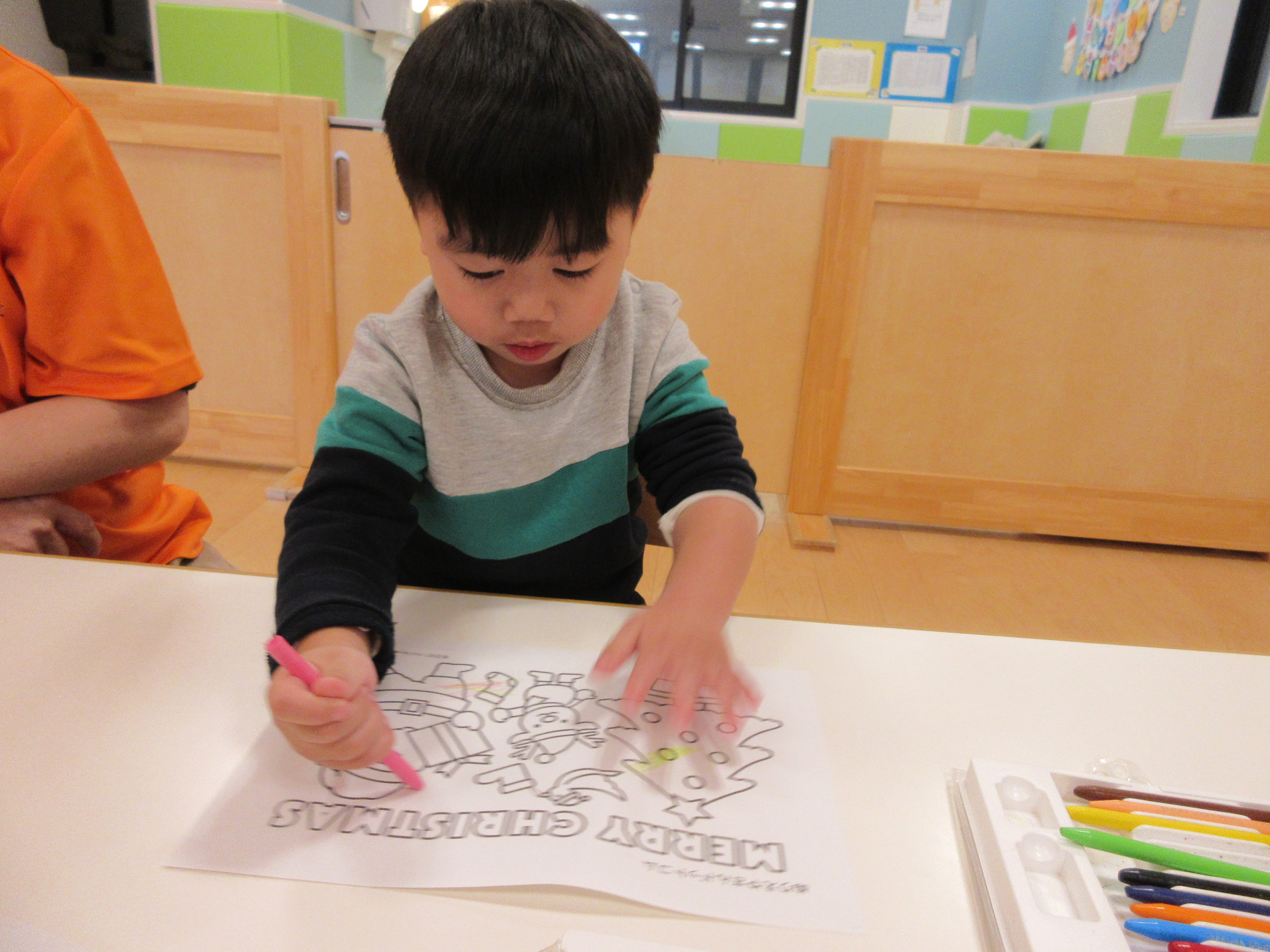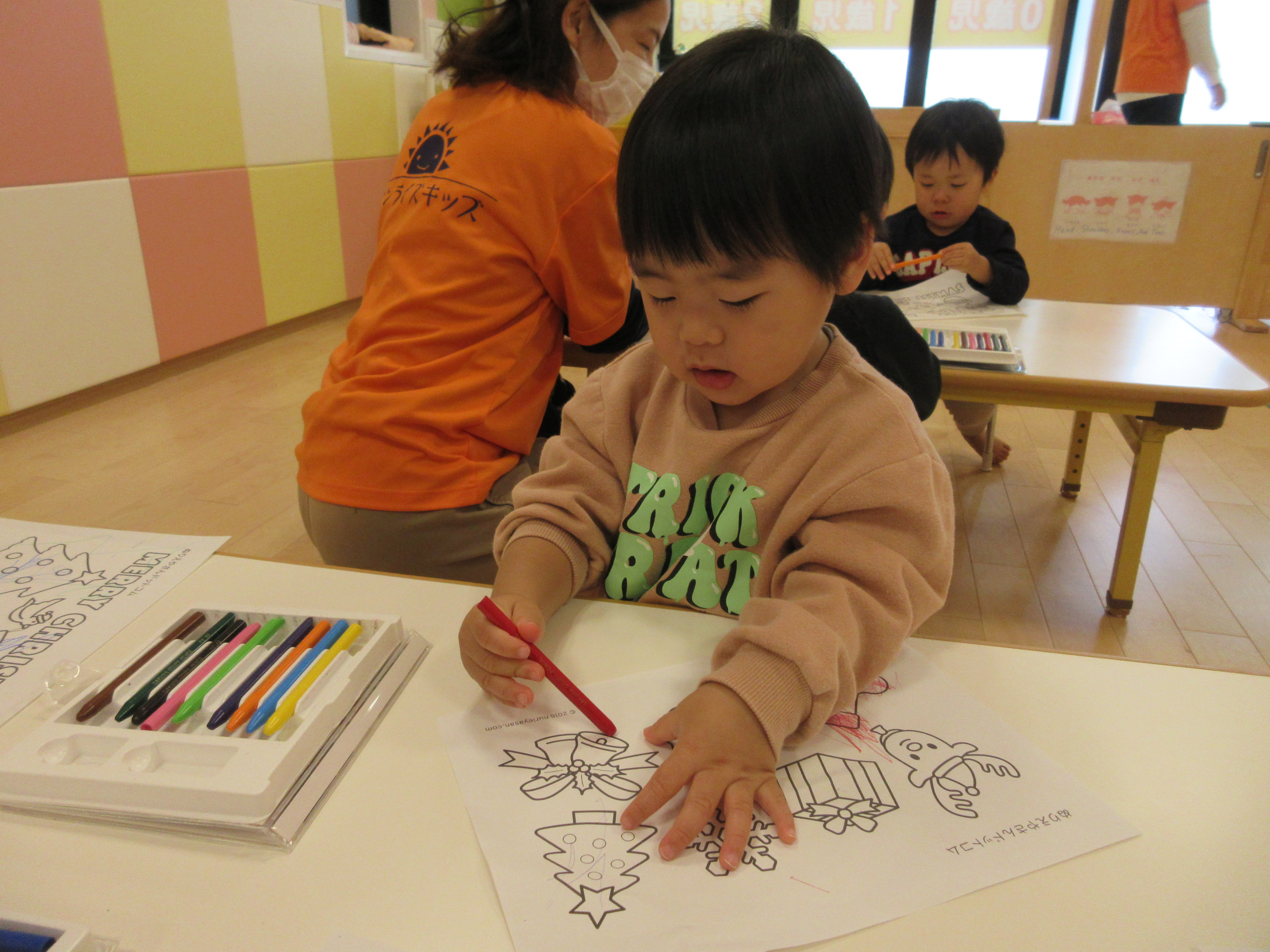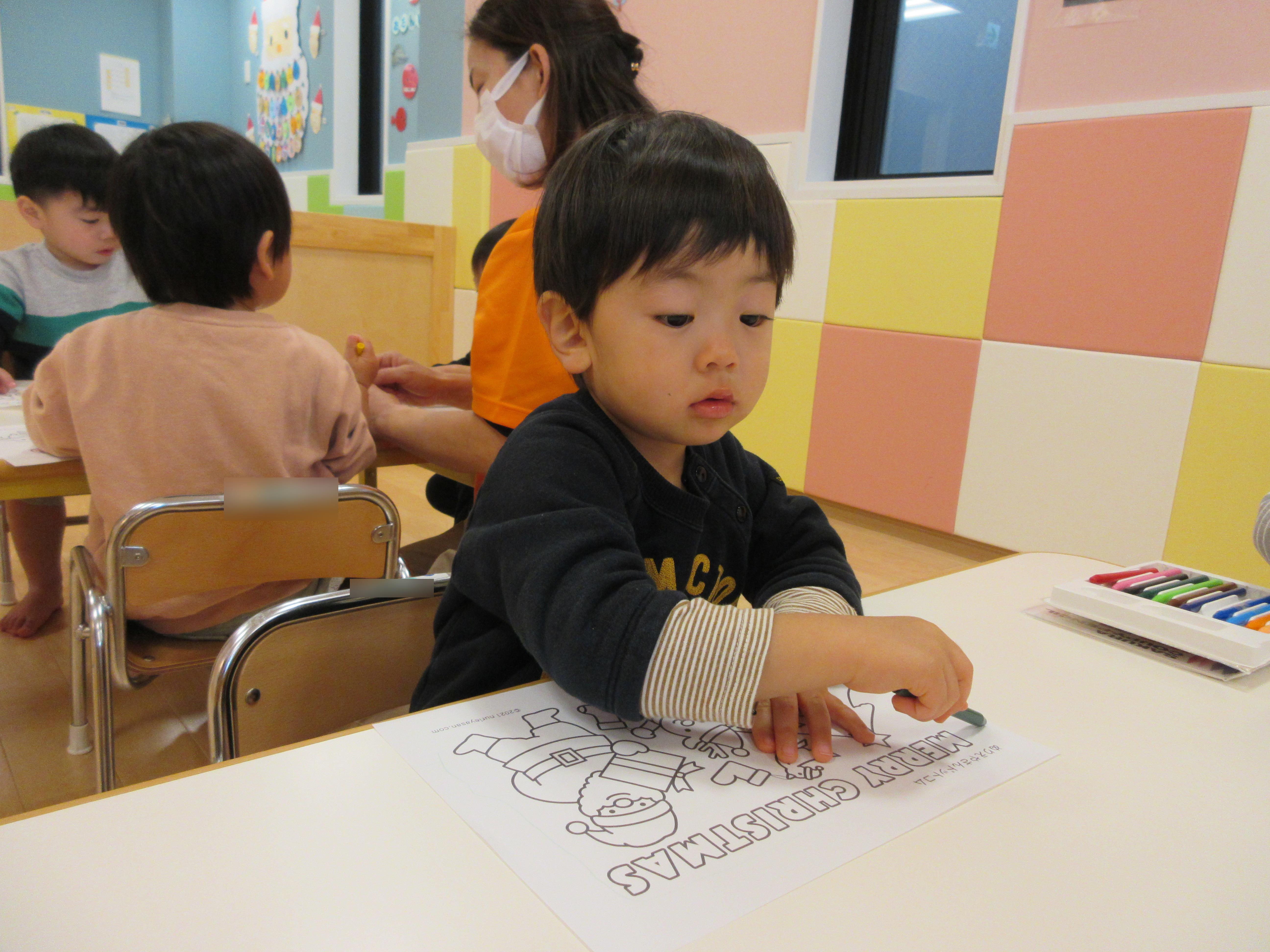 ツリーを見に行ったこともあり、ほとんどの子どもたちが大きなツリーの絵を選んでいました![]()