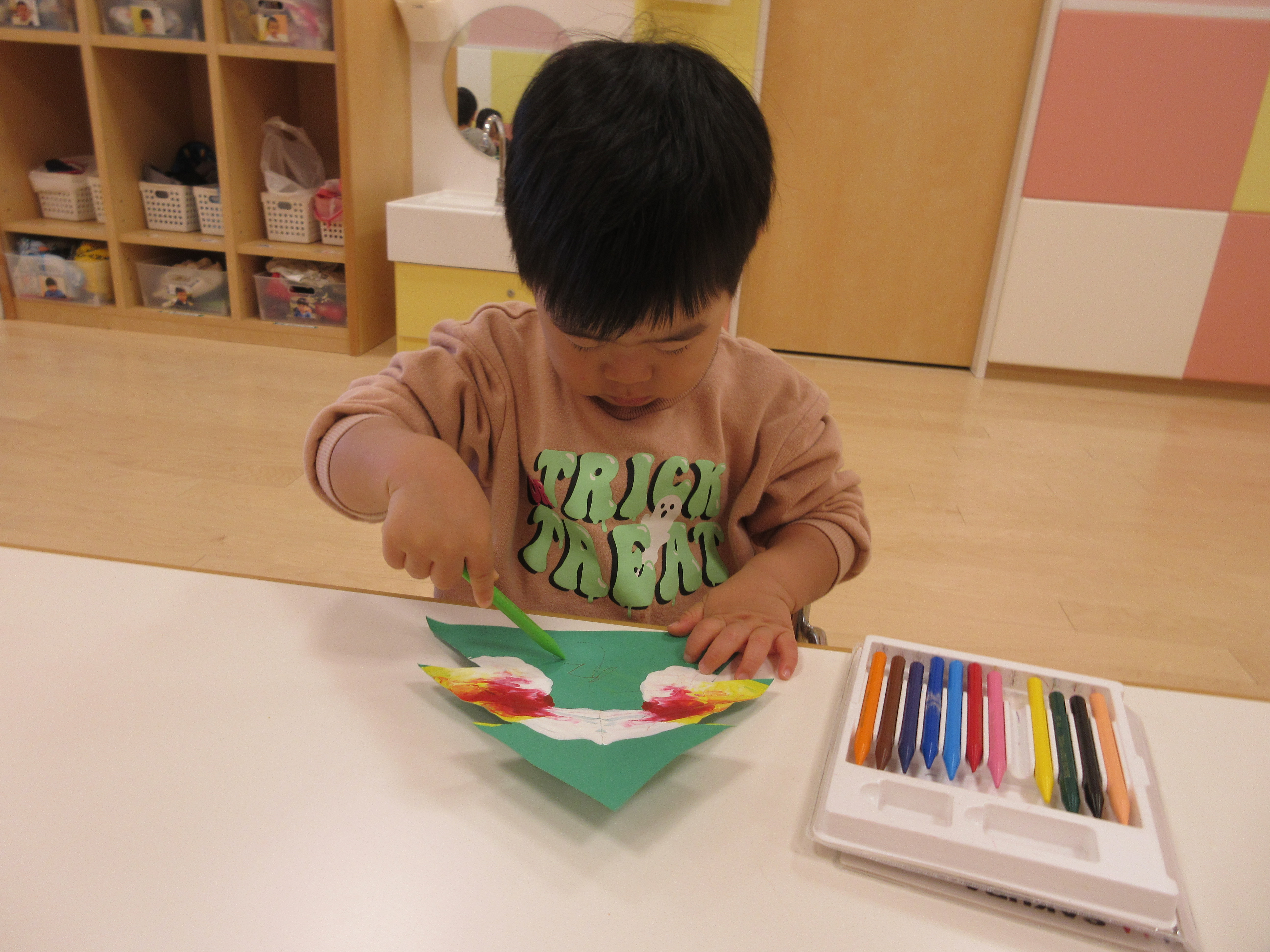 好きな色の画用紙を選んで早速お絵描きをスタートです