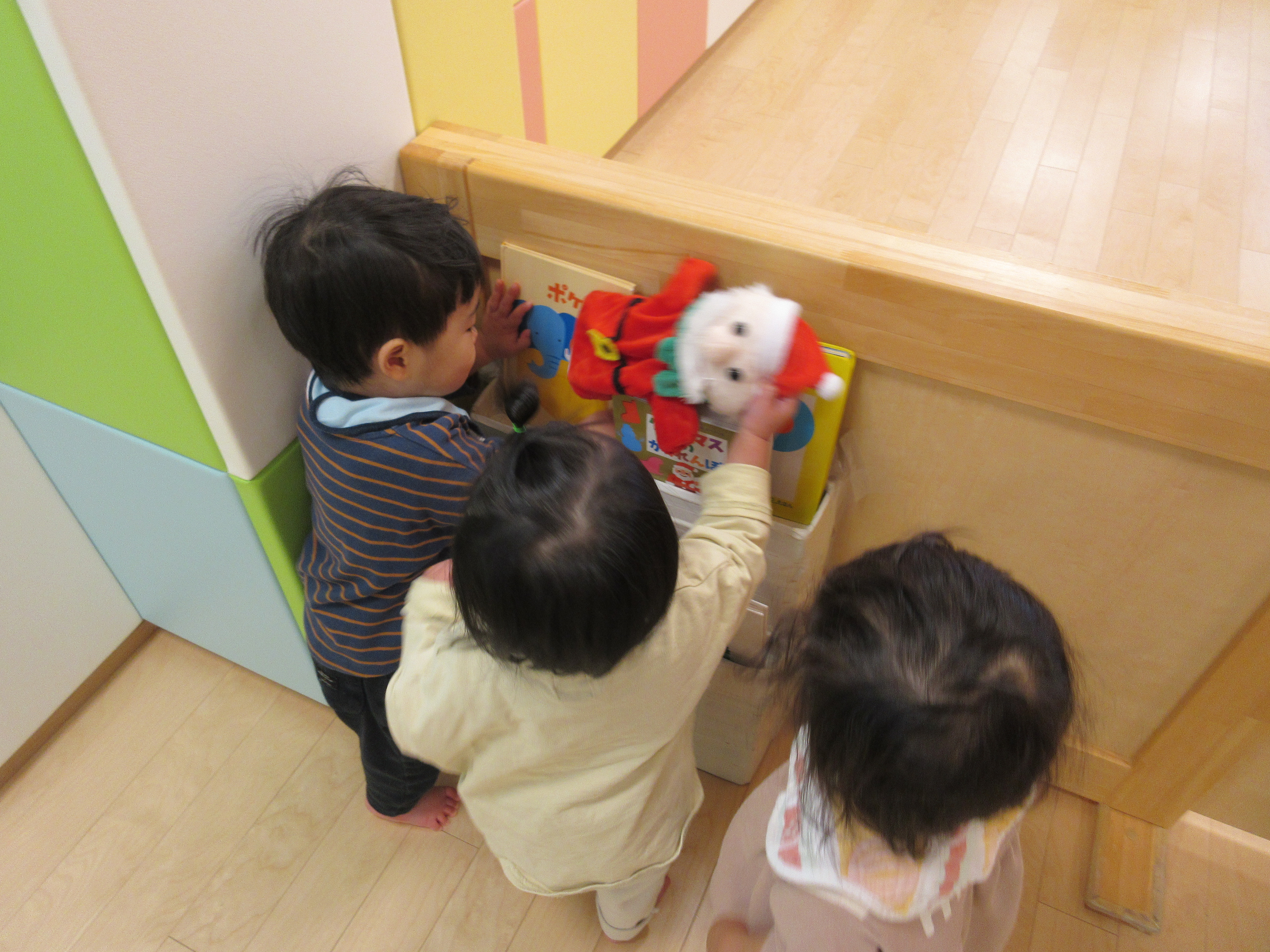 サンタさんのパペットがお部屋のどこかに隠れます⇩