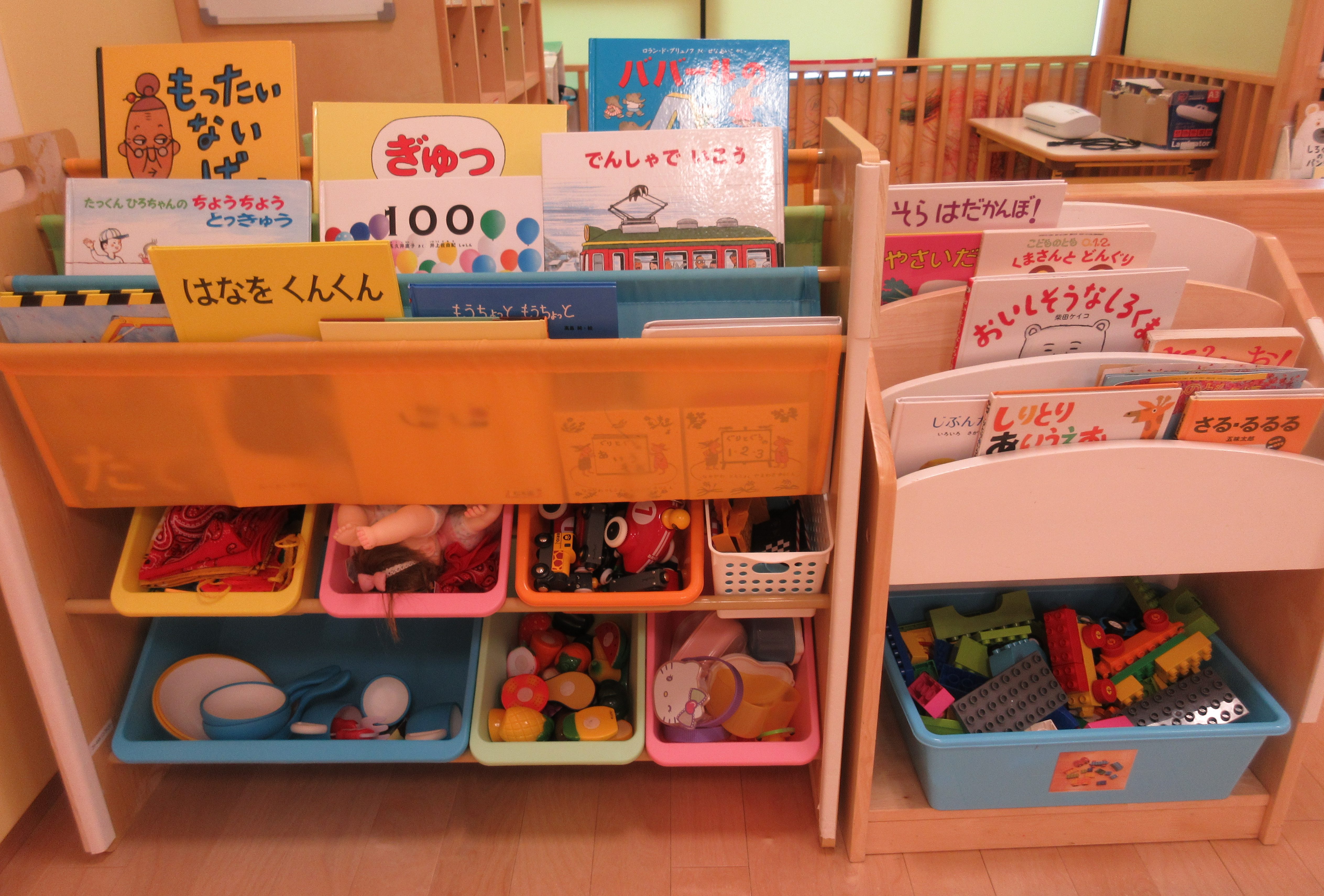 松本園では、子どもたちが手に取って絵本を楽しめるように各クラス絵本棚を用意しています![]()