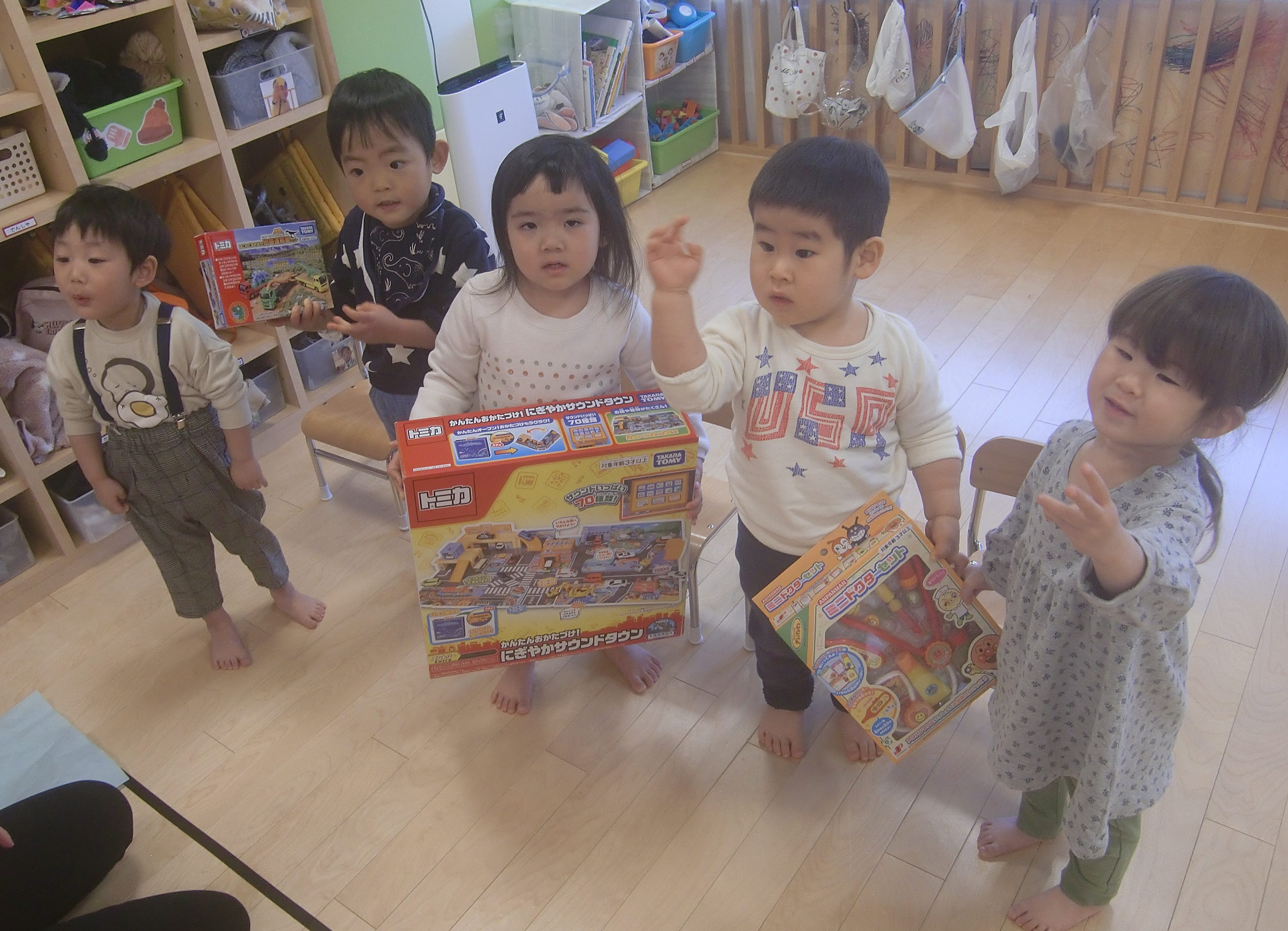 室内遊びでは、年末にある方からプレゼントして頂いたおもちゃで遊びました![]()