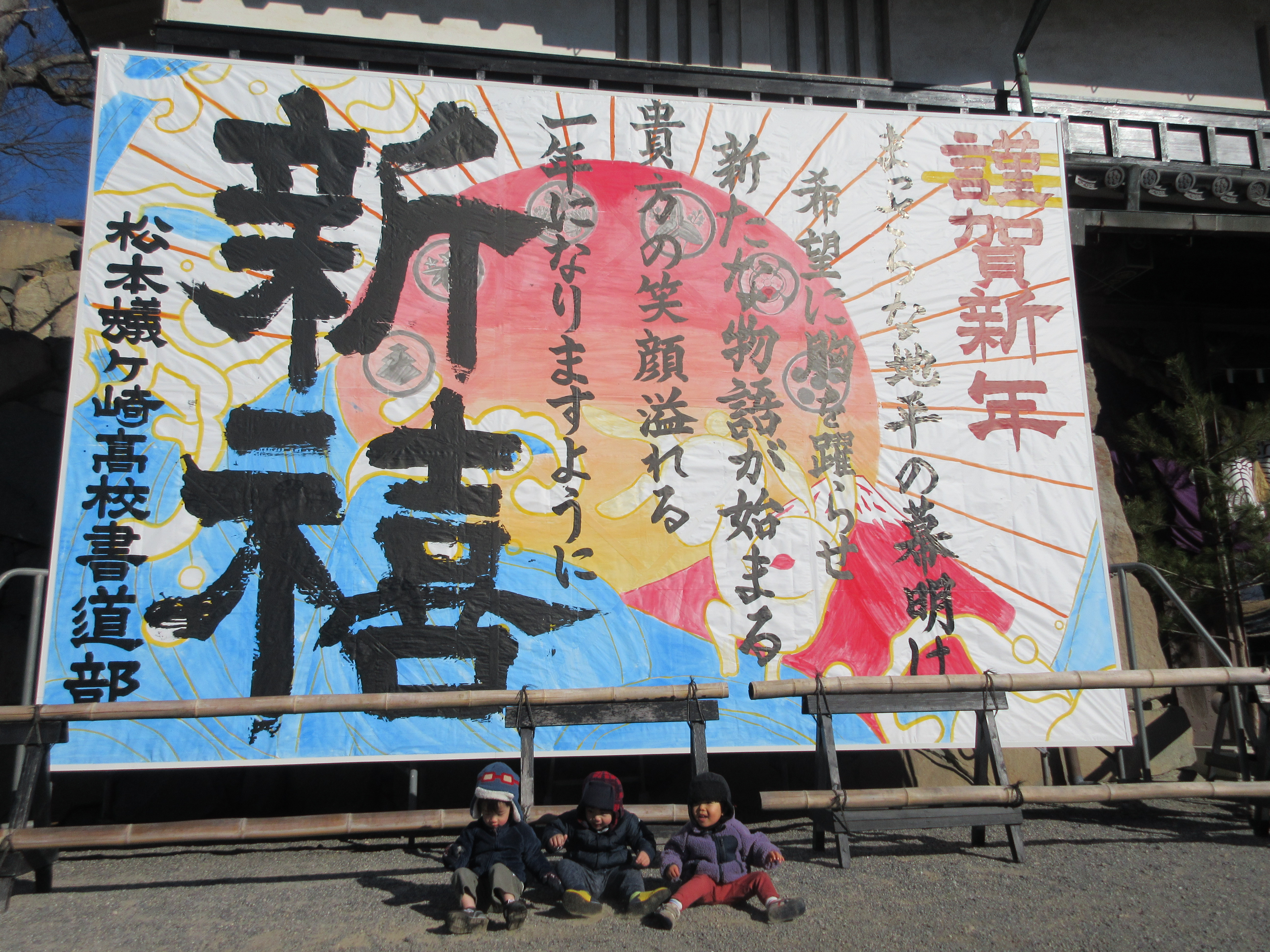 園庭の入り口には松本蟻ケ崎高校書道部の方が書いた大きな作品があり、記念にみんなで写真撮影をしました![]()