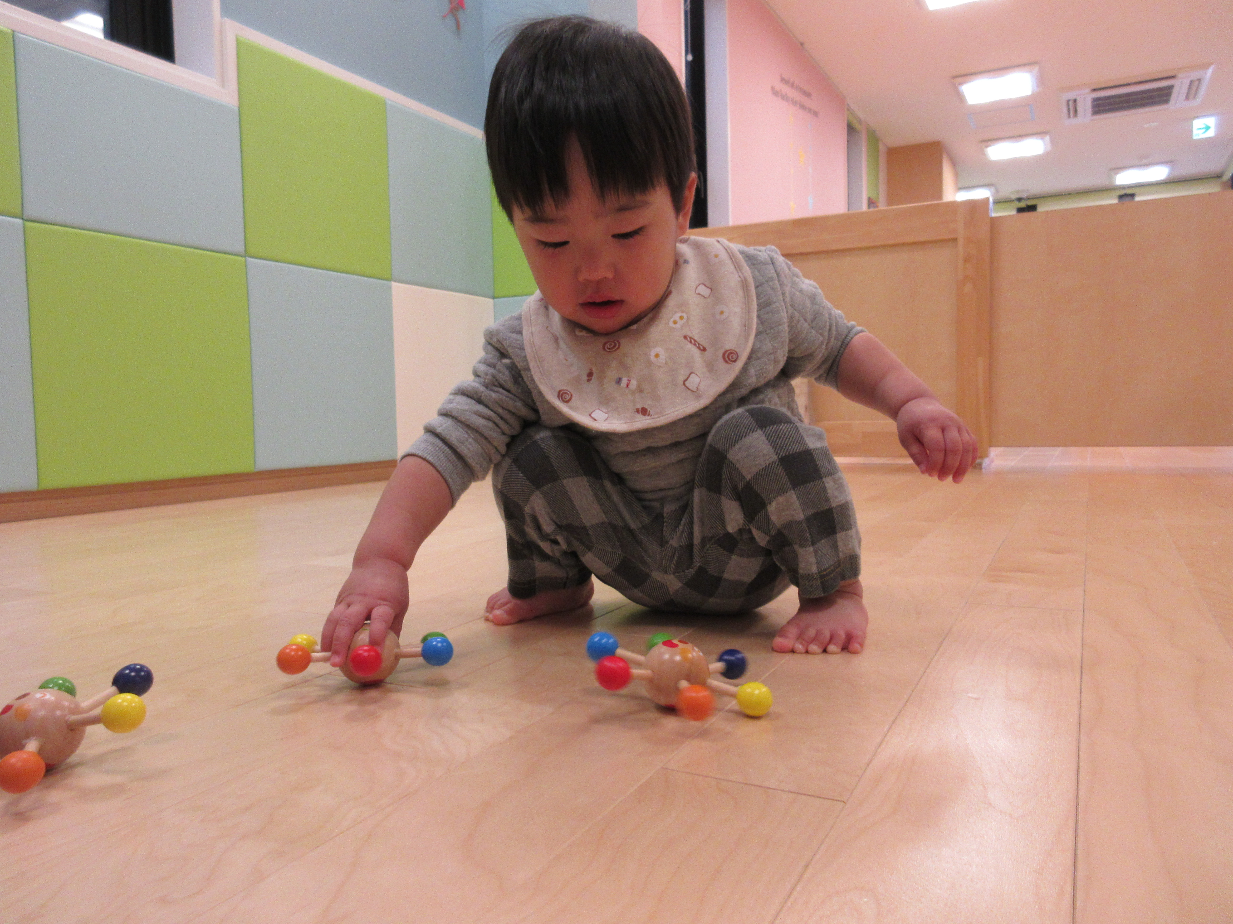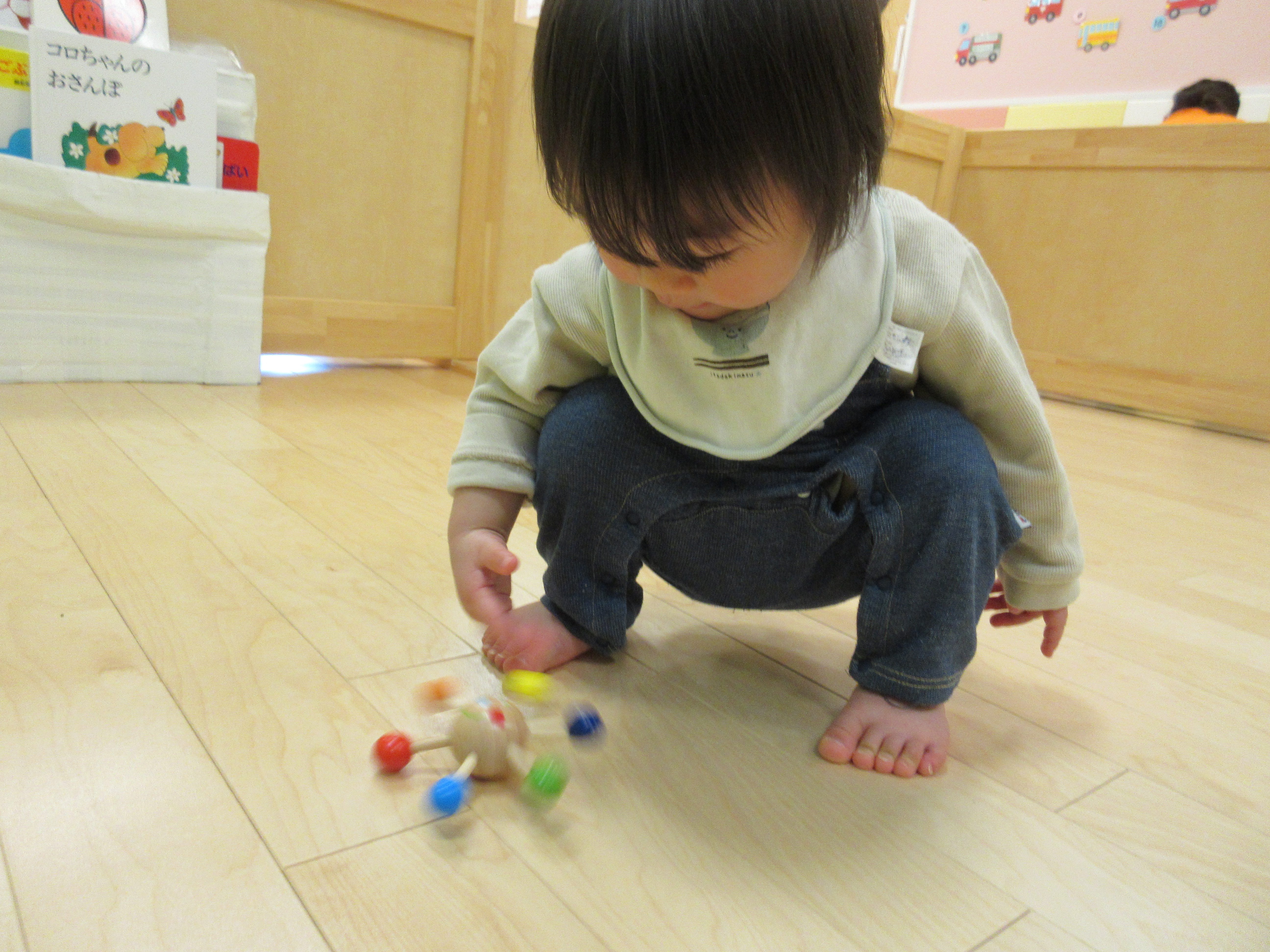 0・1・2歳でも回しやすいというコマを用意し、みんなで遊ぶと・・・⇩