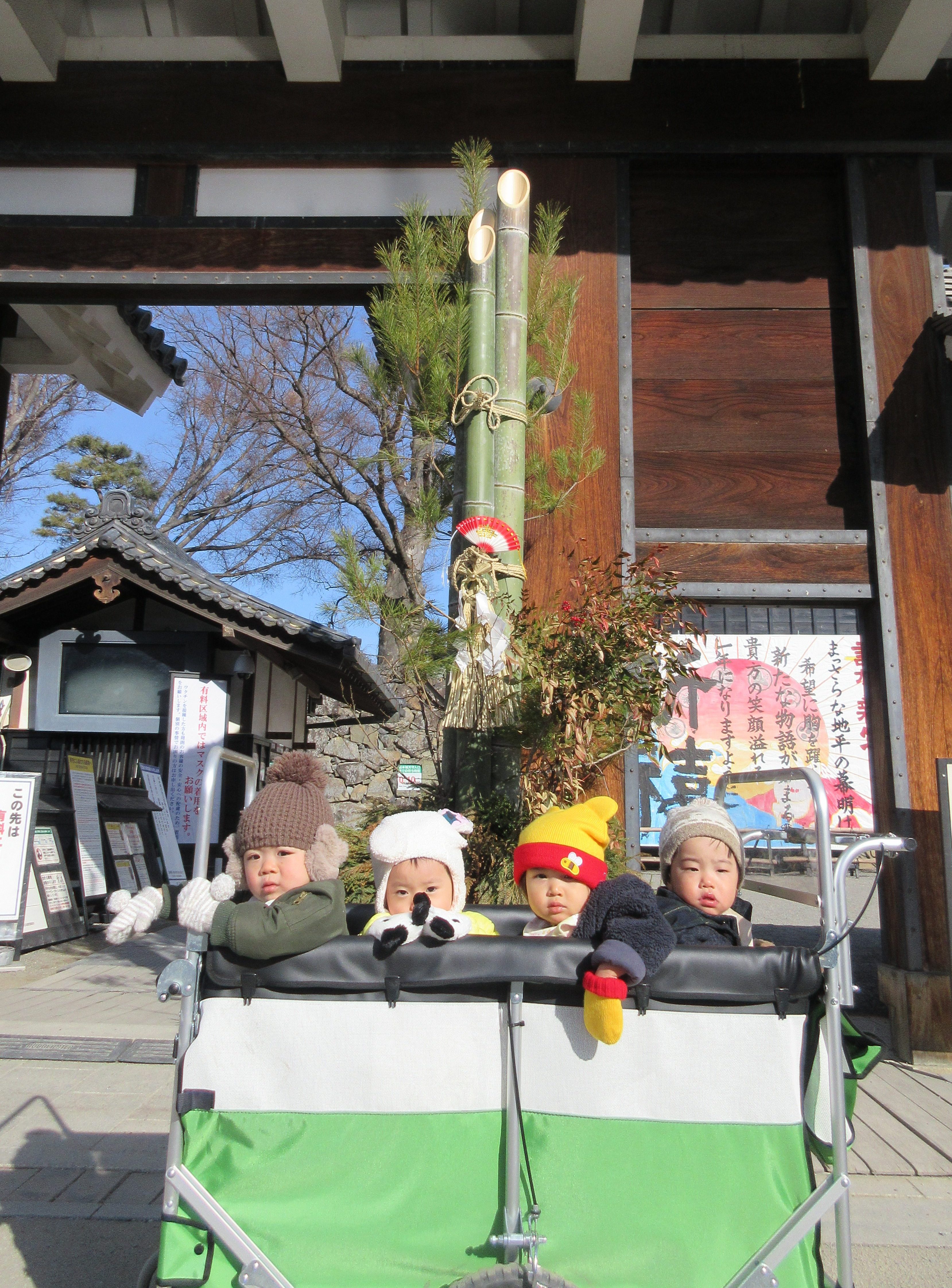 今週はお正月ということでコマ遊びをしたり、門松の前で写真を撮りました![]()