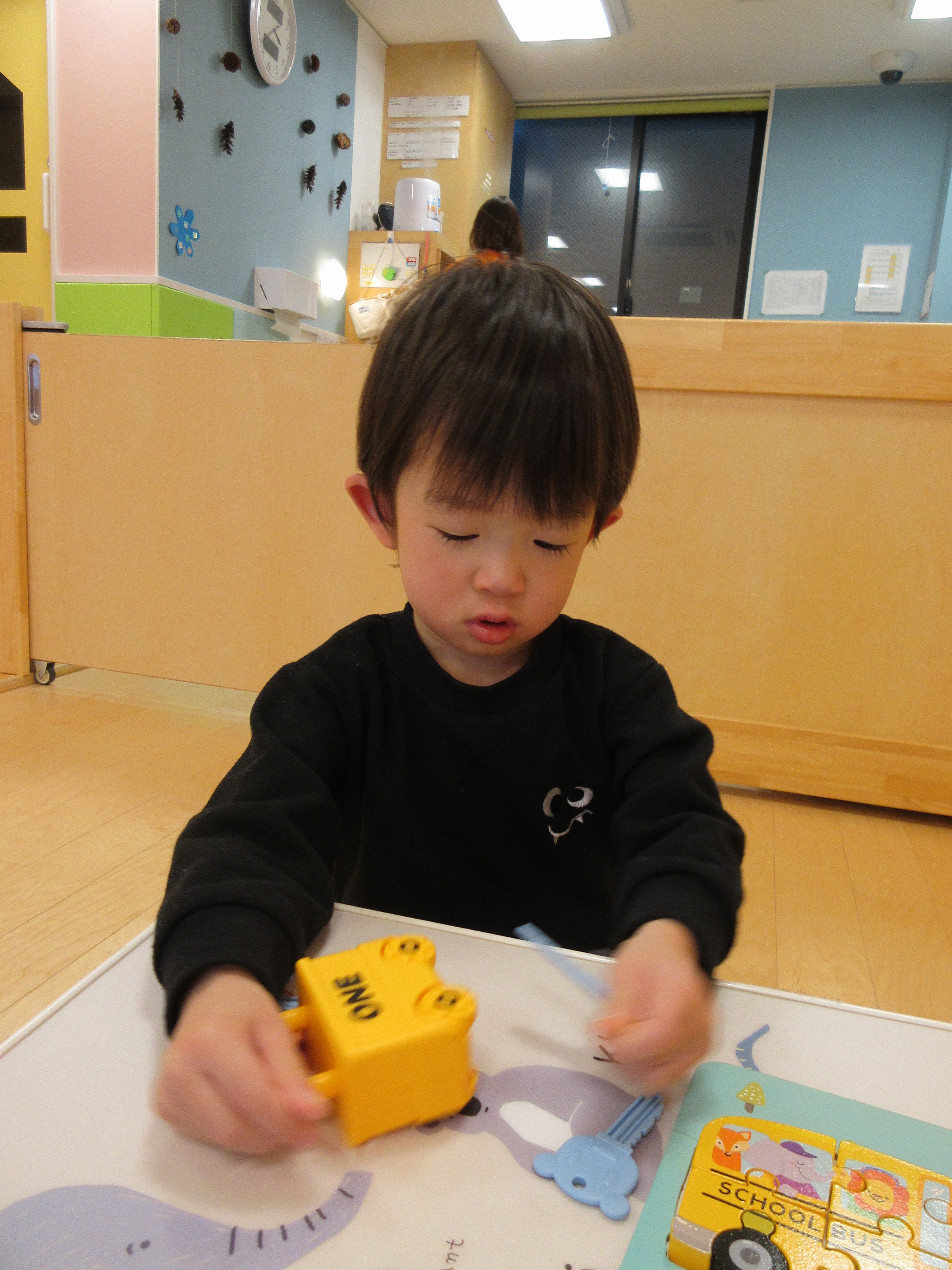車のおもちゃはいくつかあるカギの中から同じ物を探してカギを回すとロックが取れるようになっています![]()
