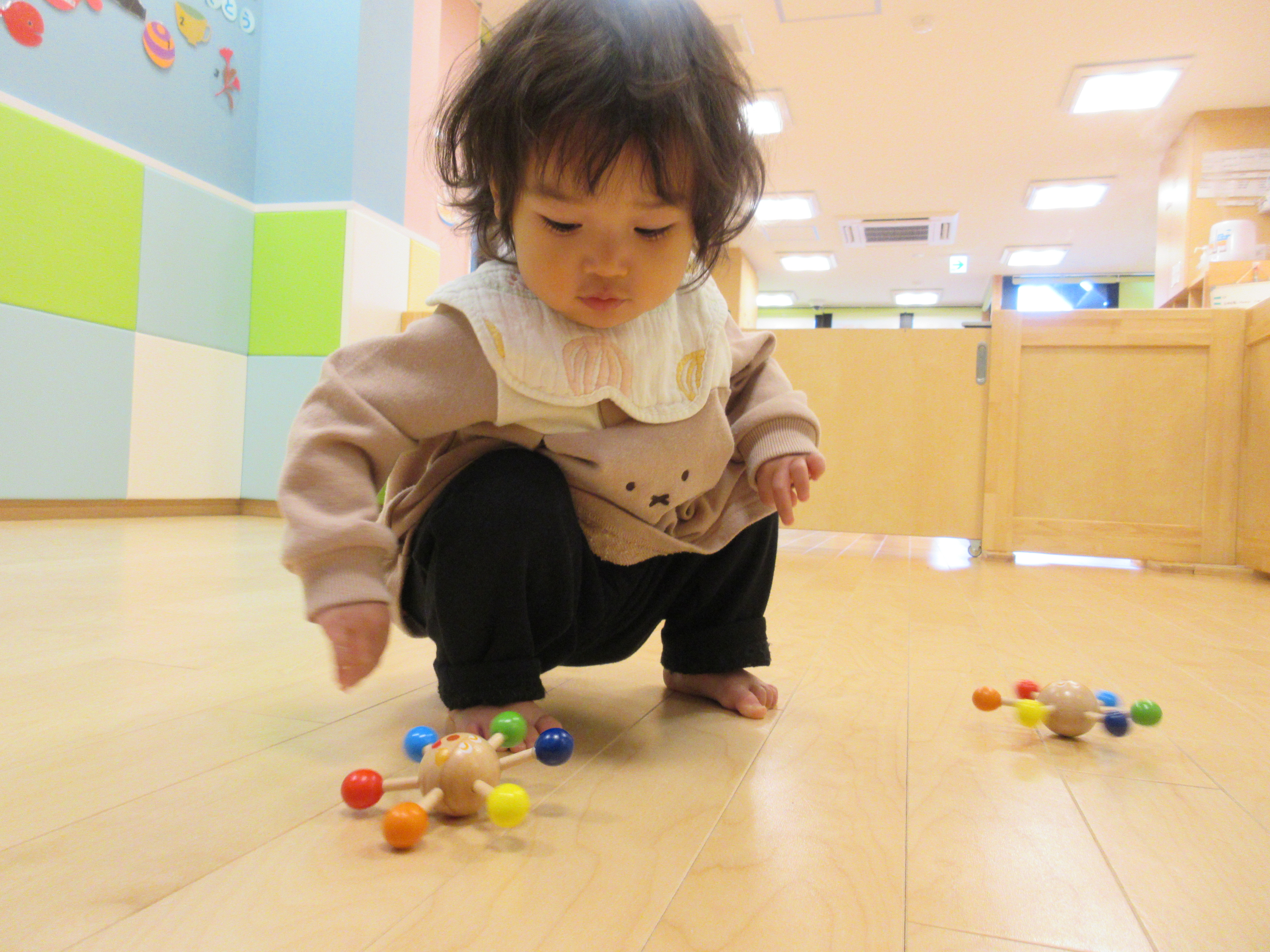 0・1・2歳でも回しやすいというコマを用意し、みんなで遊ぶと・・・⇩