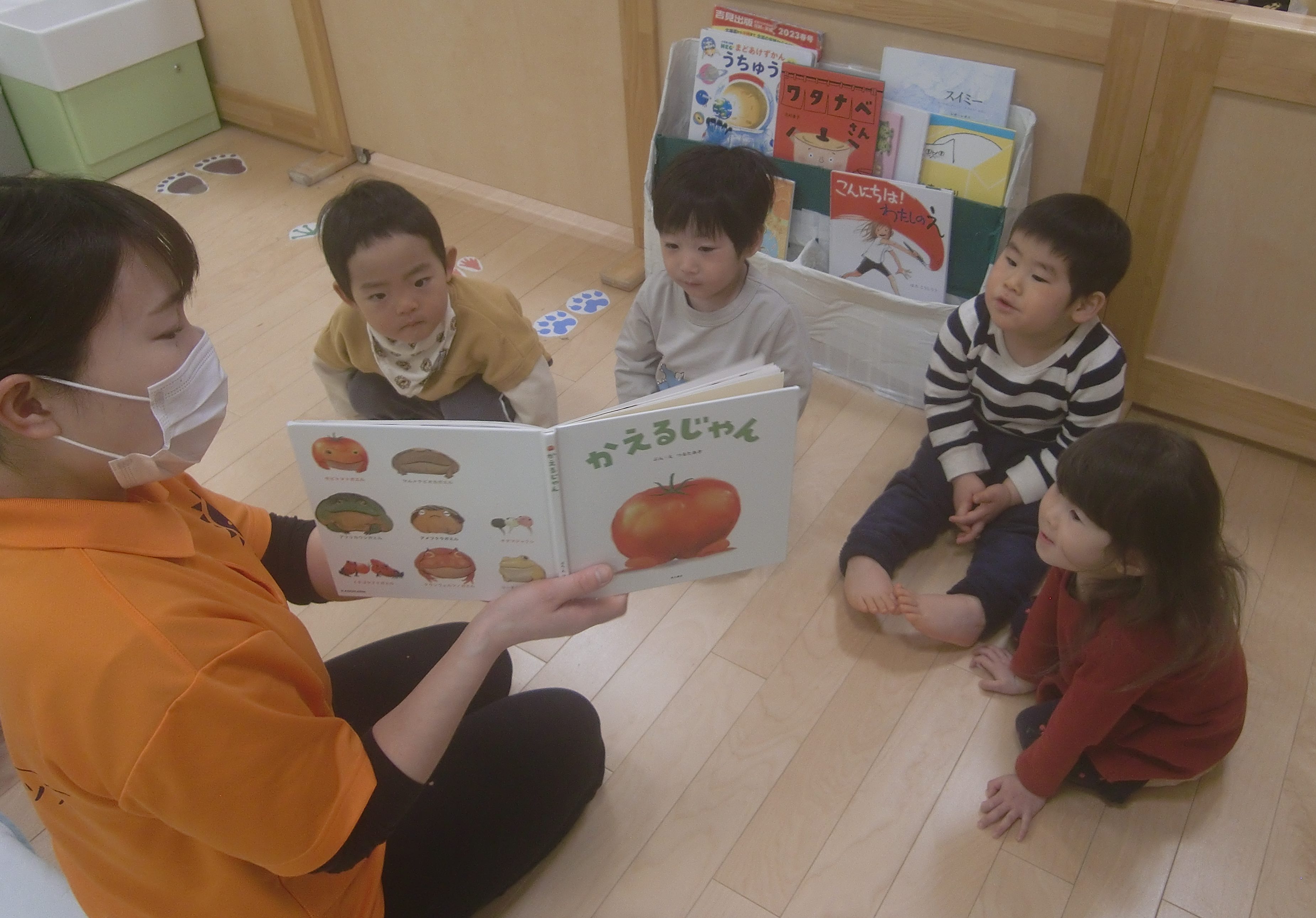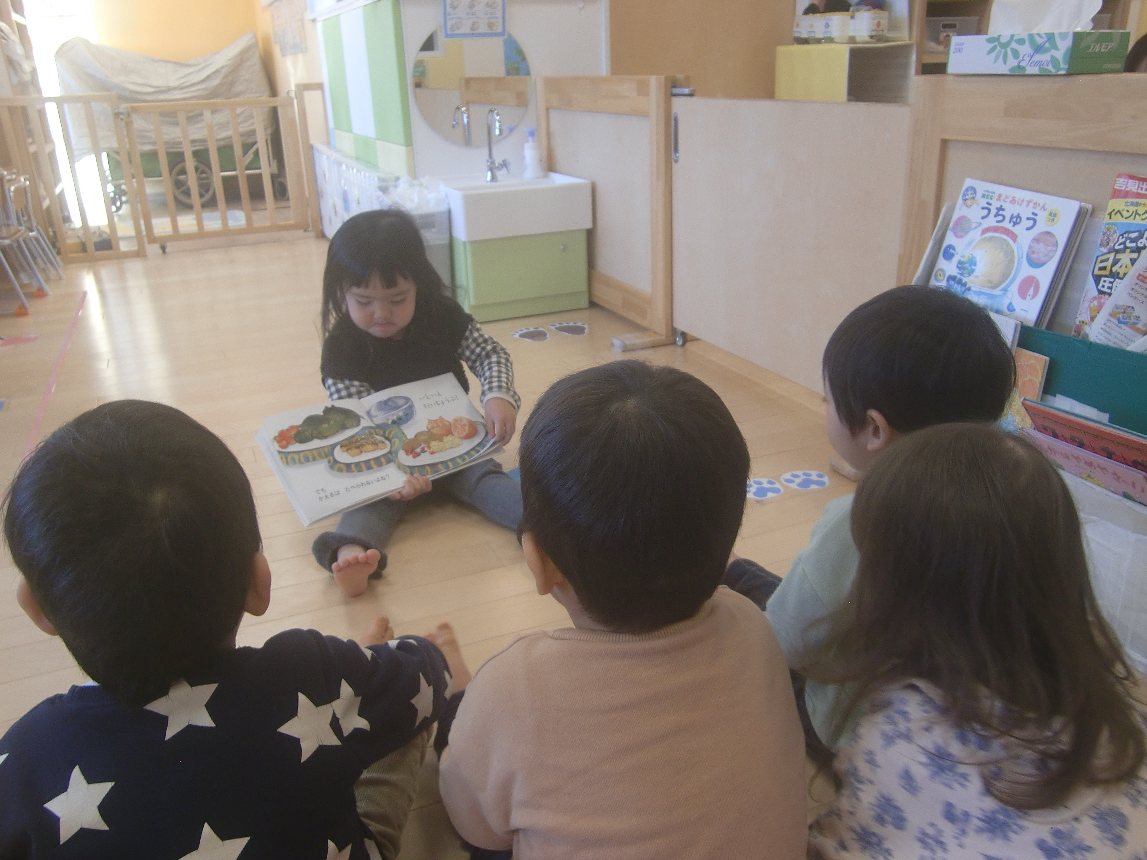 子どもたちのお気に入りの1冊で、子どもが先生の真似をして読み聞かせをしている姿もありました![]()
