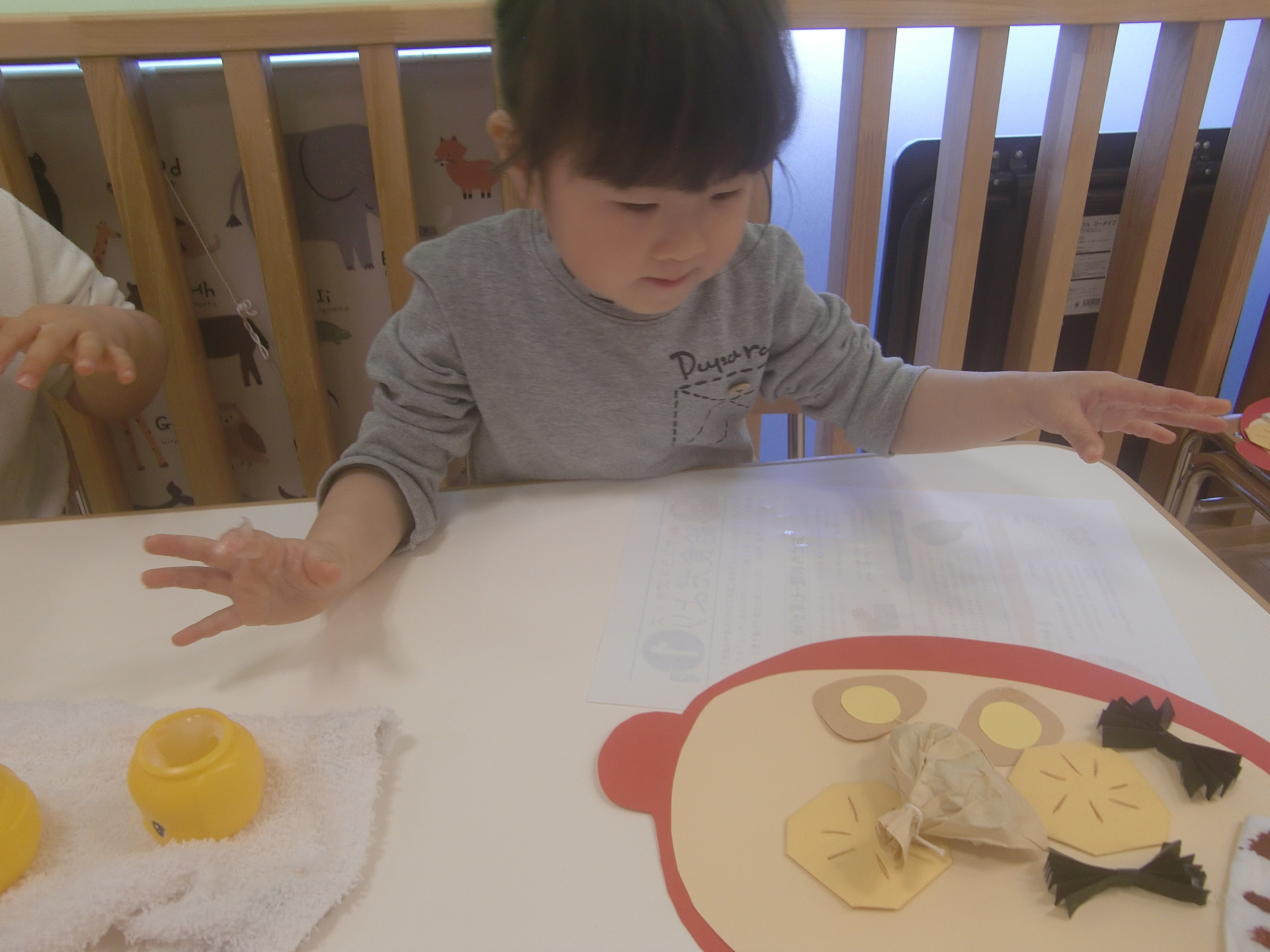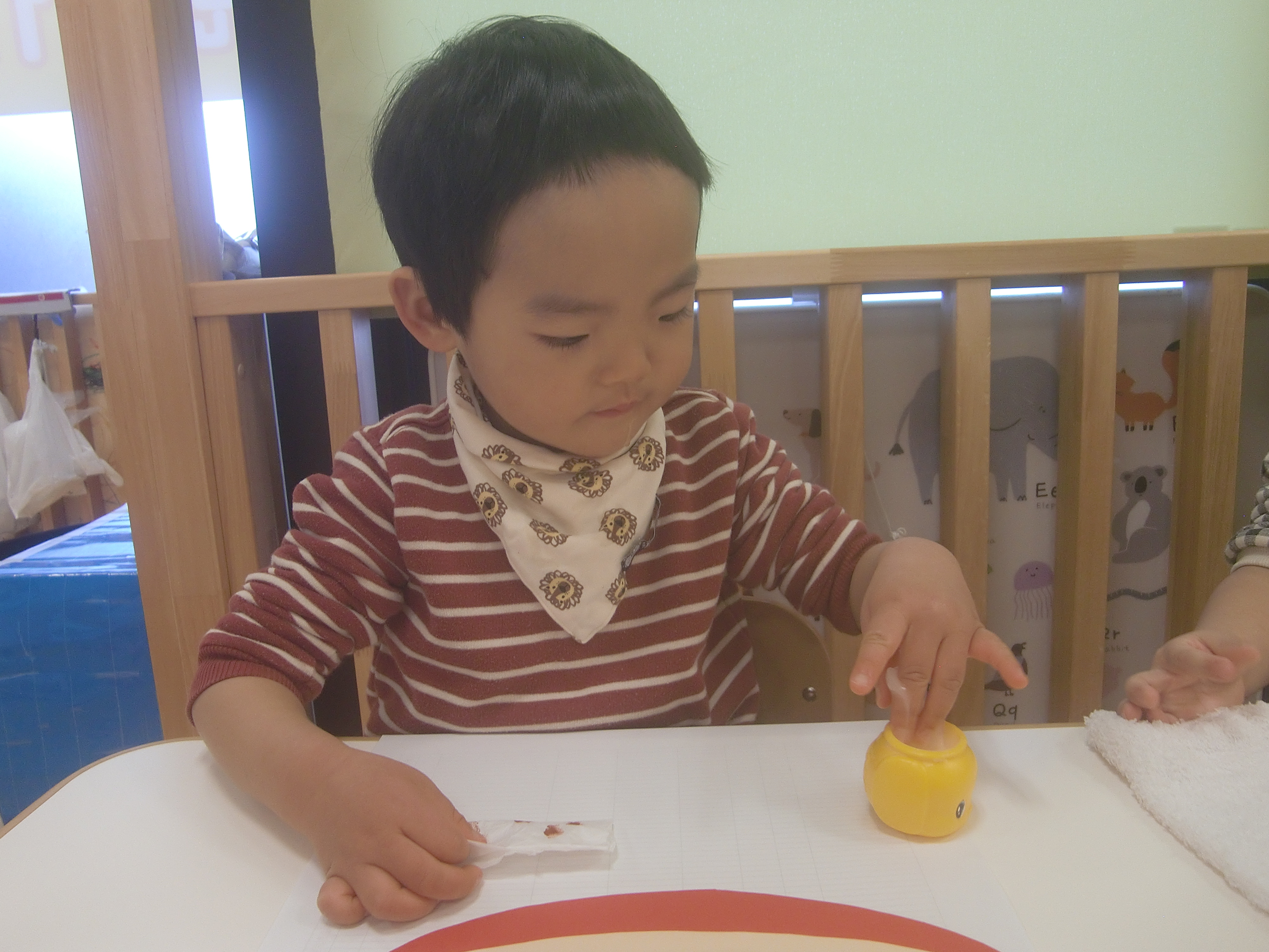 たっぷりつける子、少しずつつける子とそれぞれの個性がでていました![]()