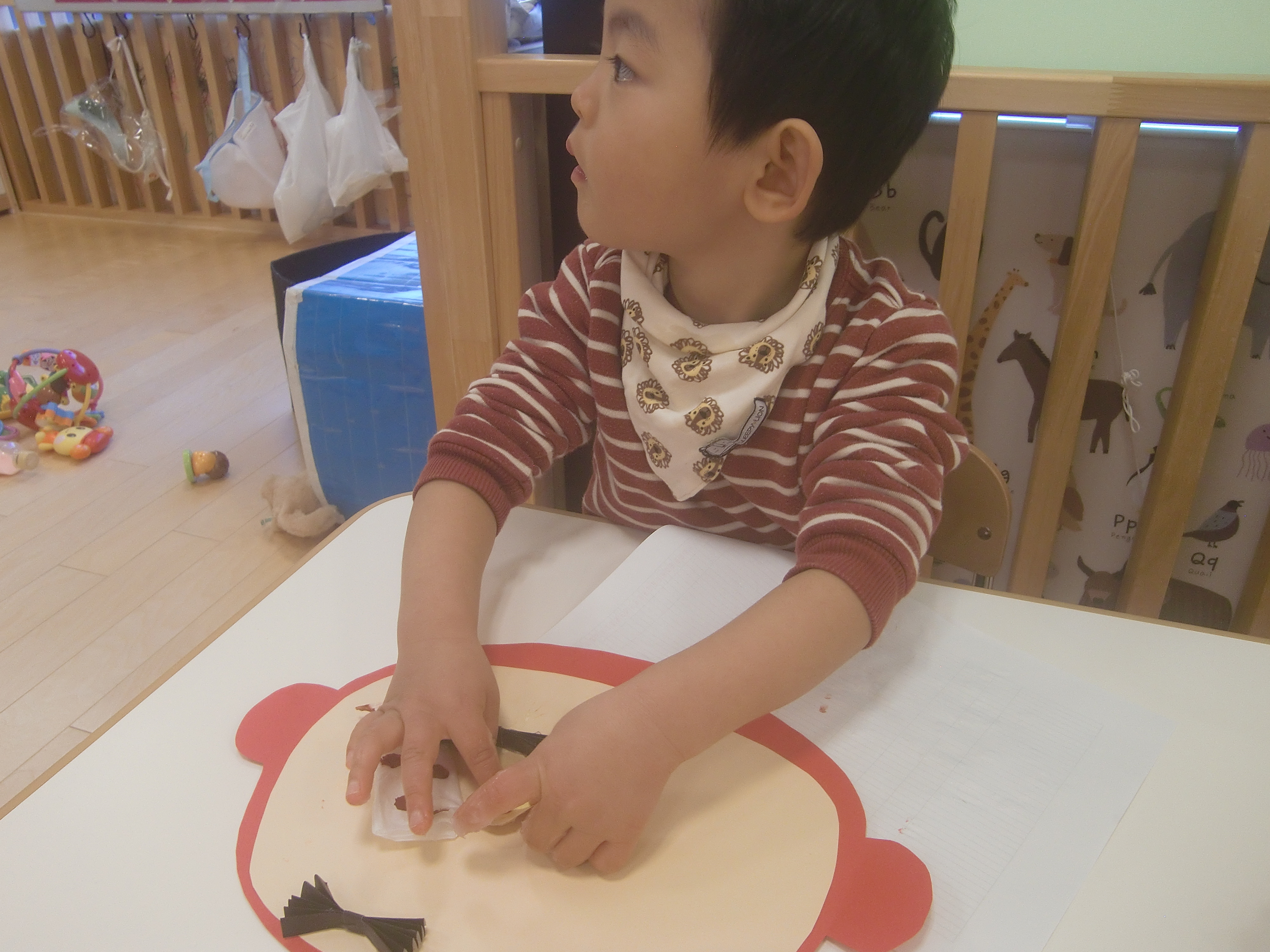 おべんとうバスで使ったフエキのりを使って今回もみんなにペタペタと貼ってもらいました![]()