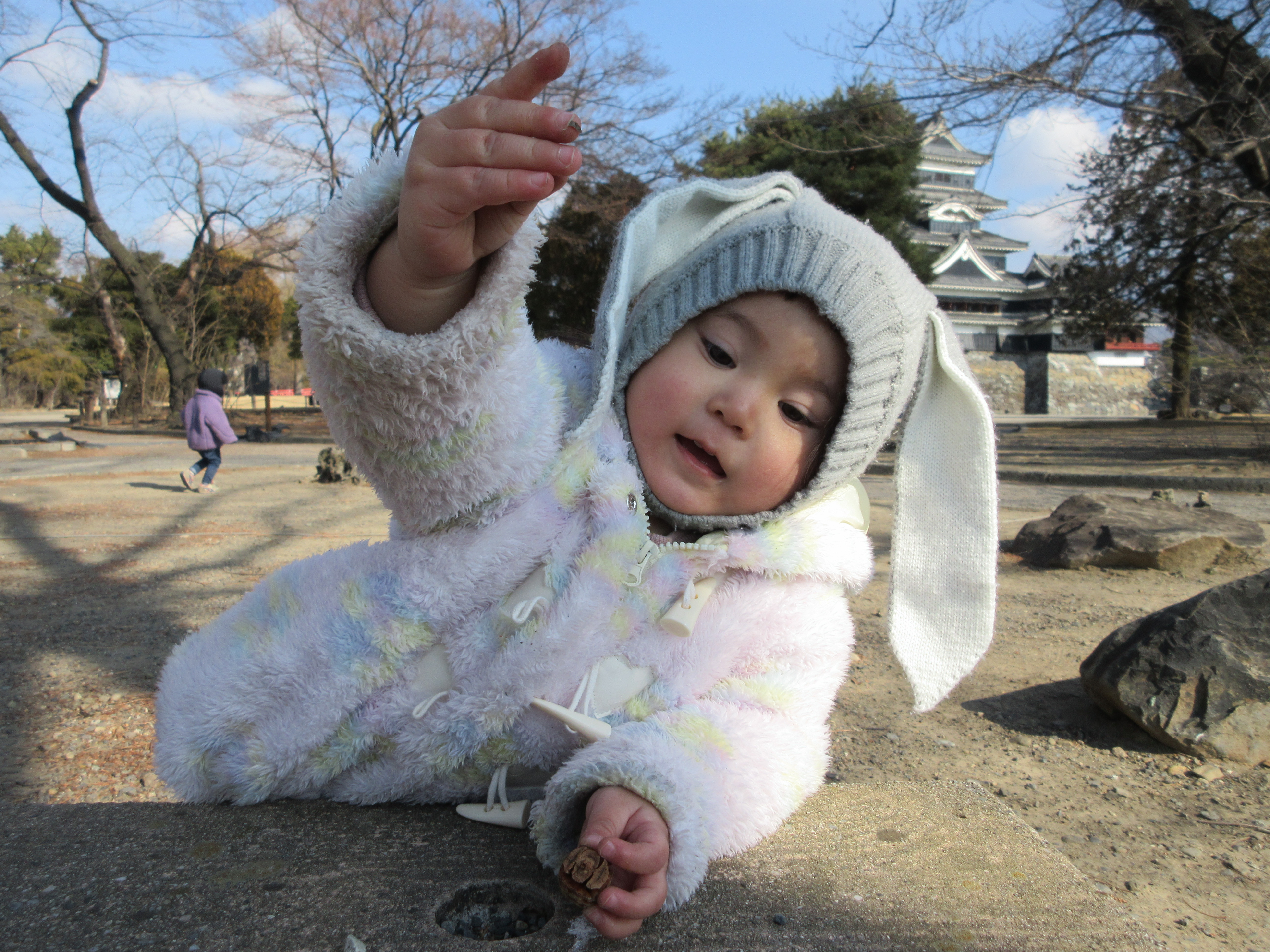 松本城に行き、ちょっとした木の小道を気に入って遊んでいたいちごぐみさん。