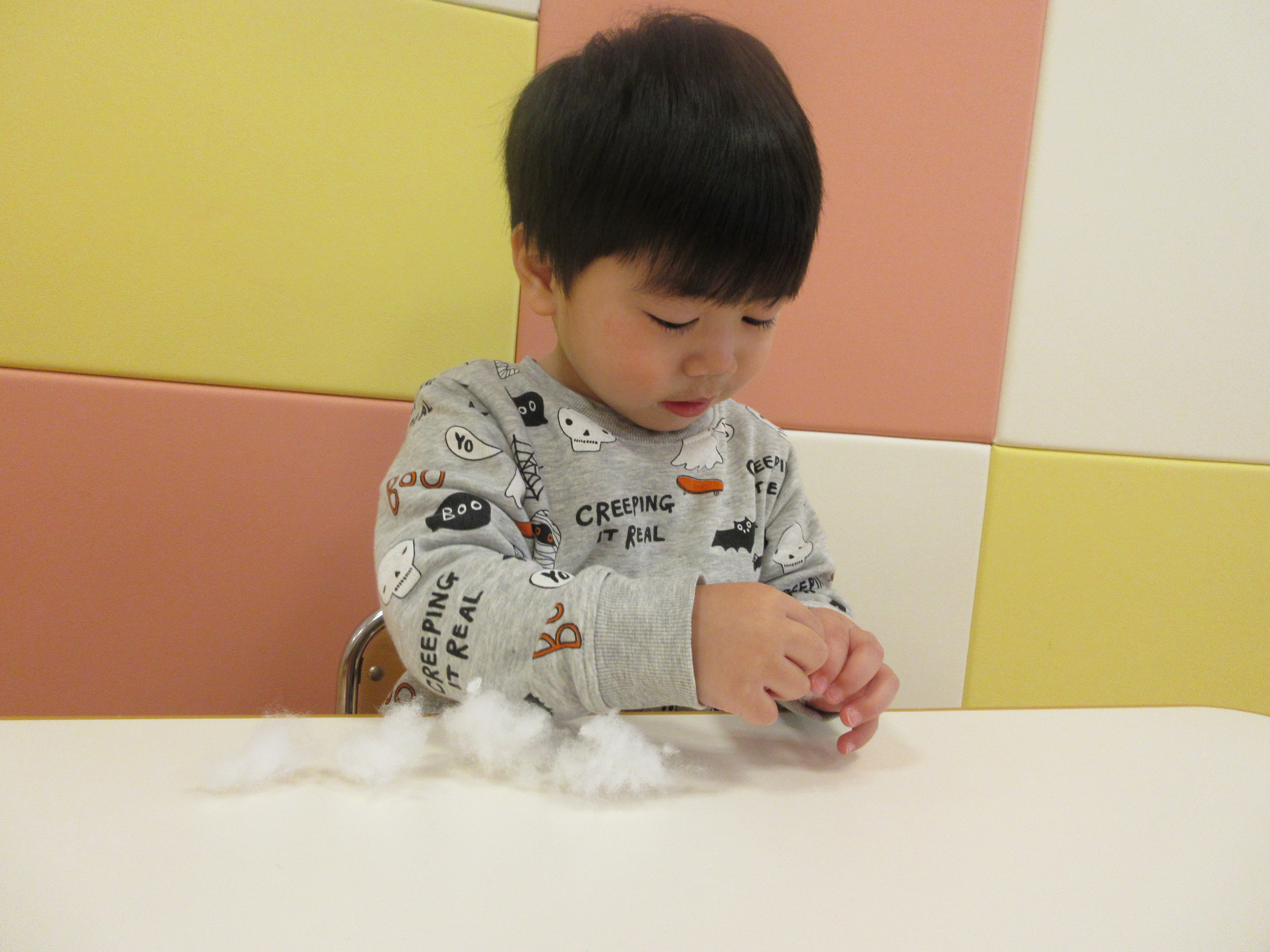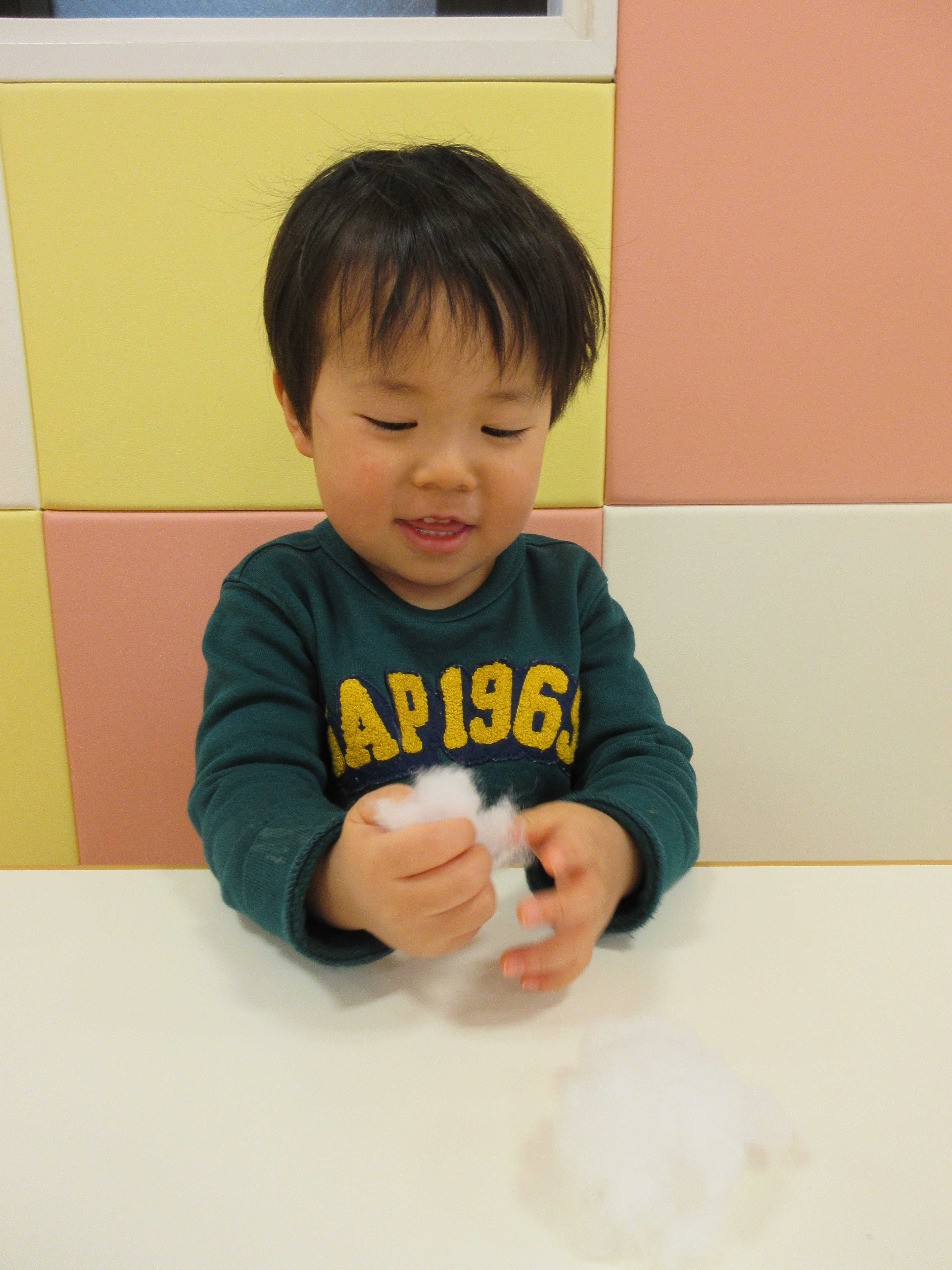 まずは、子どもたちそれぞれに綿を持って感触を確かめてもらいました。