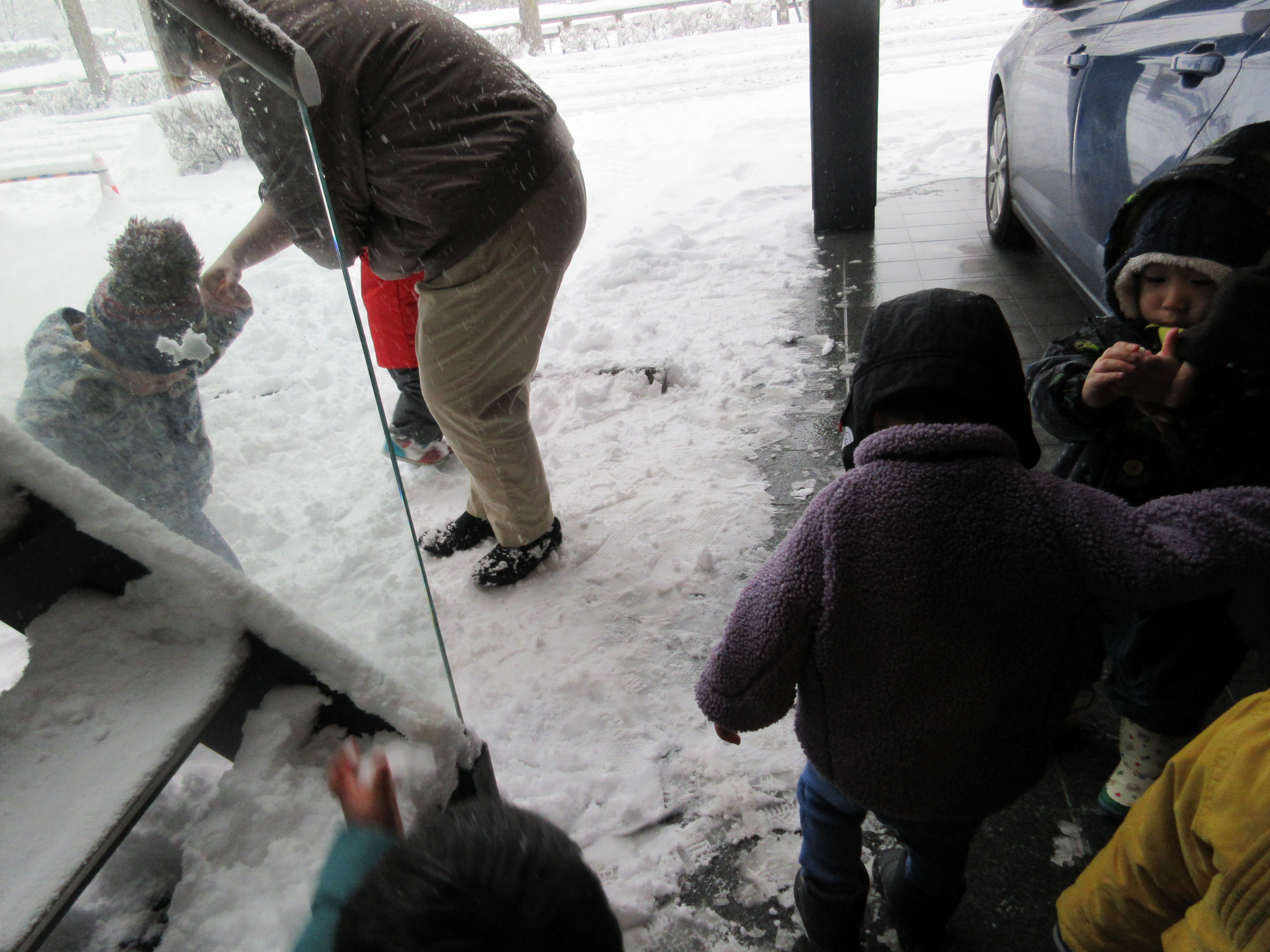 玄関先で雪を触ったり踏んだりと楽しみました![]()