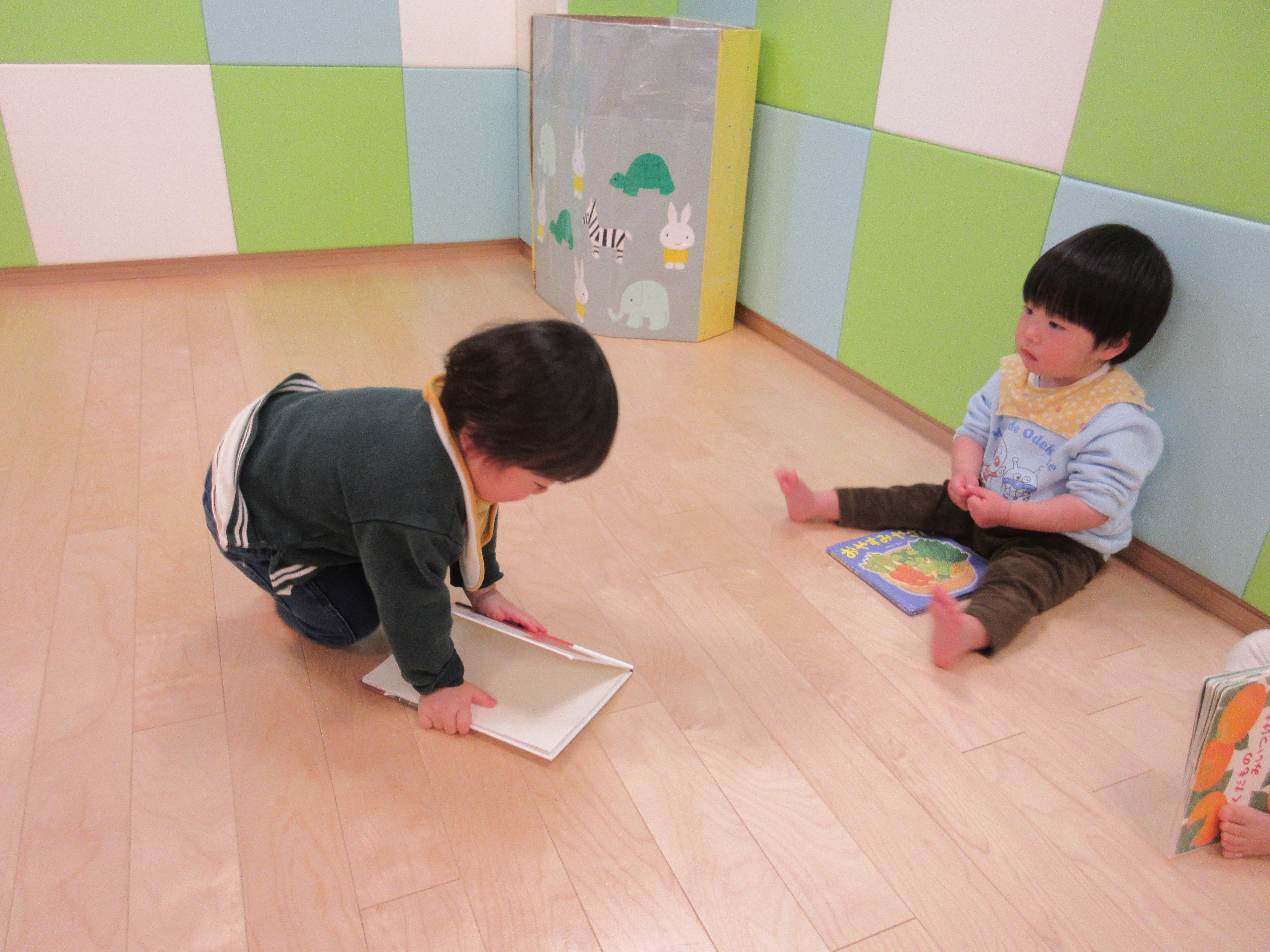 「なにかな なにかな」のところでは、首をかしげる子もいたりと興味津々![]()