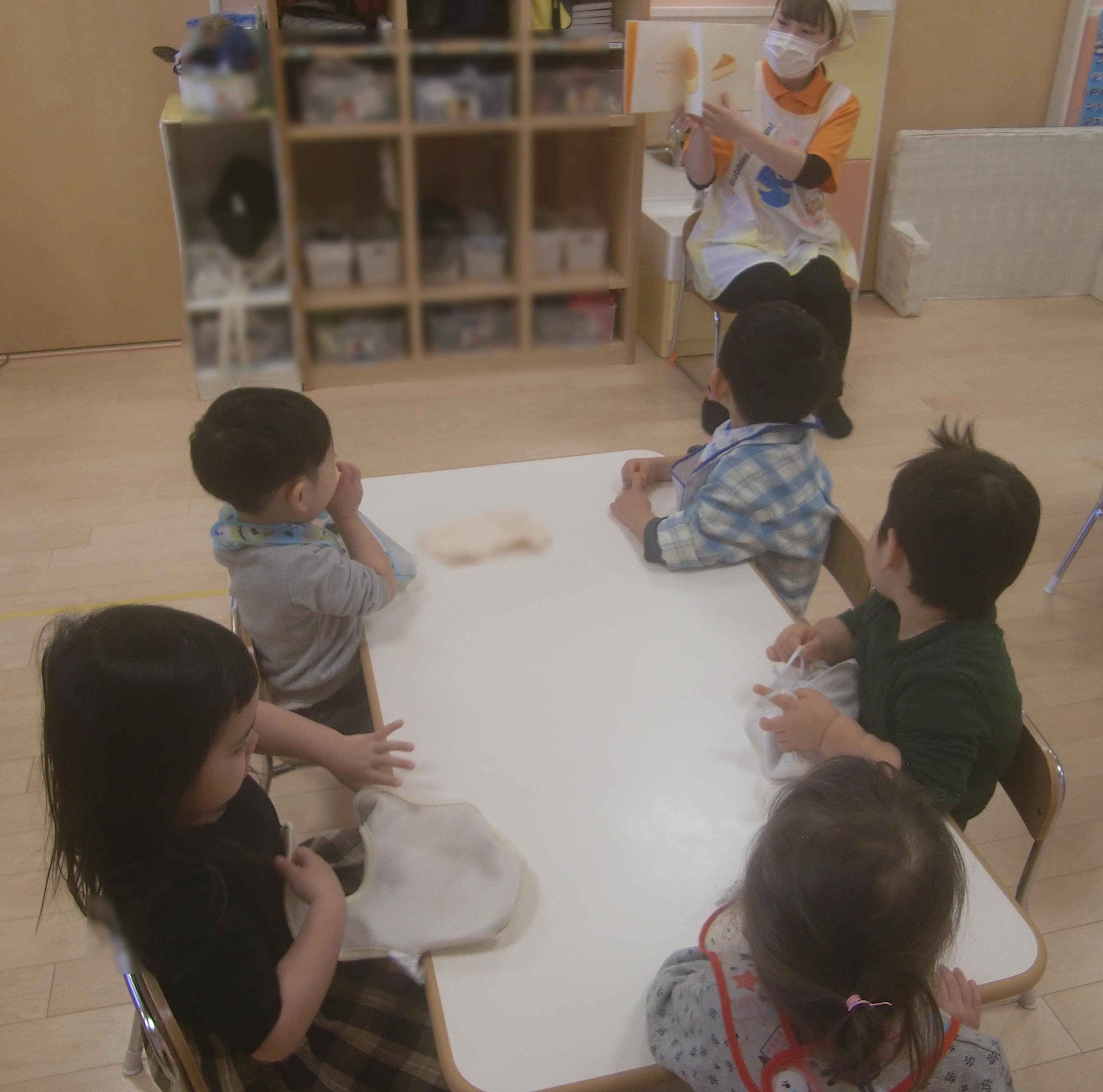「ひときれあーん」という絵本の中の言葉があるのですが、子どもたちは手を伸ばして