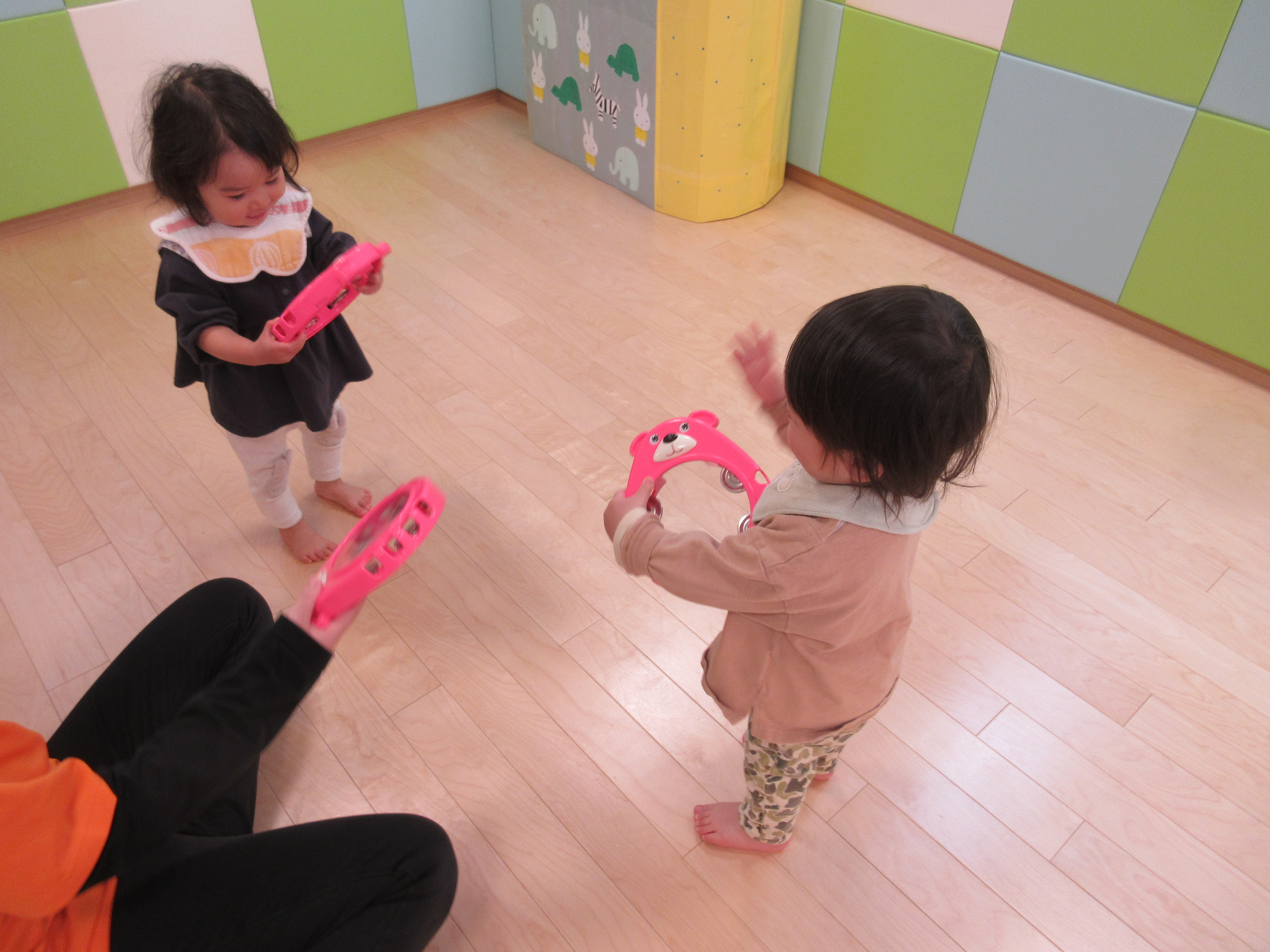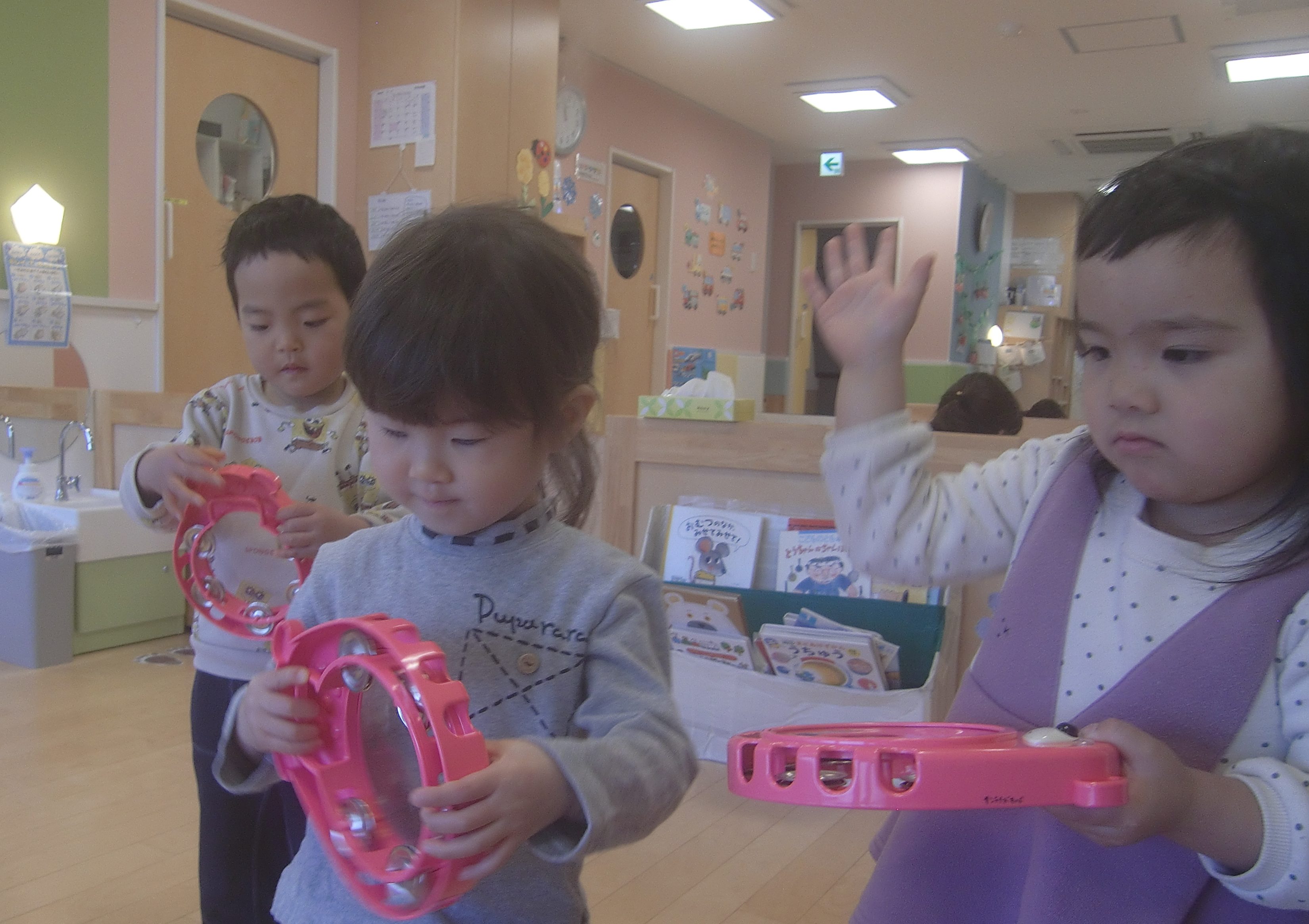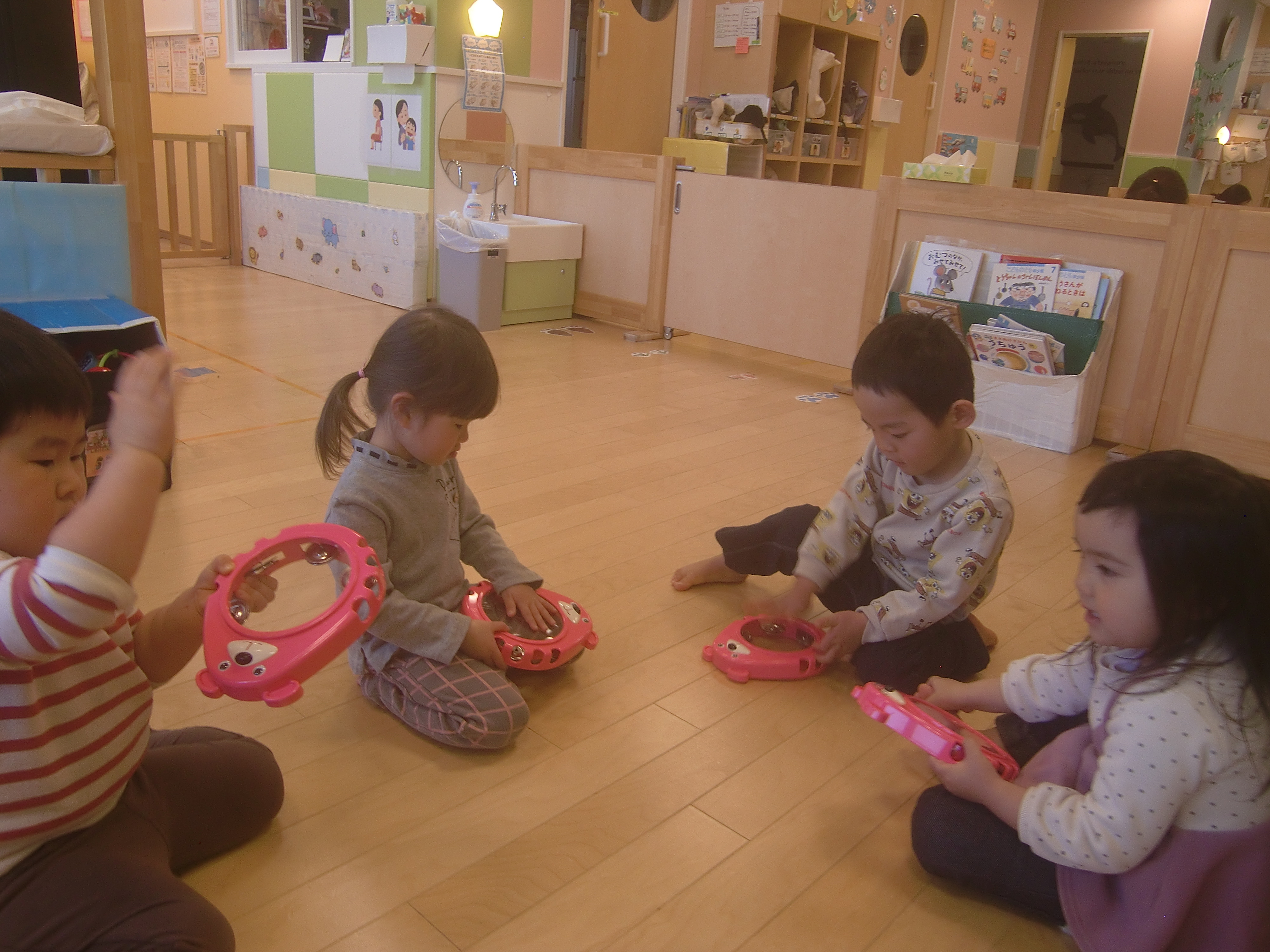 『大きなたいこ』の時は、床にタンバリンを置いて太鼓のようにして叩いていましたよ![]()