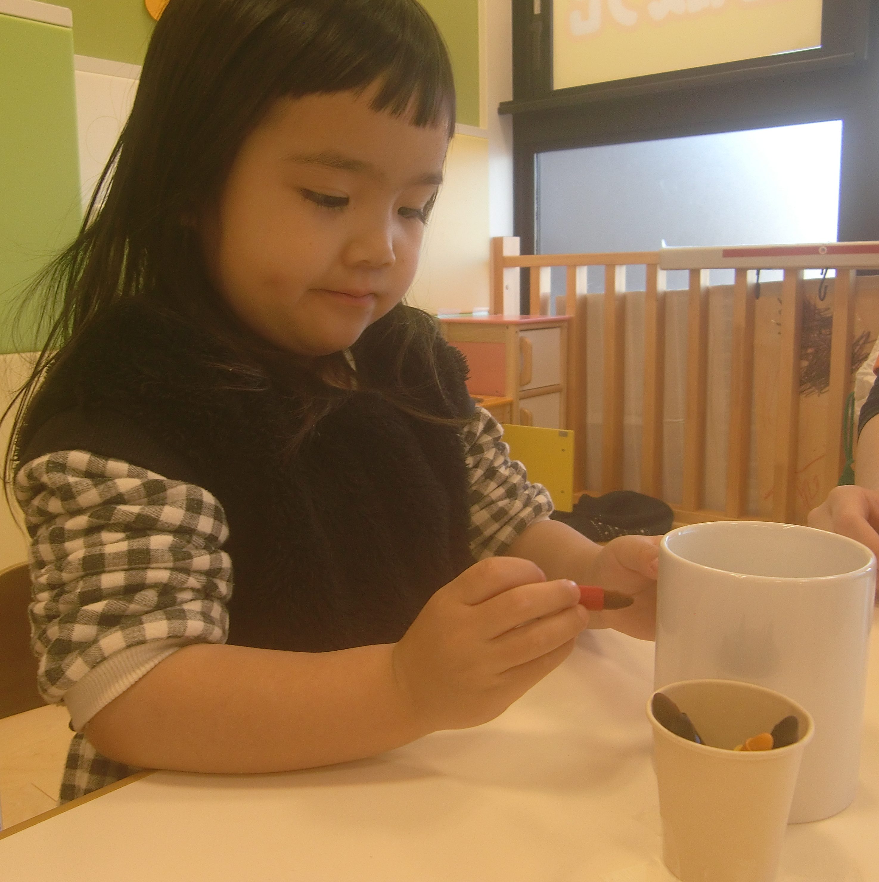 始めにコップを見せると、「何をするんだろう?」と不思議そうです。