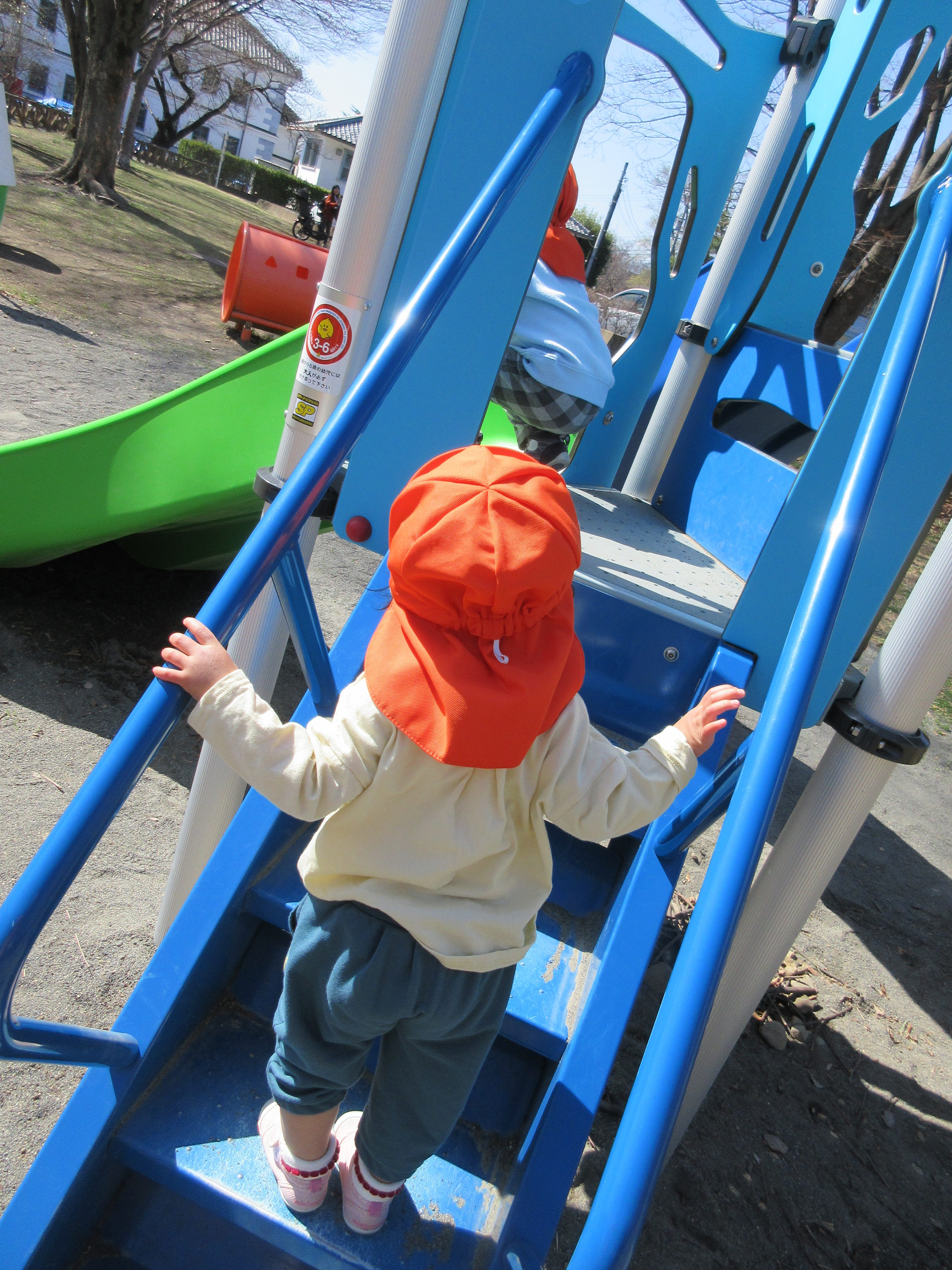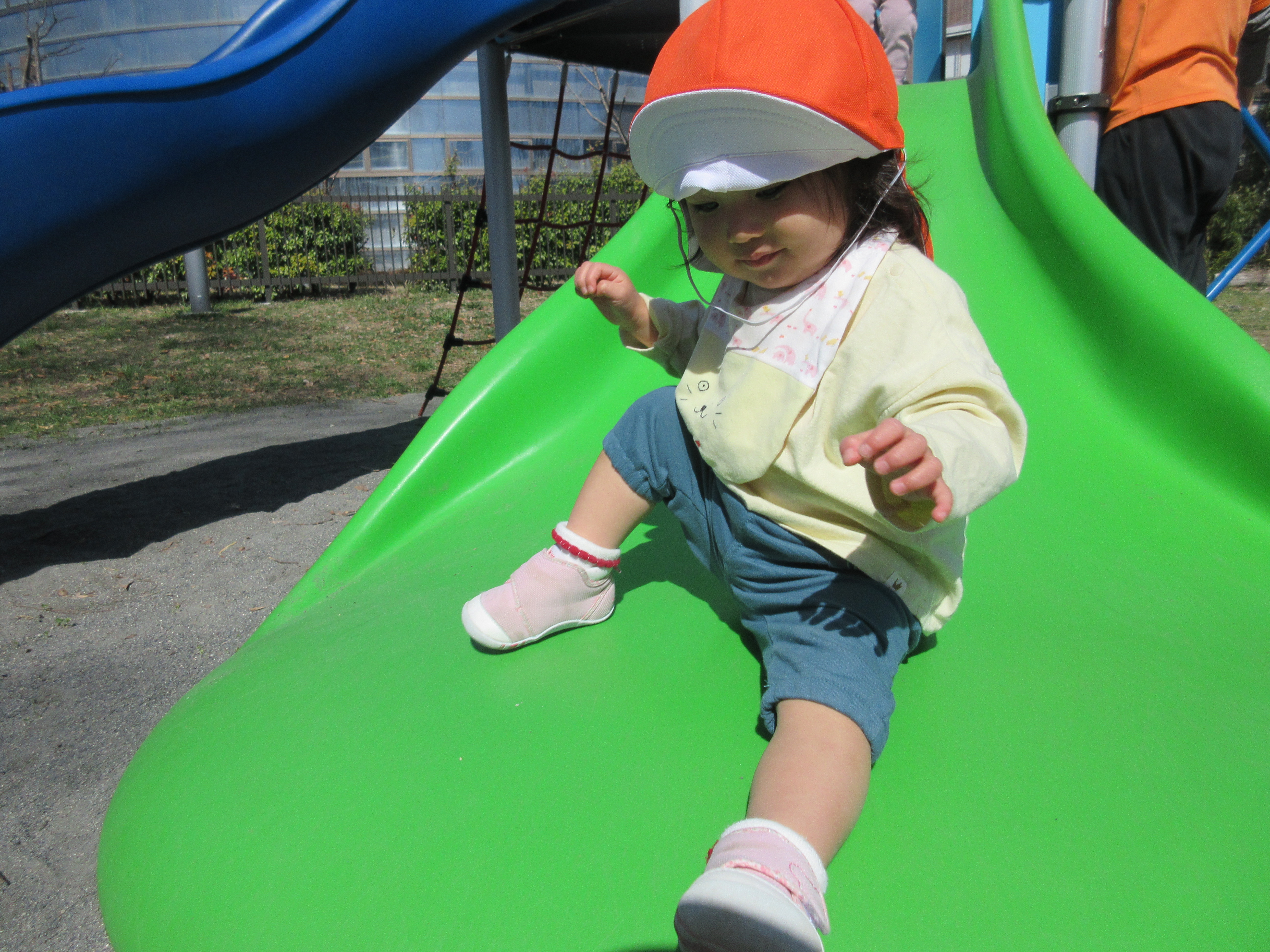 ⇩中央図書館の隣の広場では小さなすべり台も楽しみました![]()