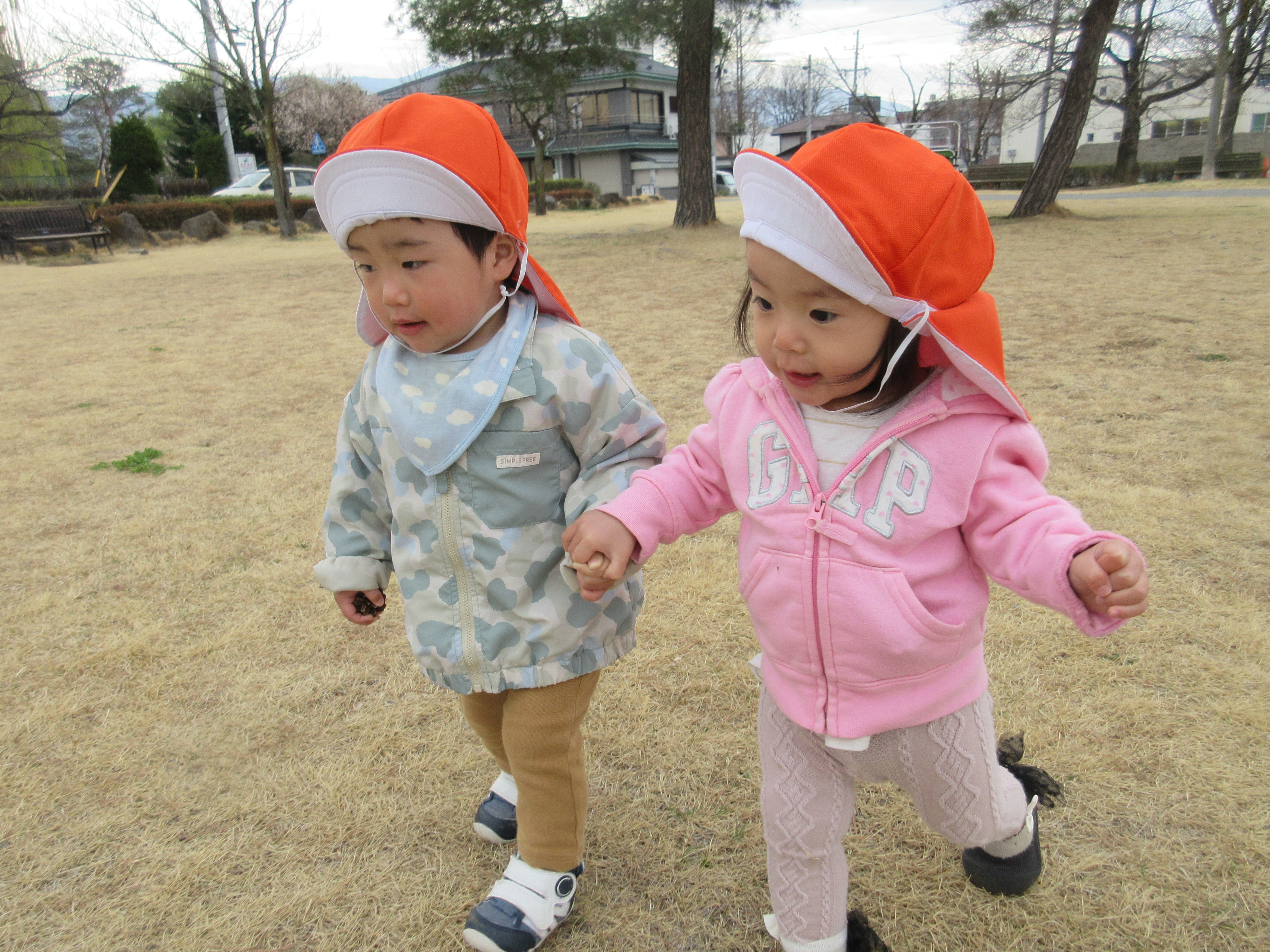 また、最近お友だちと手を繋いで歩くのを楽しむ姿も見られます。