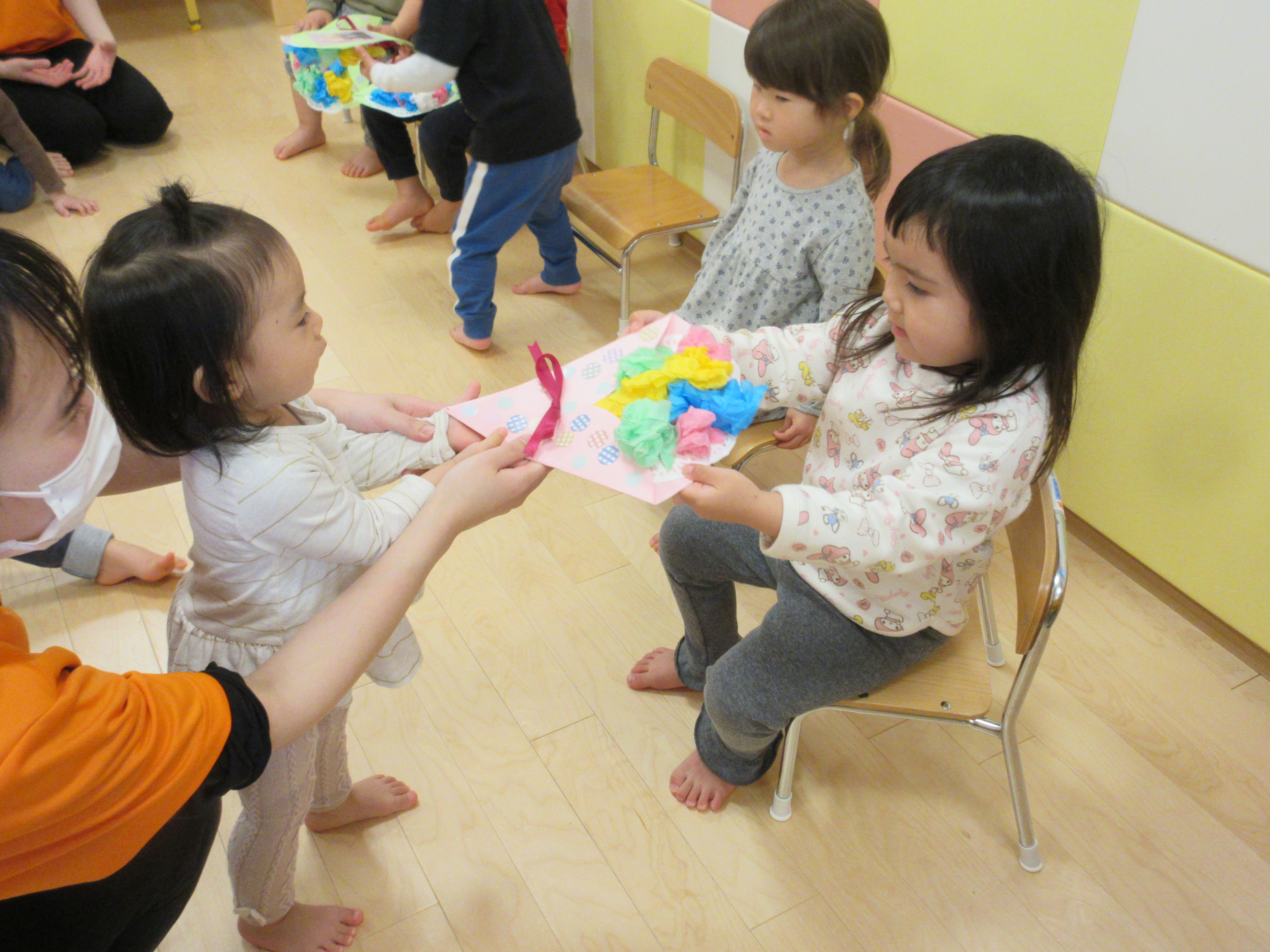会の途中にはももぐみさん・りんごぐみさんからプレゼント![]()