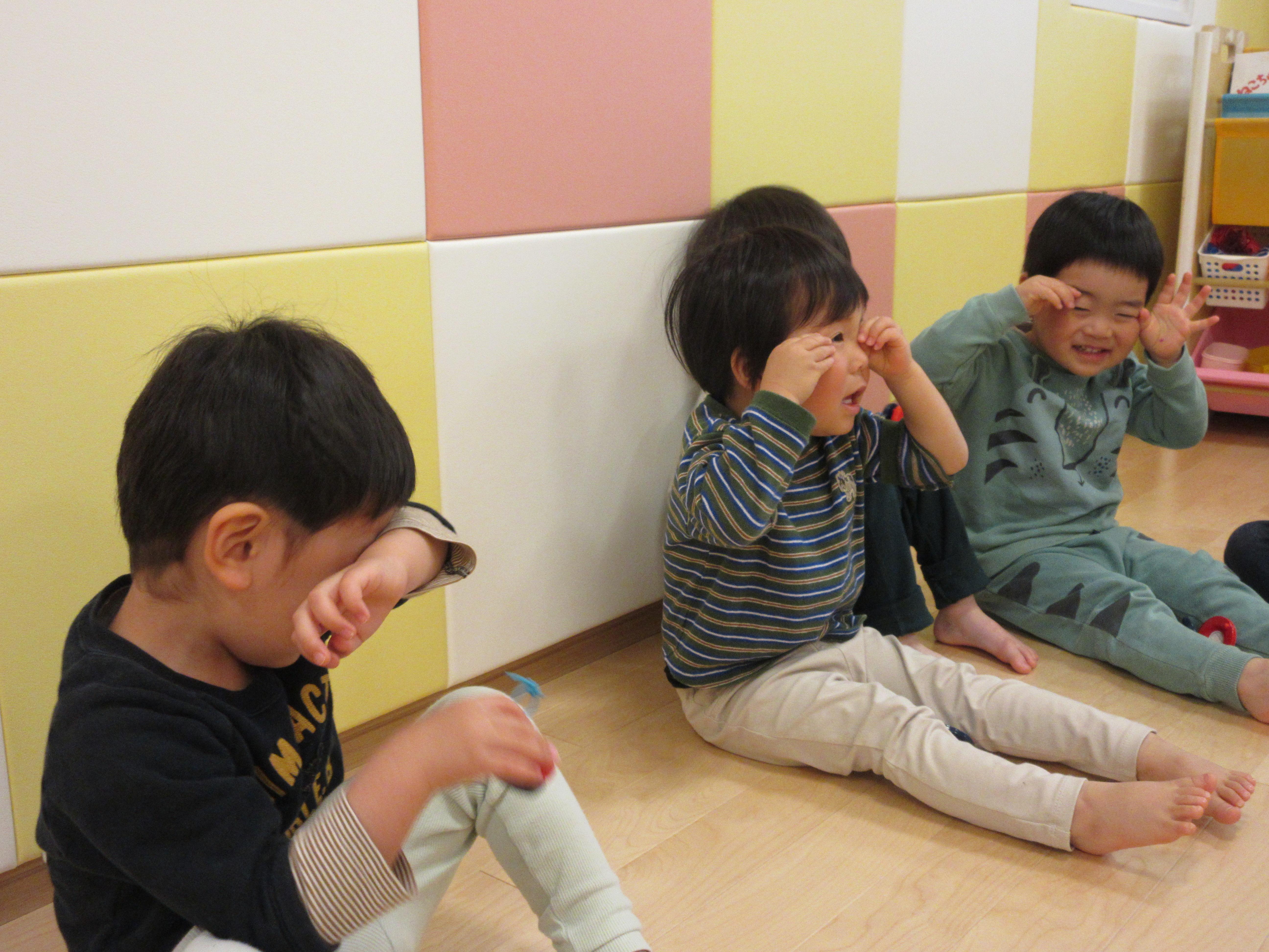 金曜日のカリキュラムのリトミックで「手をたたきましょう」を行ないました。