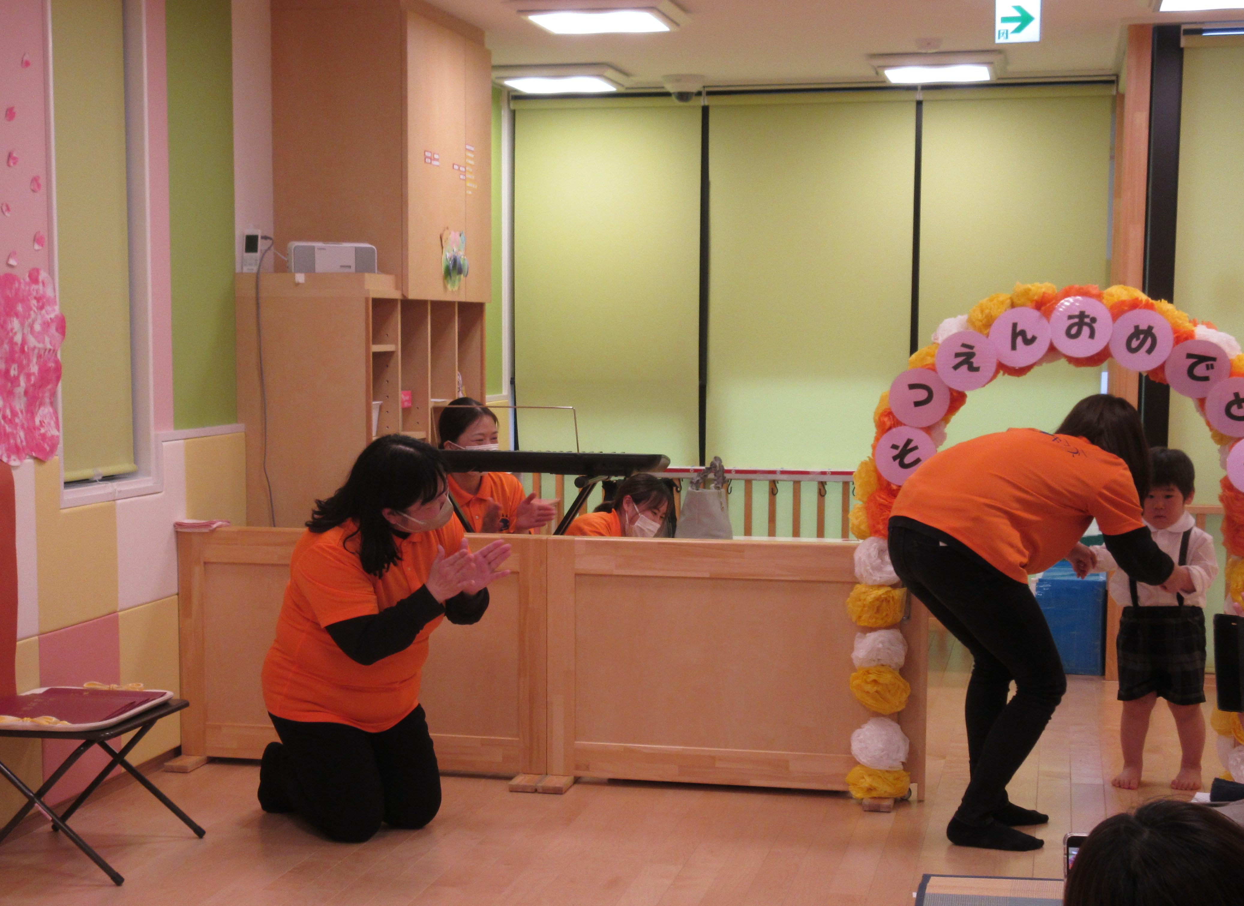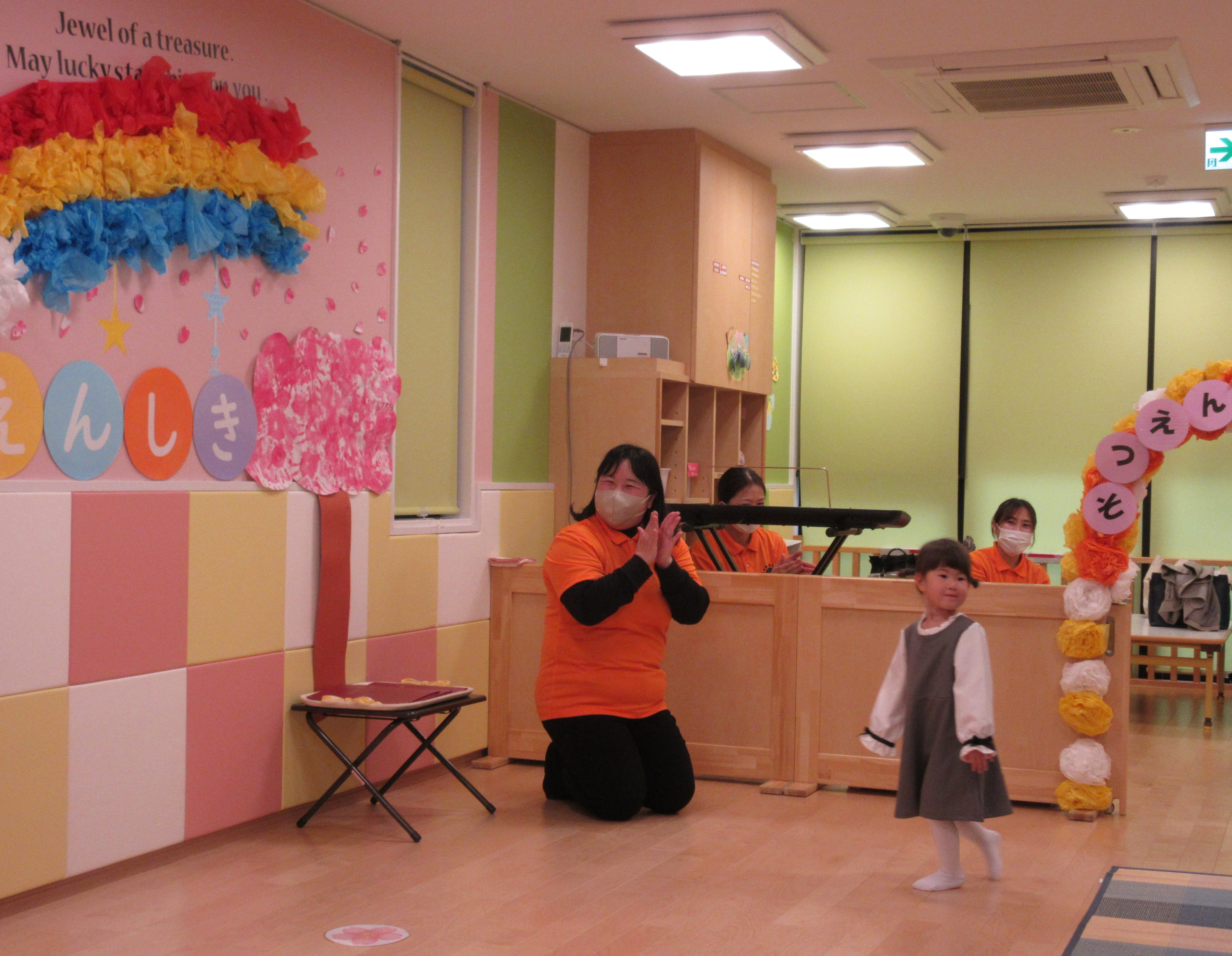 いつもとは違った雰囲気と、おめかししたりんごぐみさんたち。