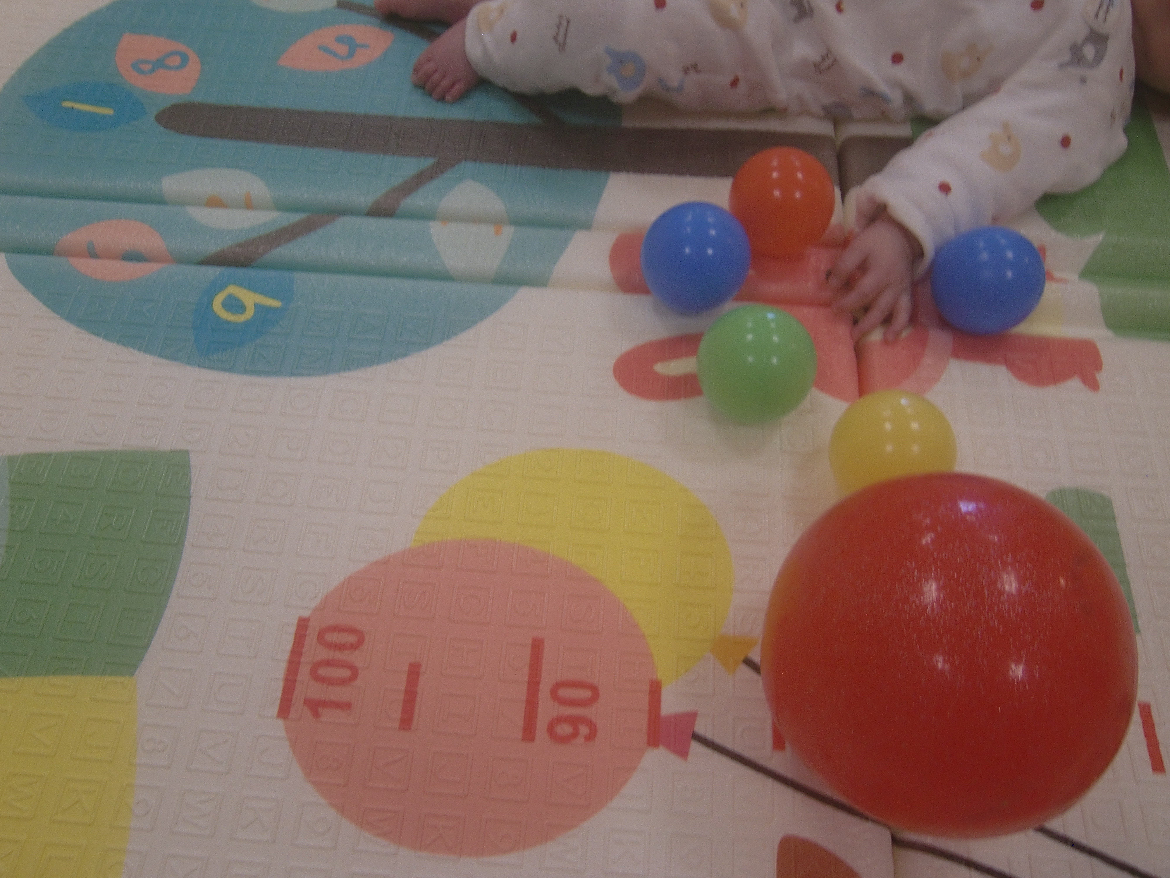 0歳児:ボール転がし、マット回転