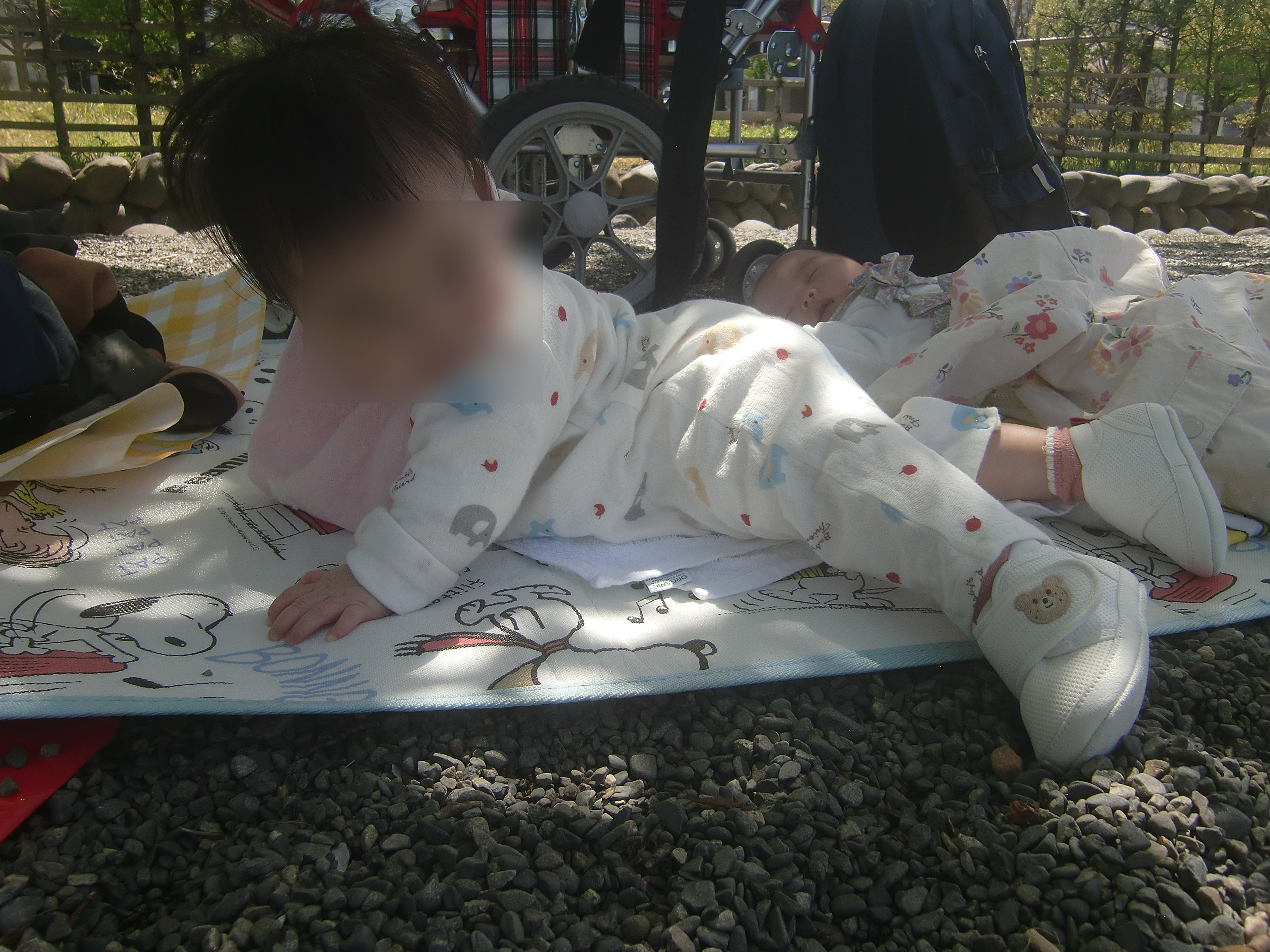 ↓上手に寝返りをし石があることに気が付くと、くるくると方向転換して足で石を触ったりする子もいました![]()