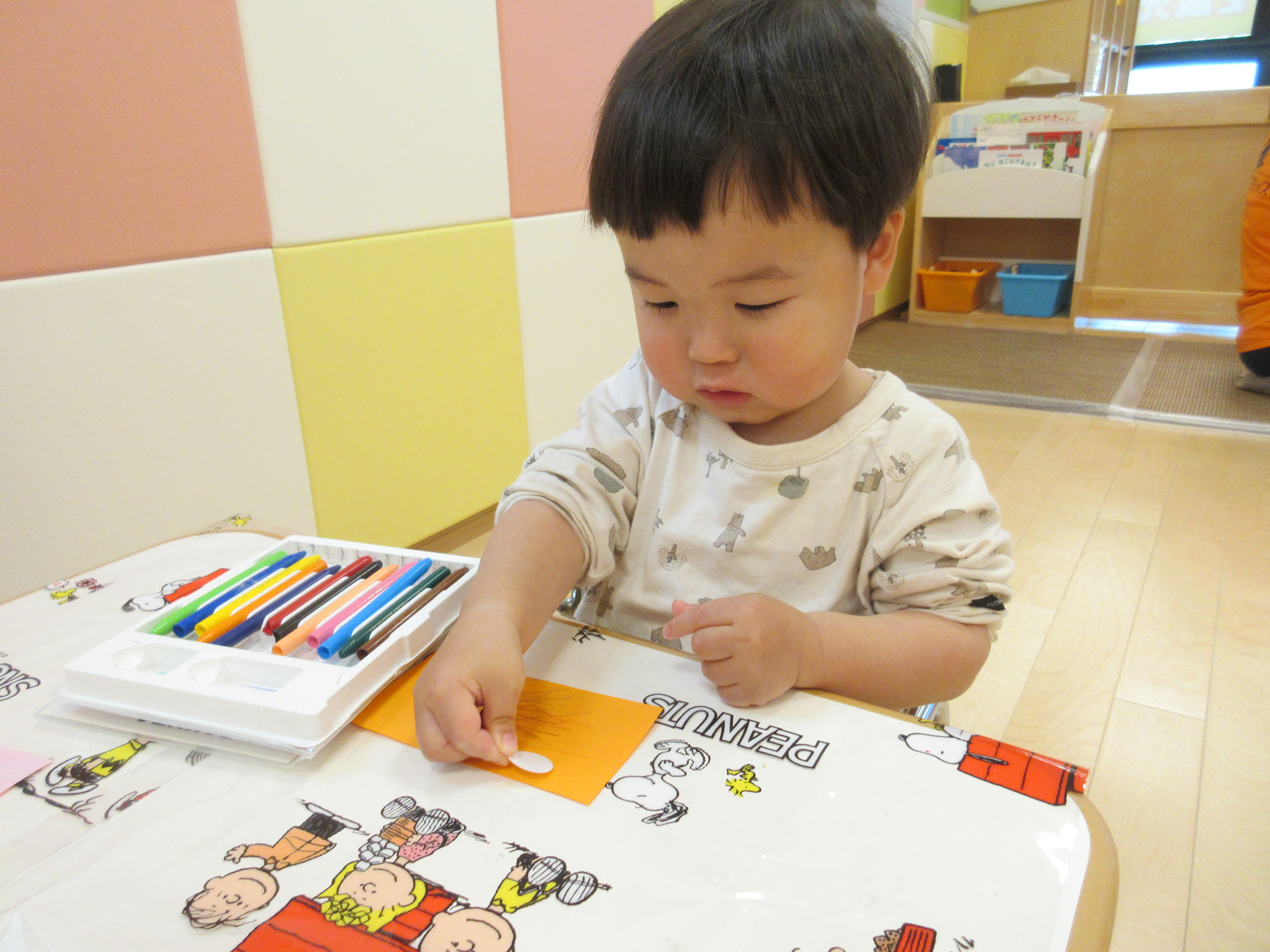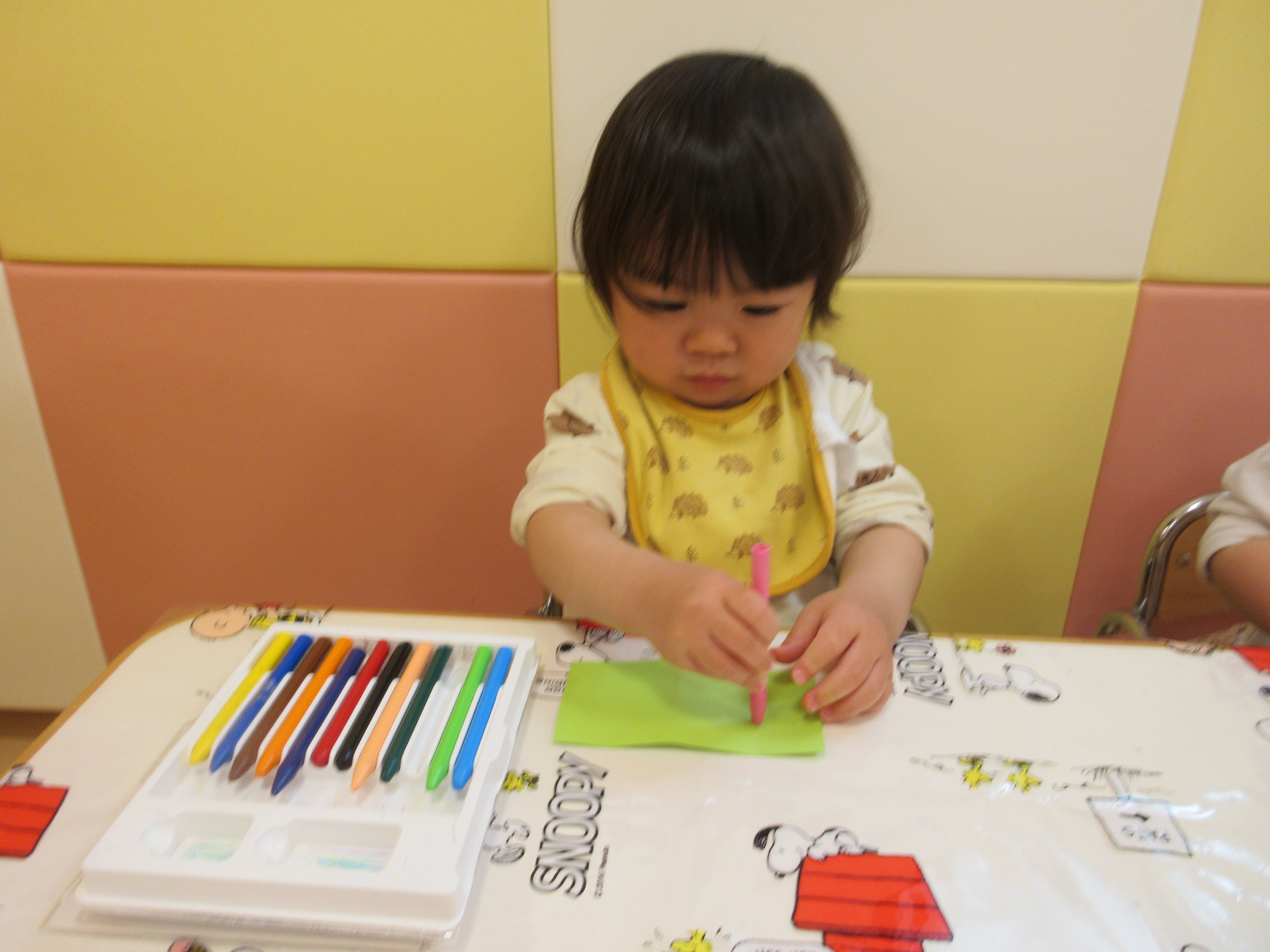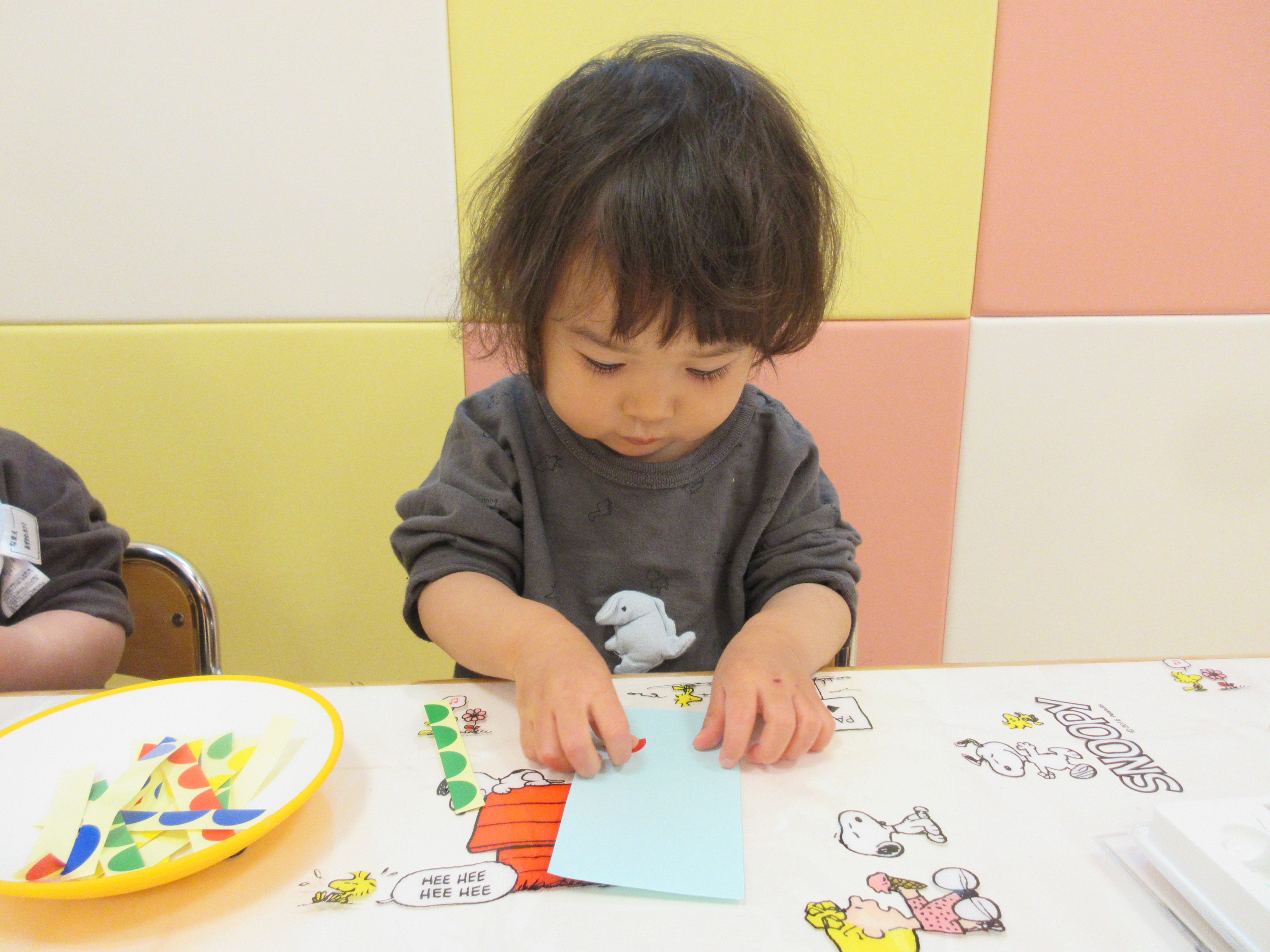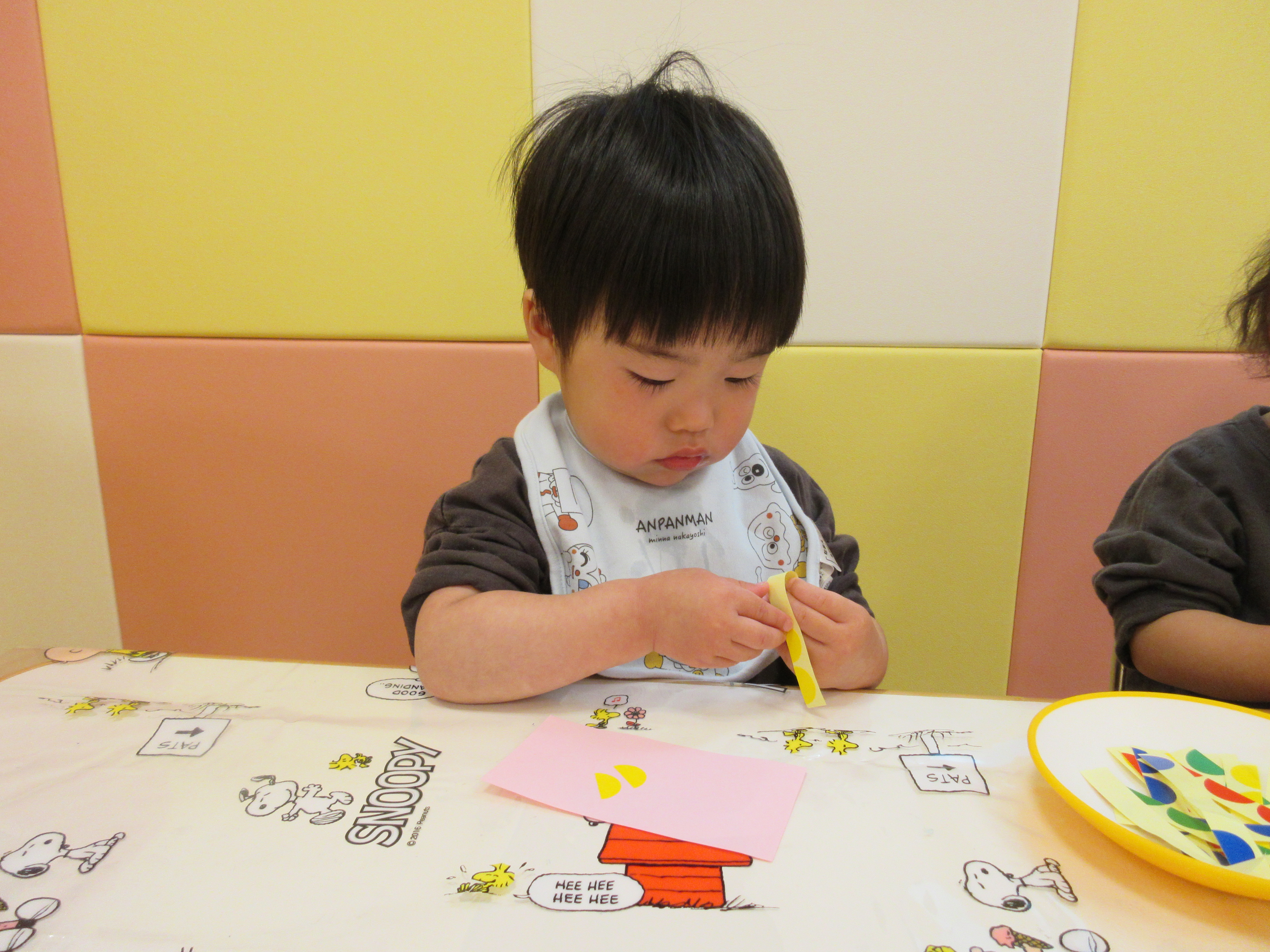 「こいのぼり作ろうね」と声をかけると「うん!」と返事をしてくれたり「さかな」と言う子もいましたよ![]()