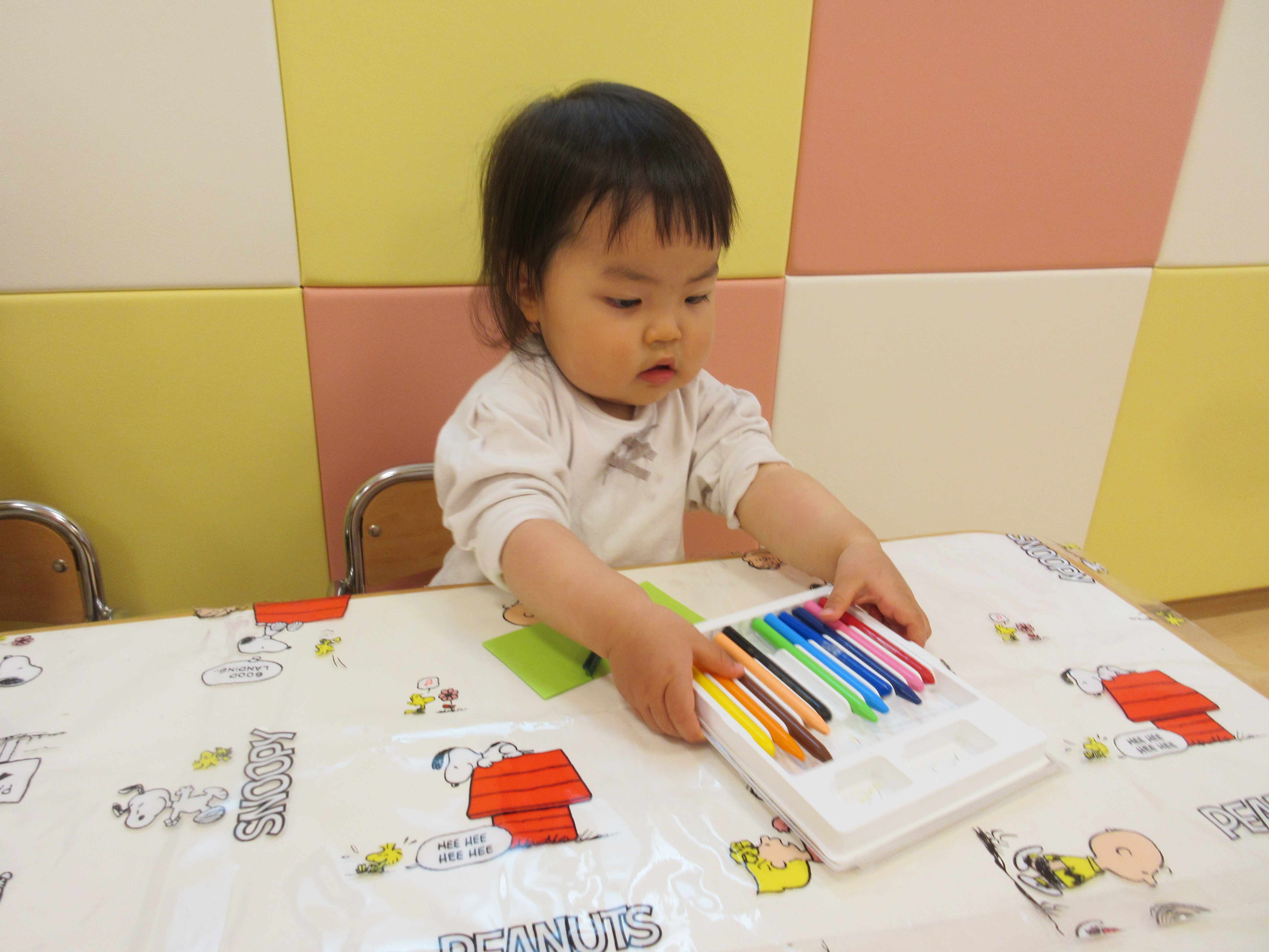 ⇩「どれにしようかな~?」とじっくり悩んだ後に気に入った画用紙に手を伸ばしていました。