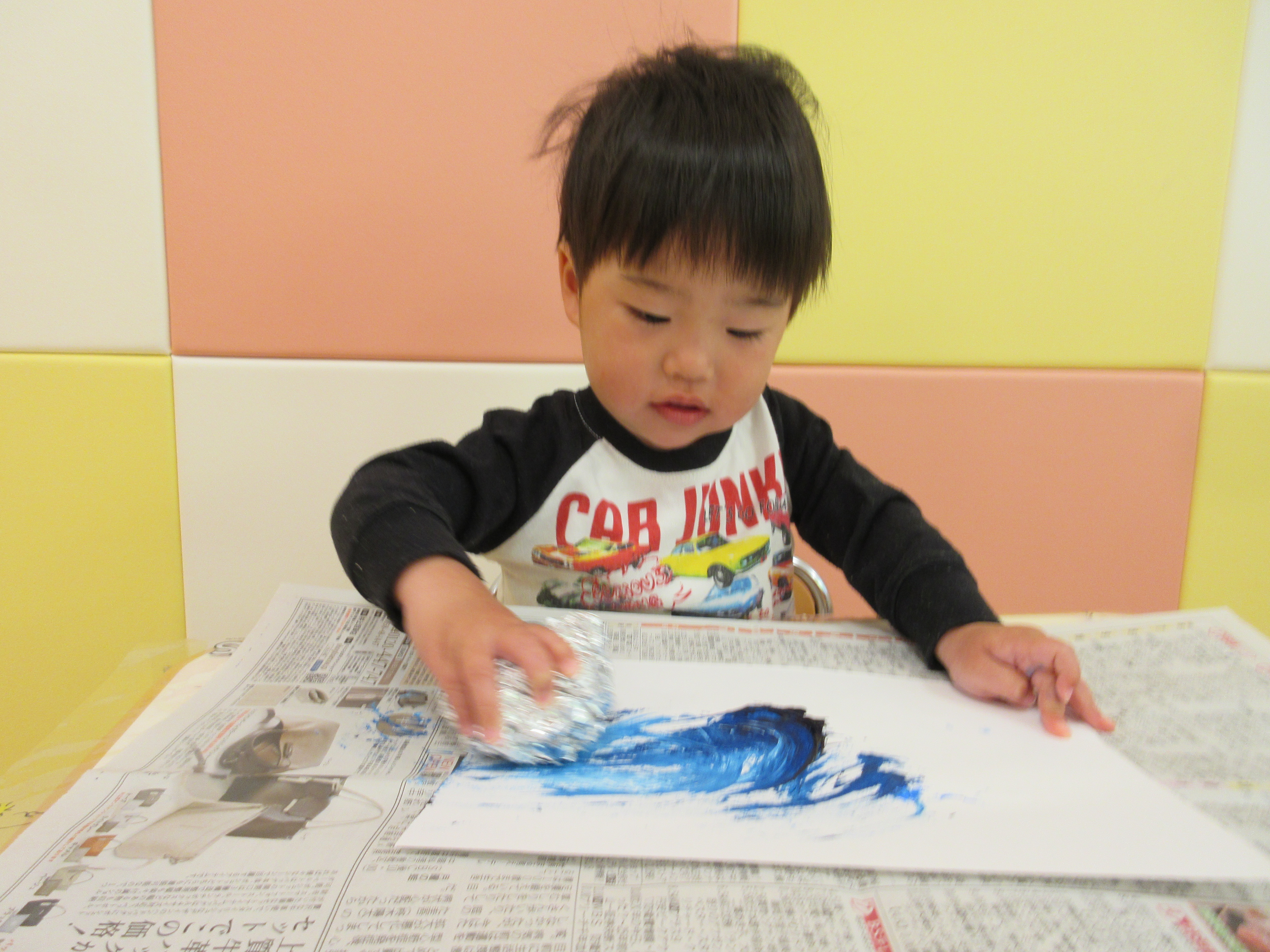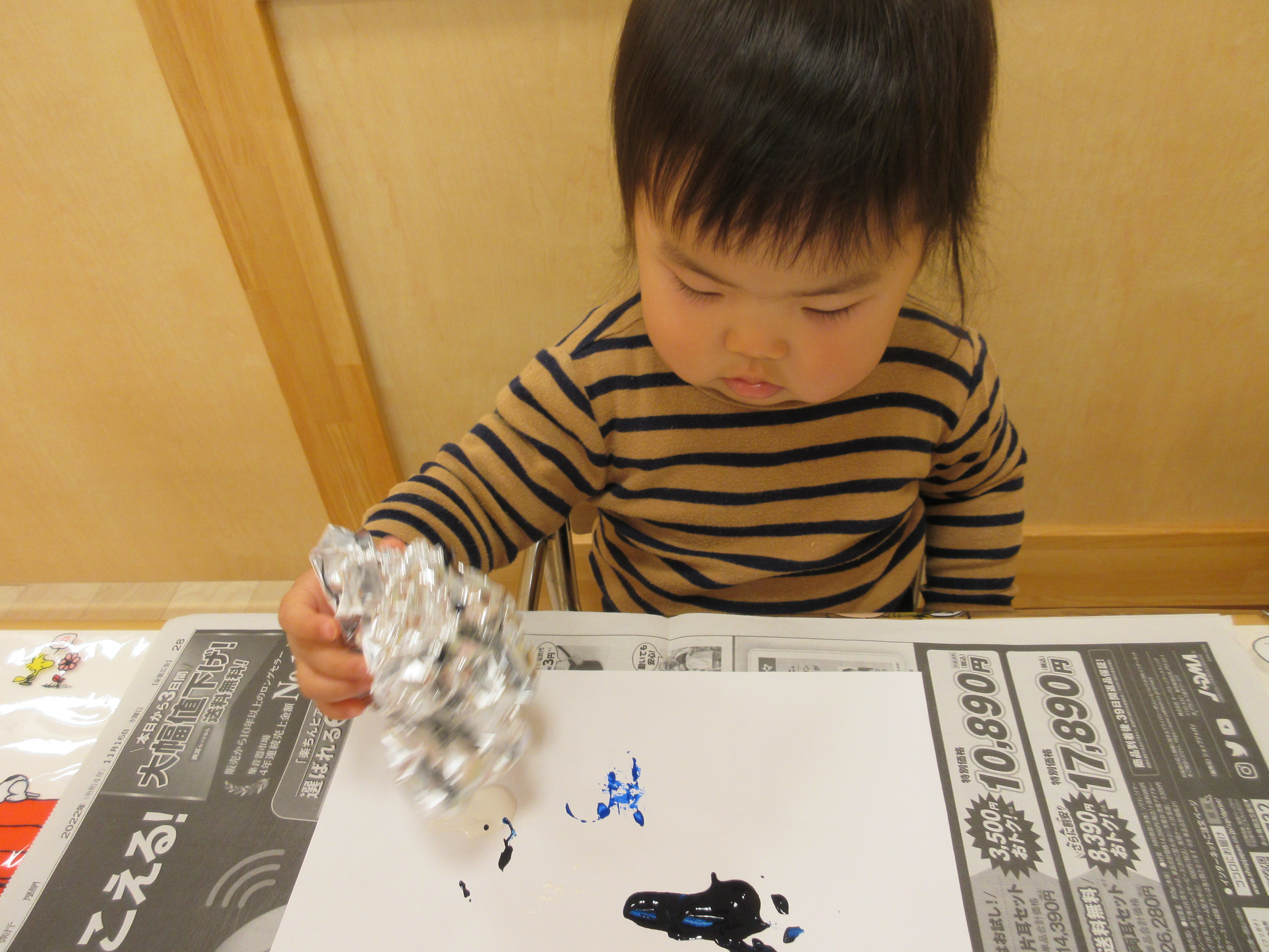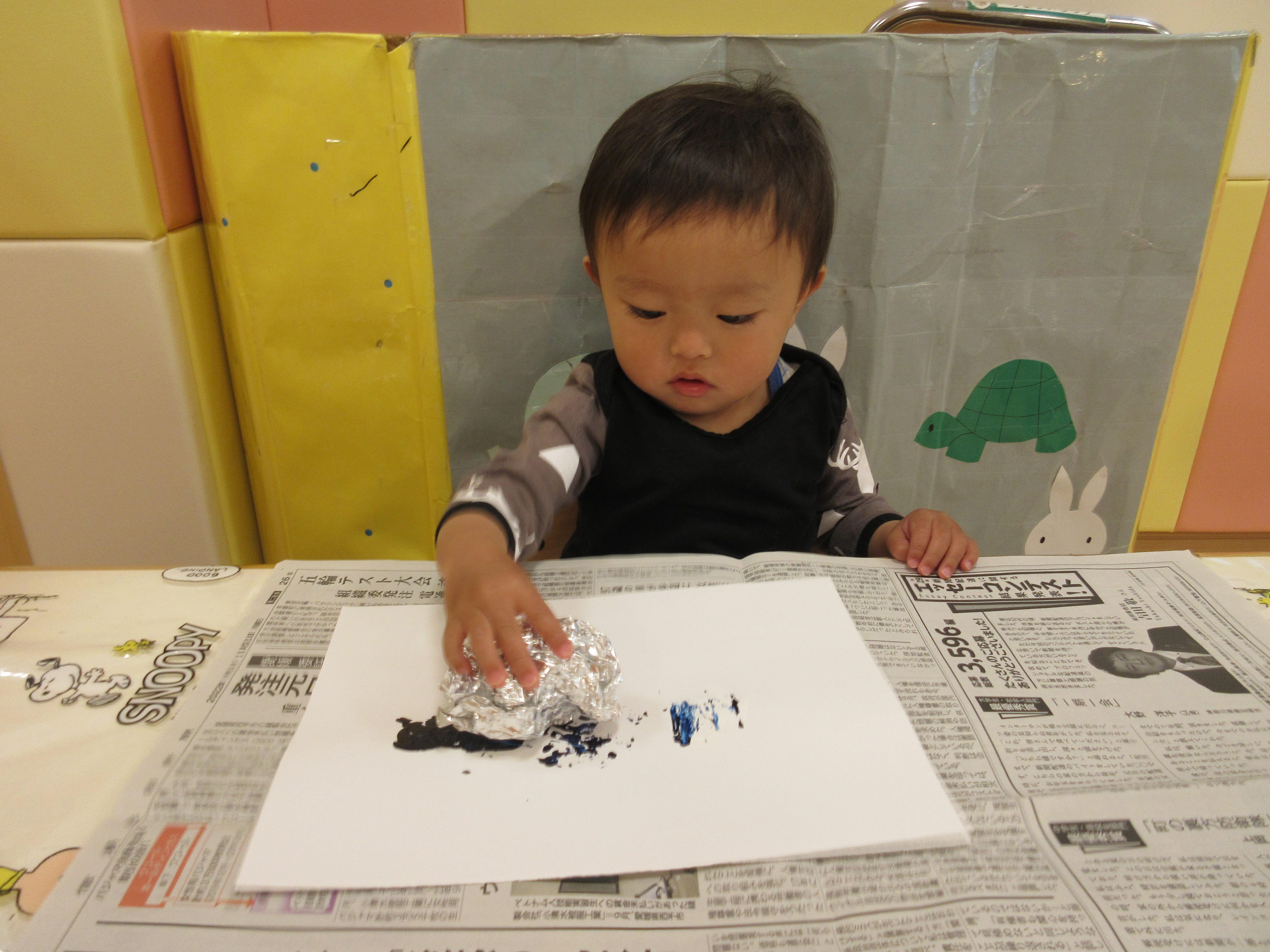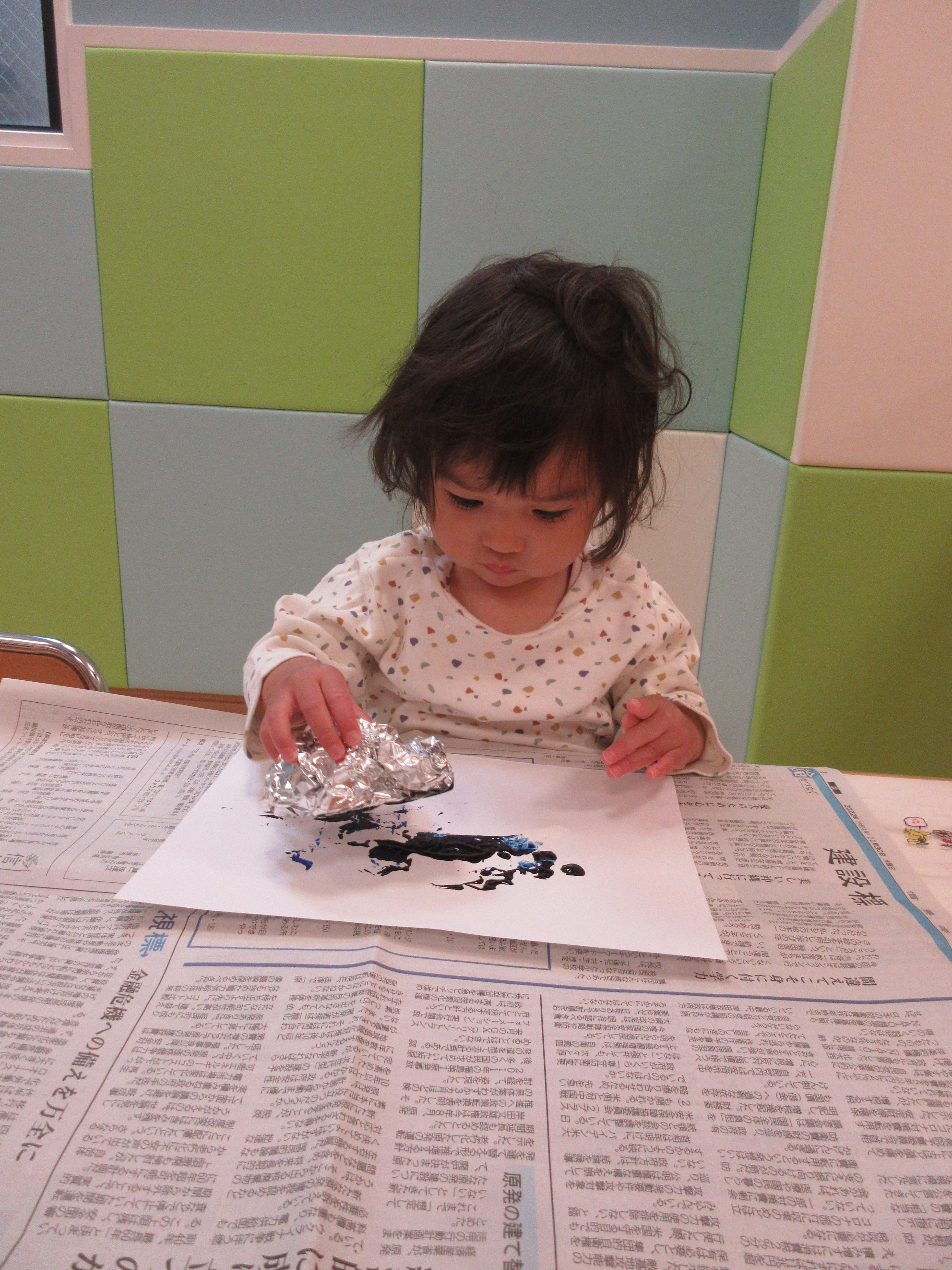 ⇩ダイナミックにアルミホイルをすべらせる子もいて、それぞれの個性が出ています。