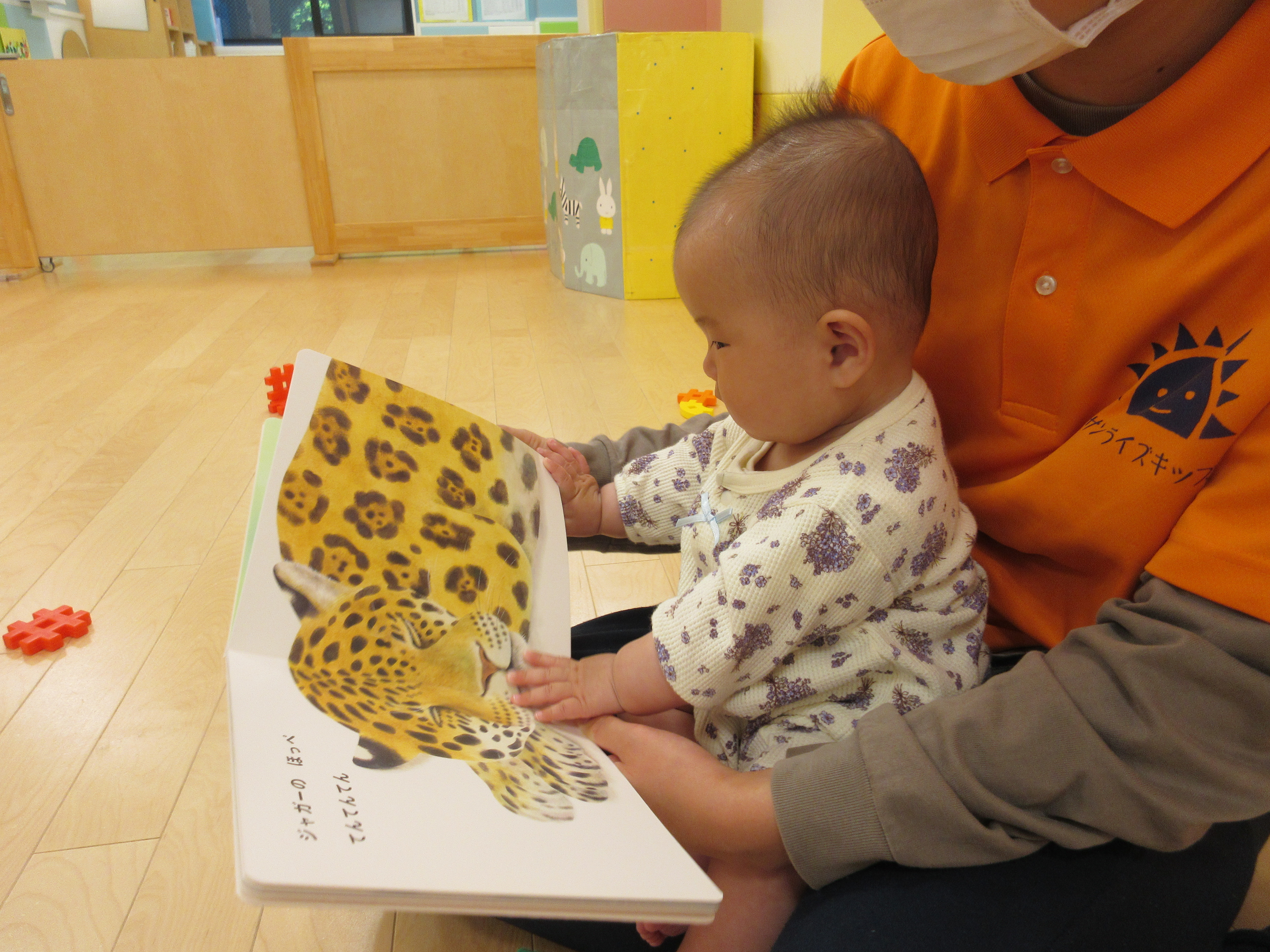 読み始めると、じっと見つめたり絵を触っている姿があります![]()