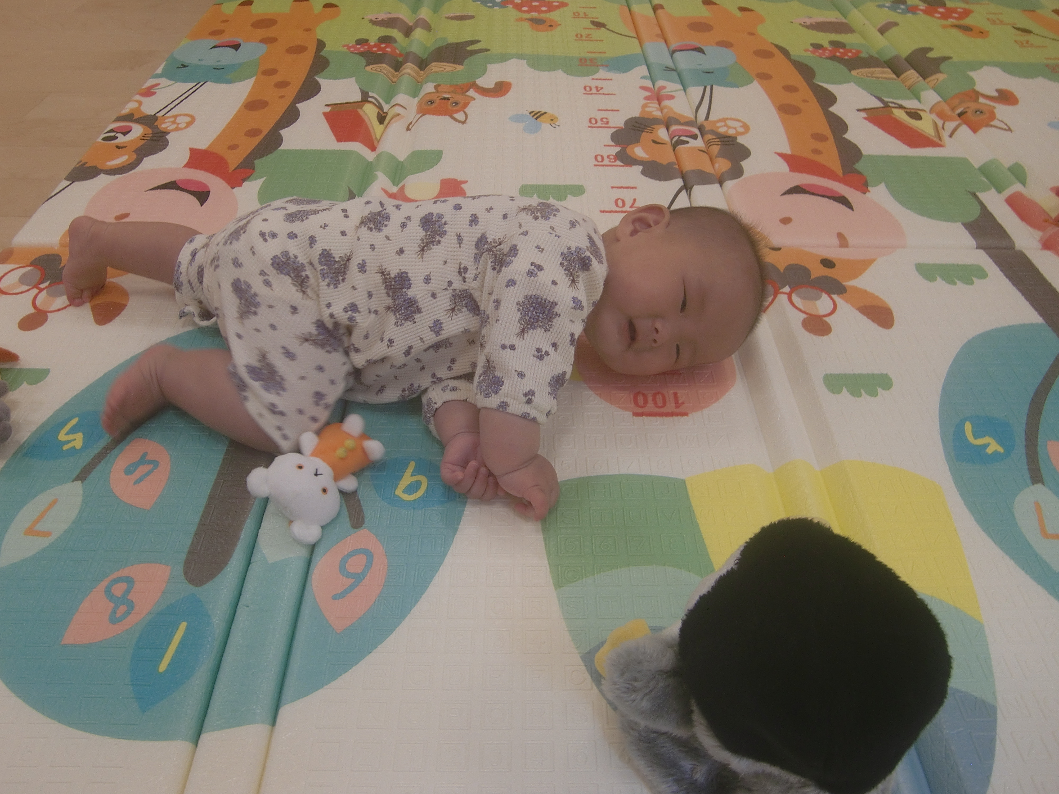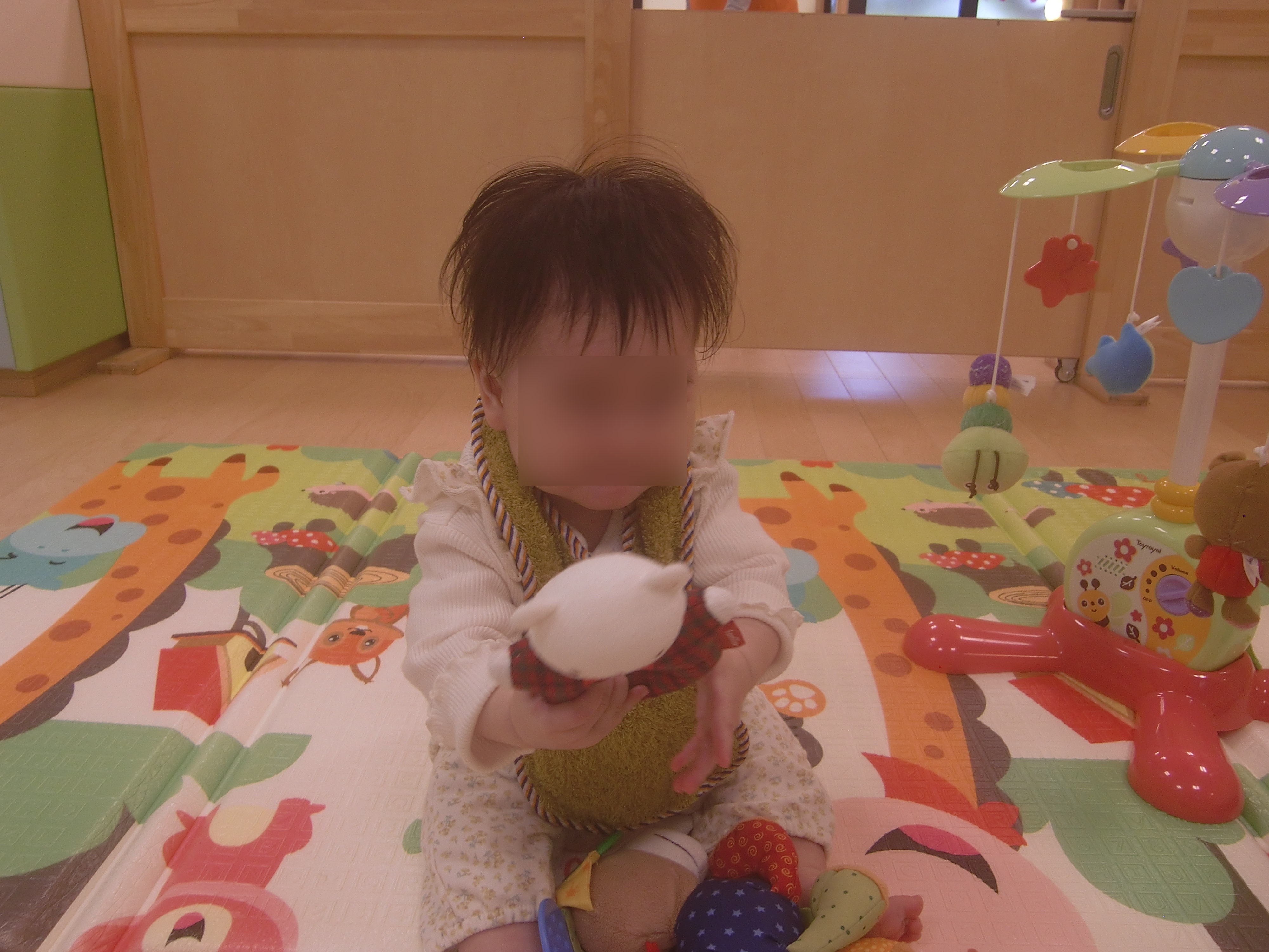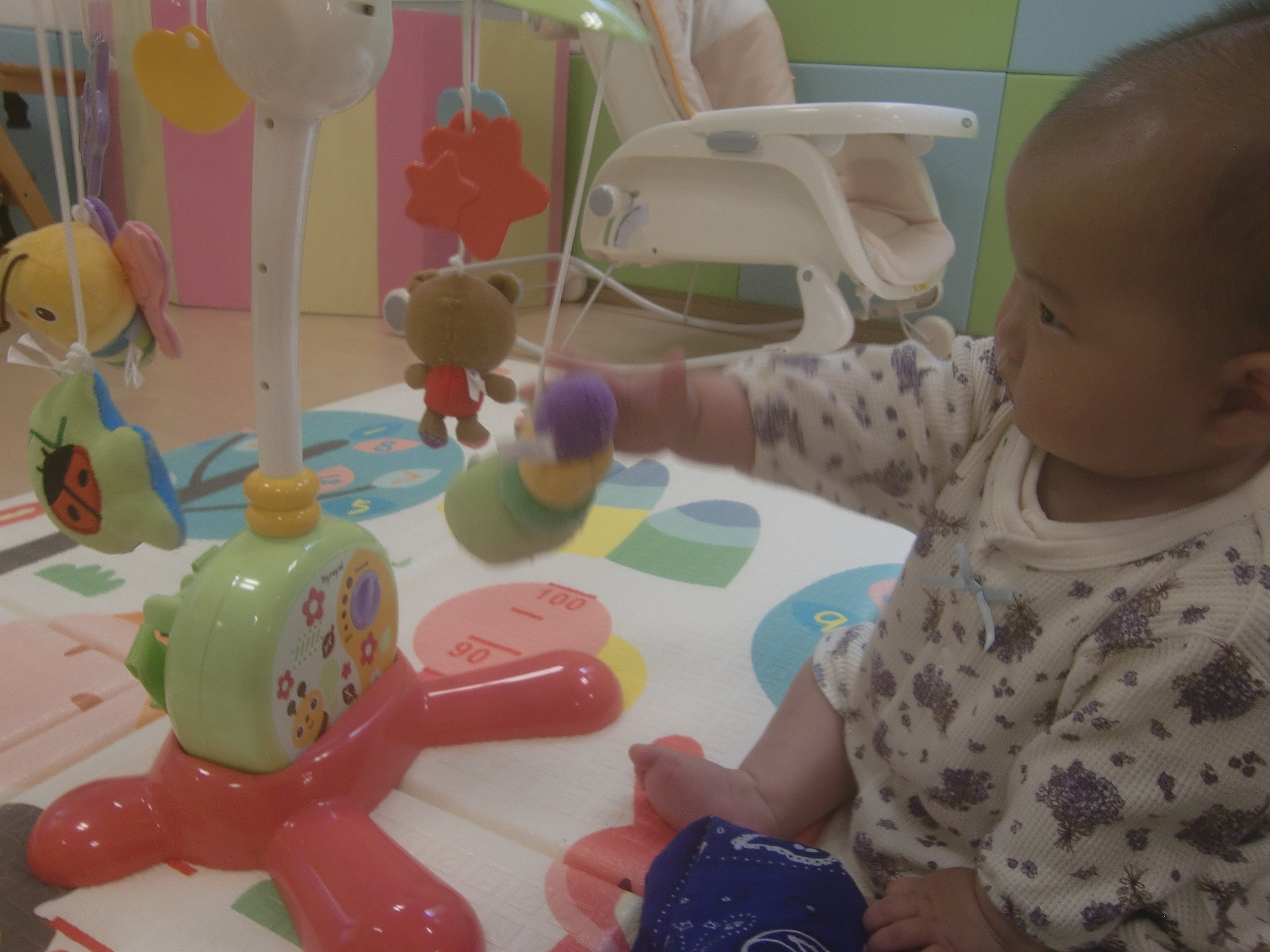 気になるおもちゃに手を伸ばして夢中で遊んでいます![]()