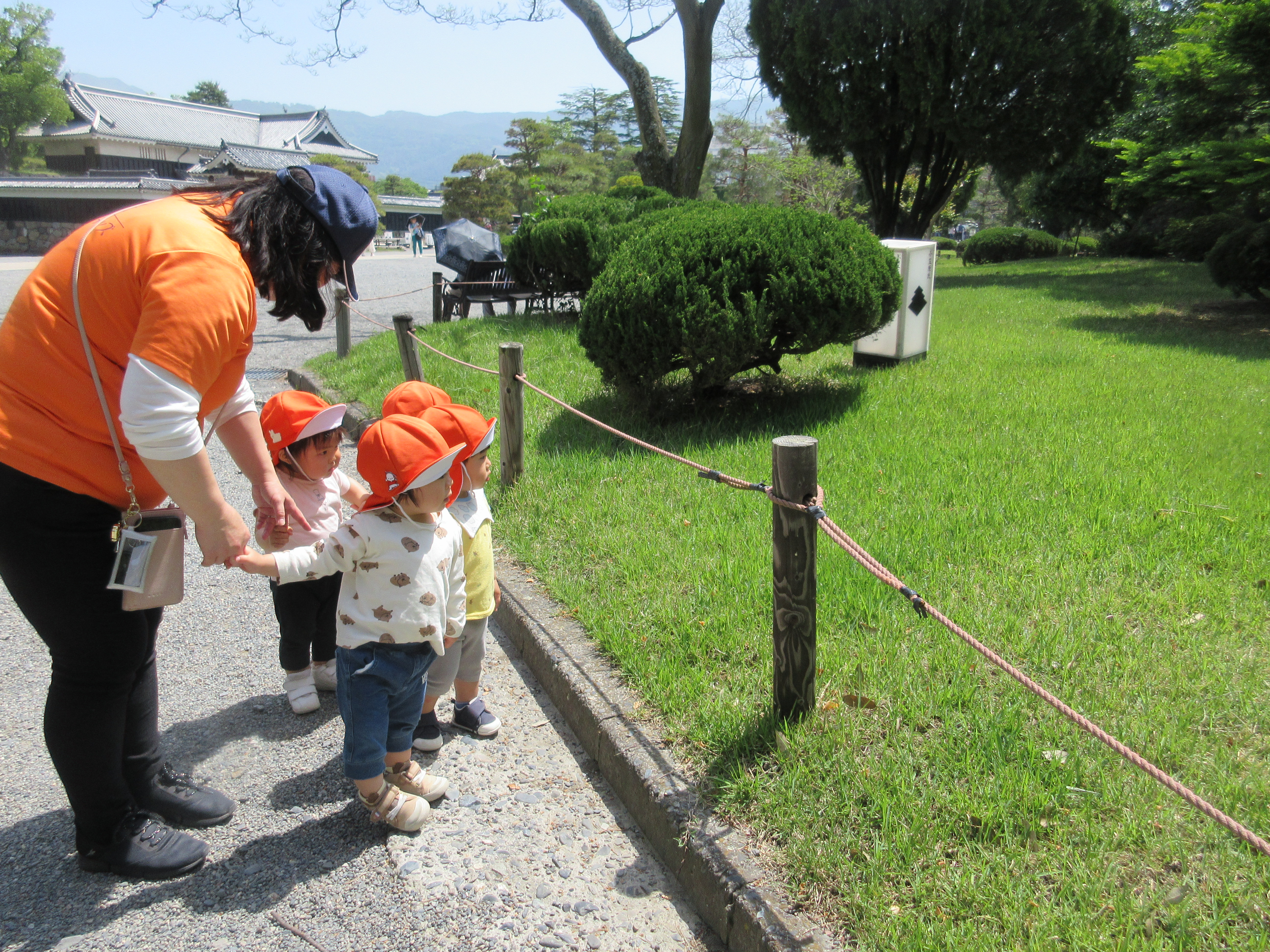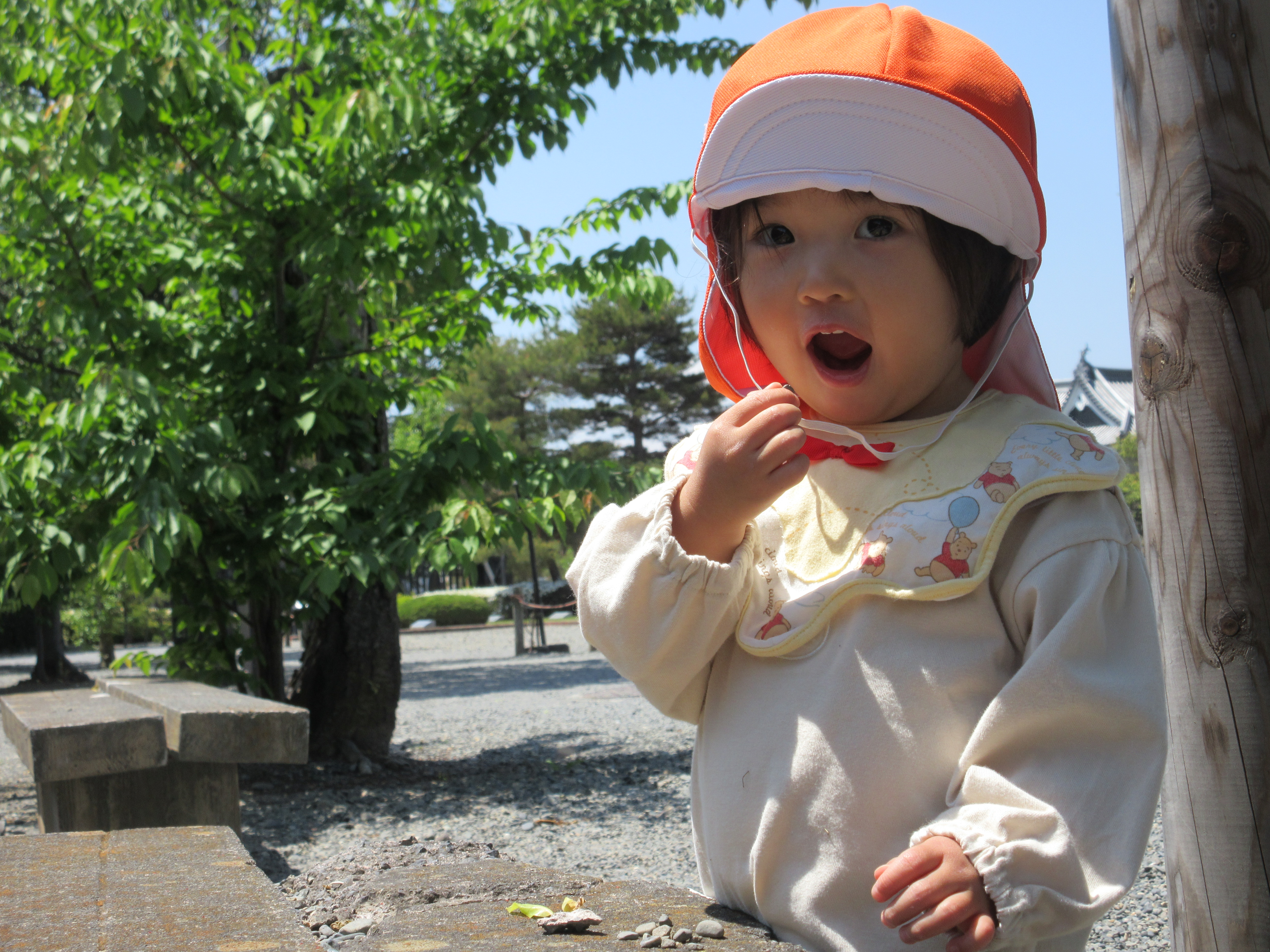二ノ丸御殿跡に行った際は、先生との追いかけっこで「わ~!!」と楽しそうに走っています![]()
