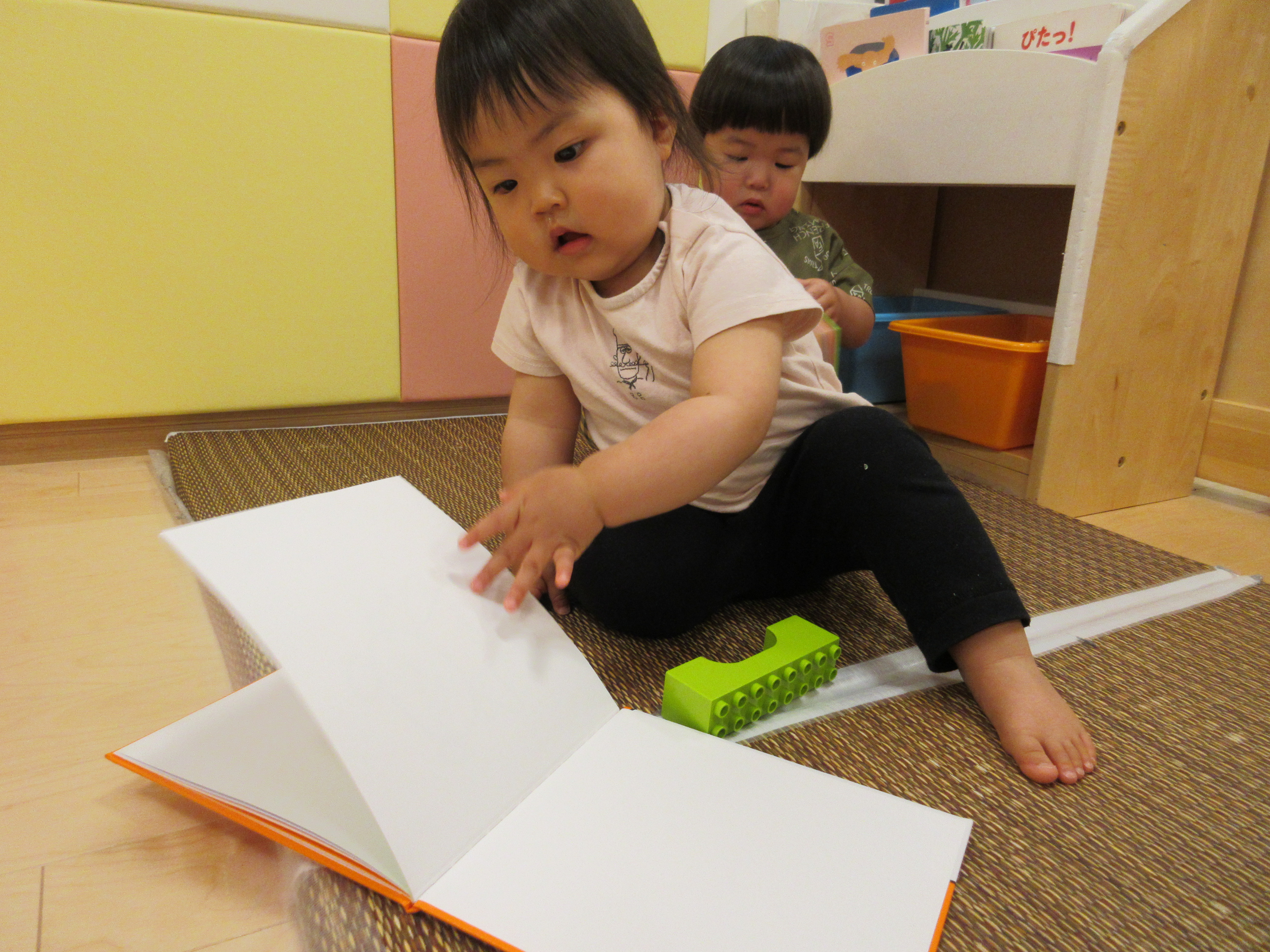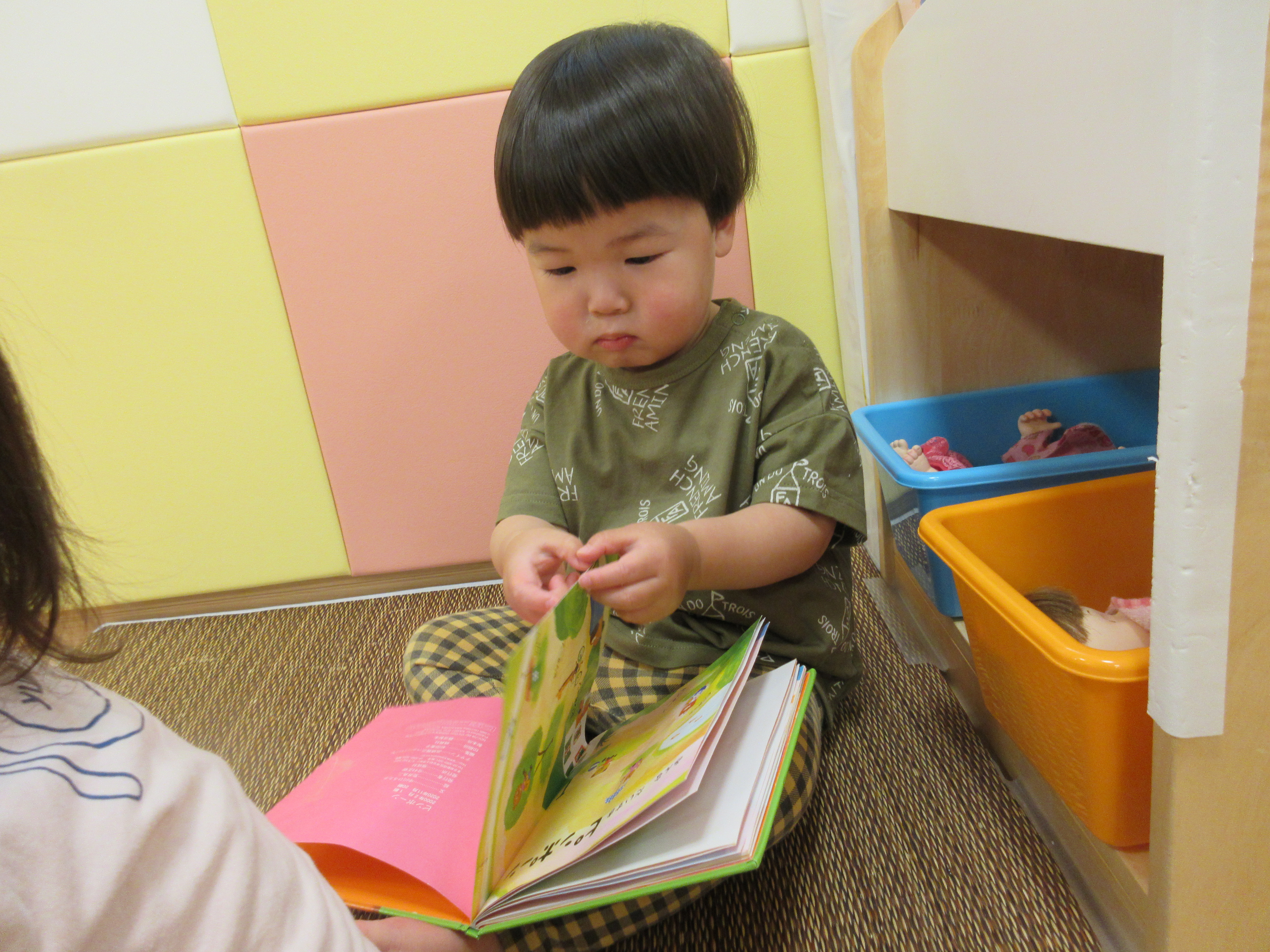 まずは、お部屋で好きな絵本を広げて読む子どもたちの様子です![]()