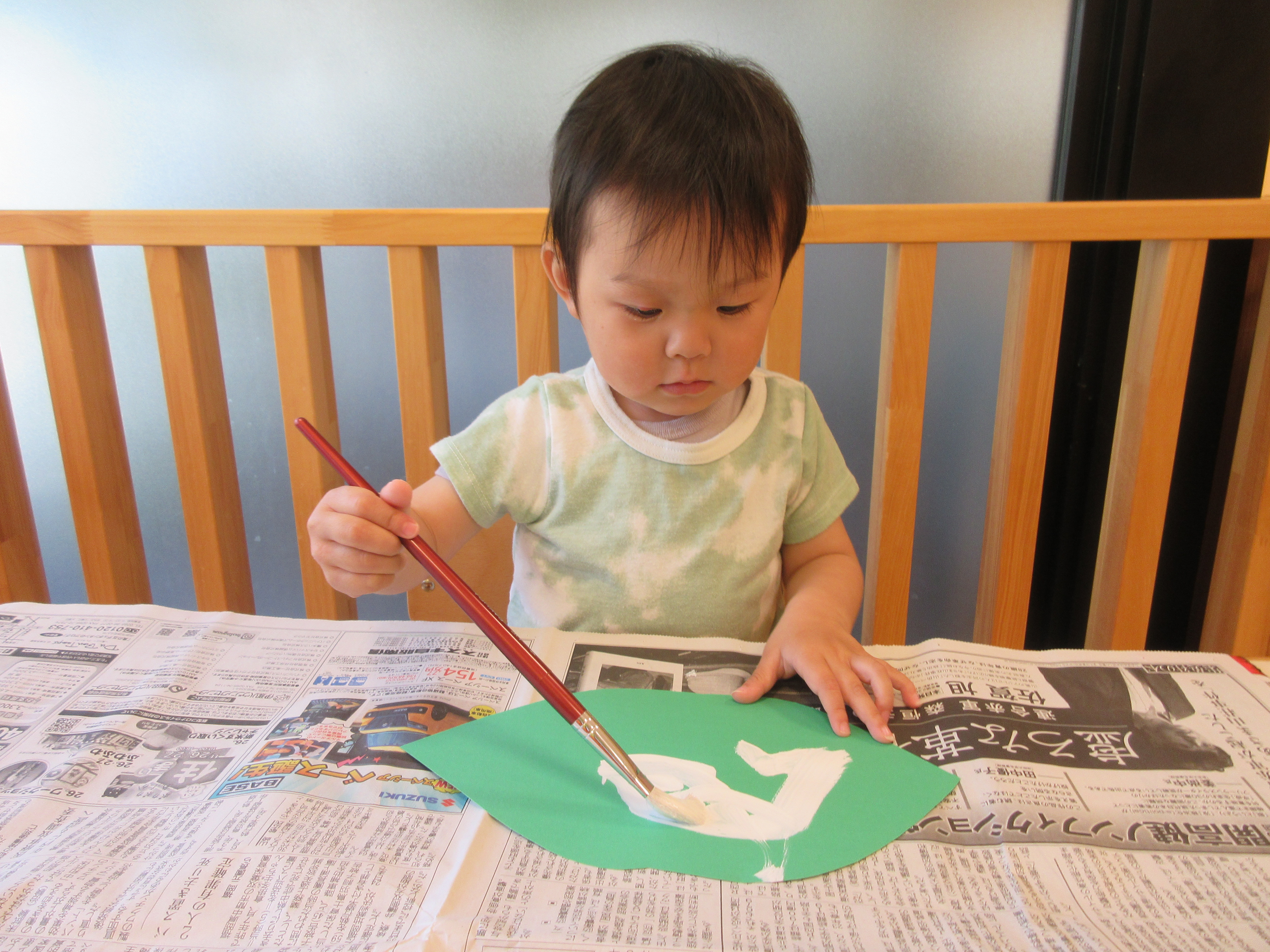 筆を使って絵の具を塗るのは久しぶりだったのですが、思い思いに色を塗っていましたよ!