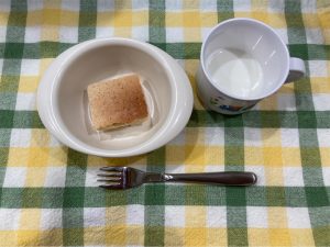 (写真は普通食になります。年齢によって盛り付け量を変えて、提供しています。)