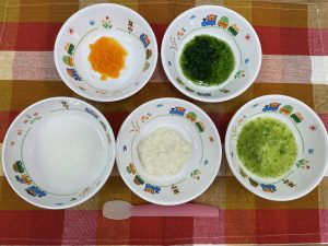 粥 野菜スープ 豆腐のくず煮 人参のだし煮 ブロッコリーのだし煮